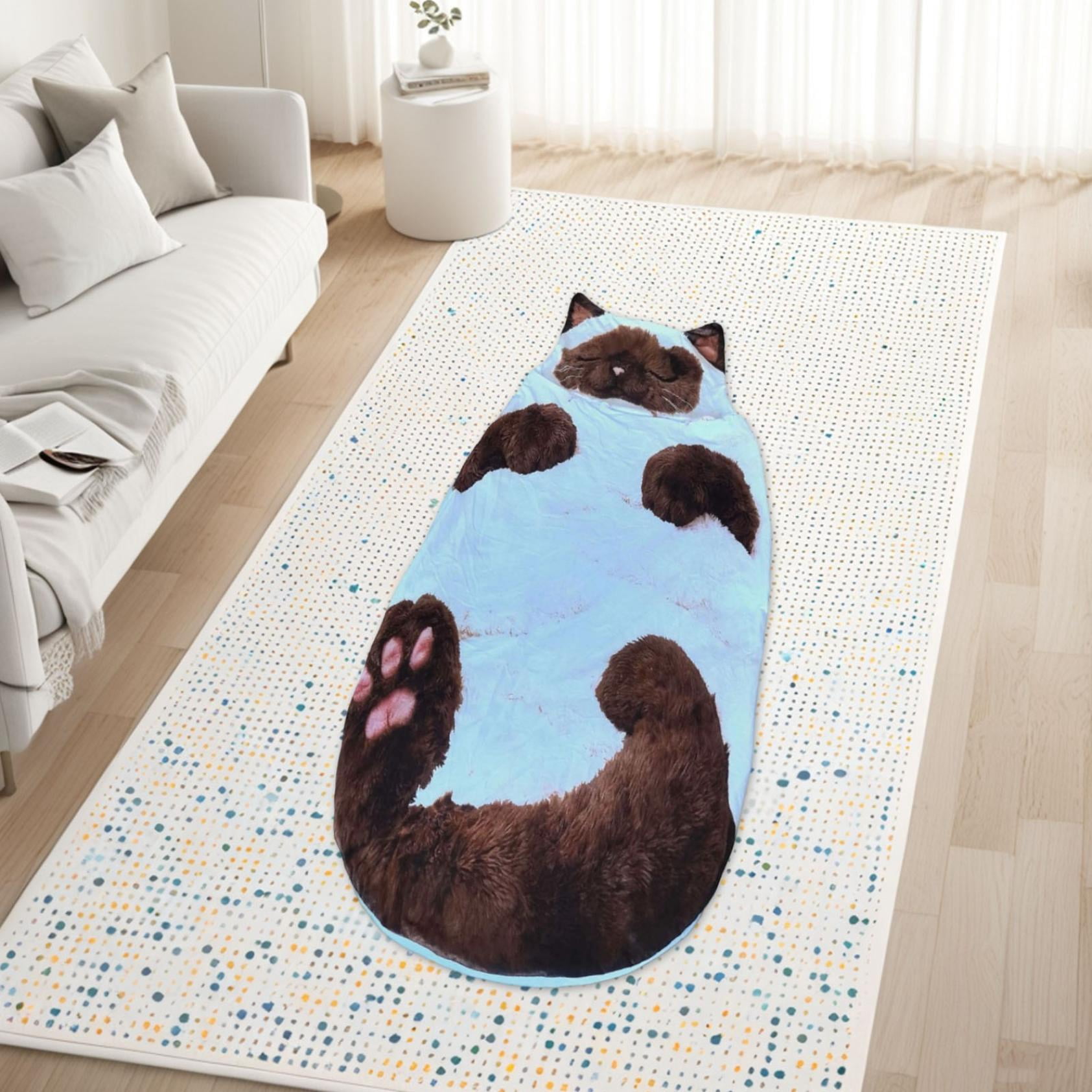 68.9Inch Cat Themed Adult Sleeping Bag, Cute Plush Envelope Sleeping Sack – Cozy for Indoor Use, Camping, Gifts for Cat Lovers & Movie Nights