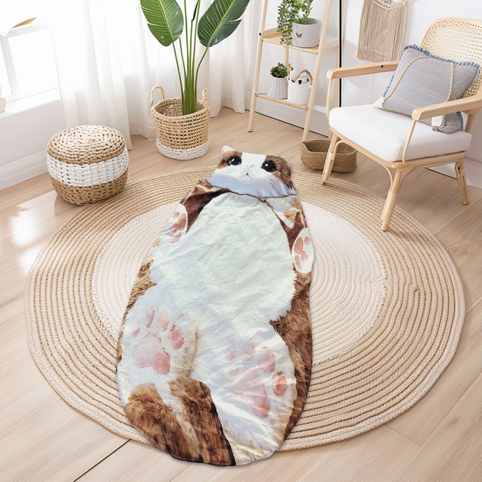 Adorable Cats Envelopes Sleeping Bag, Adult Plush Cat Sleeping Bag, Plush Cat Shaped Couch Comfy Accent Floor Sofa, for Gaming, Reading in Living Room, Bedroom(D)
