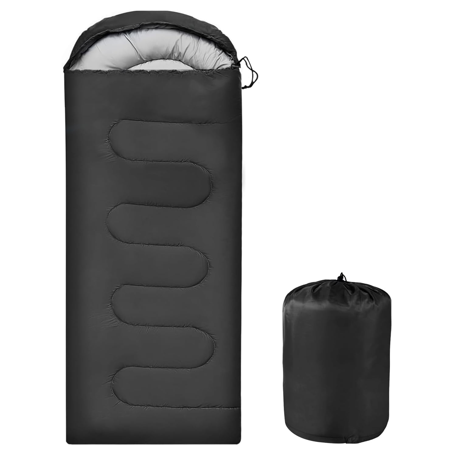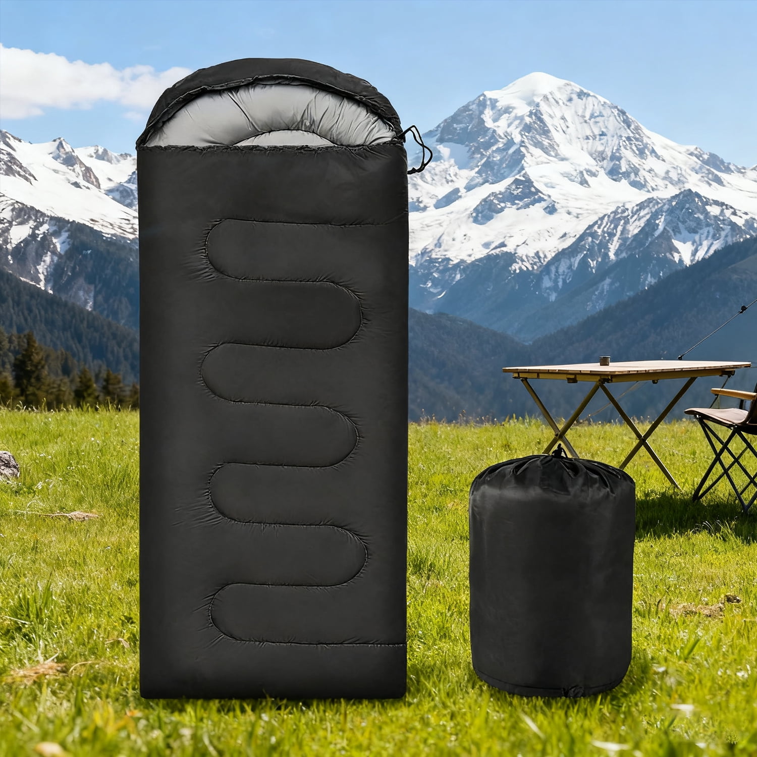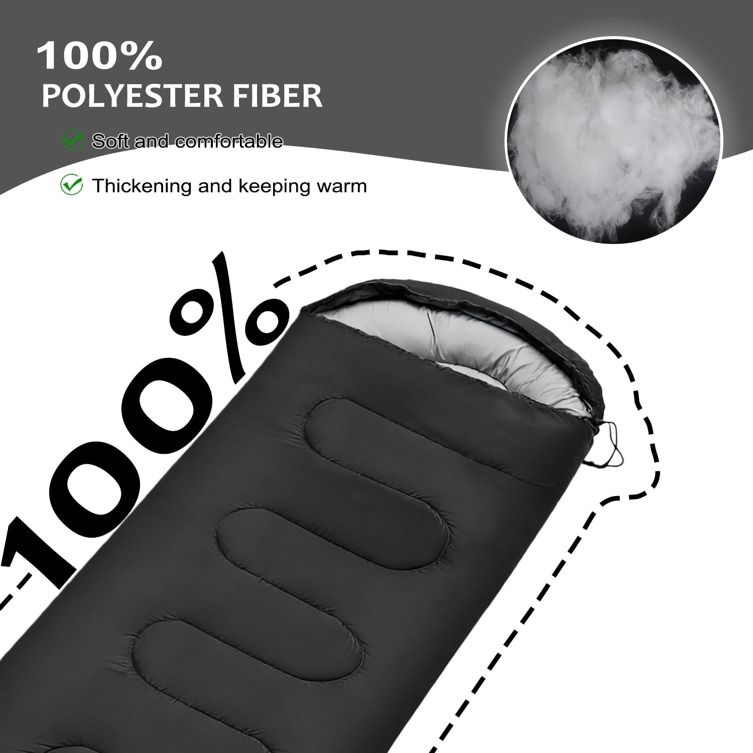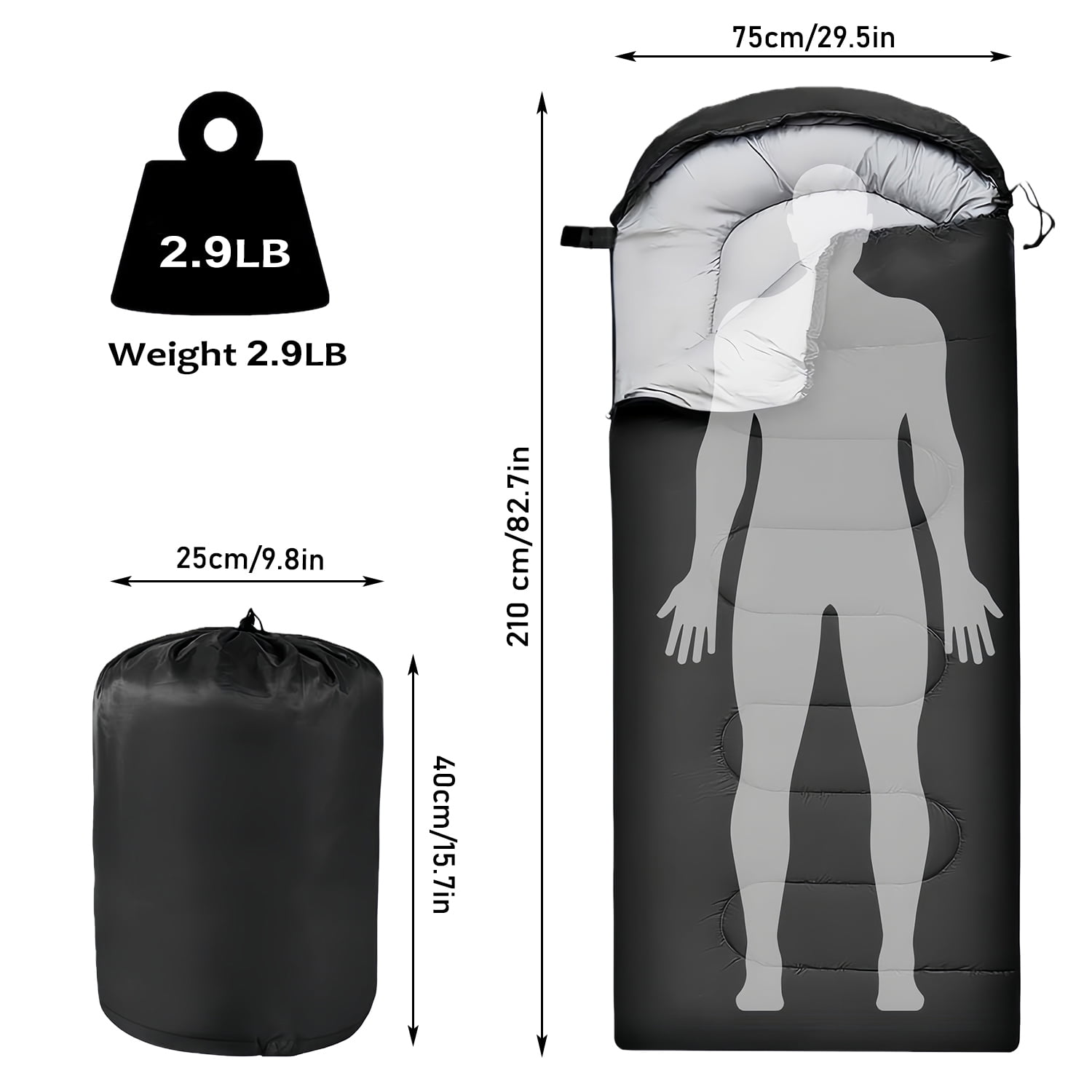 Adult padded sleeping bag 2 pounds, foldable, gift storage bag, waterproof, super warm, zipper/lace, suitable for camping/guest bed/overnight, black.