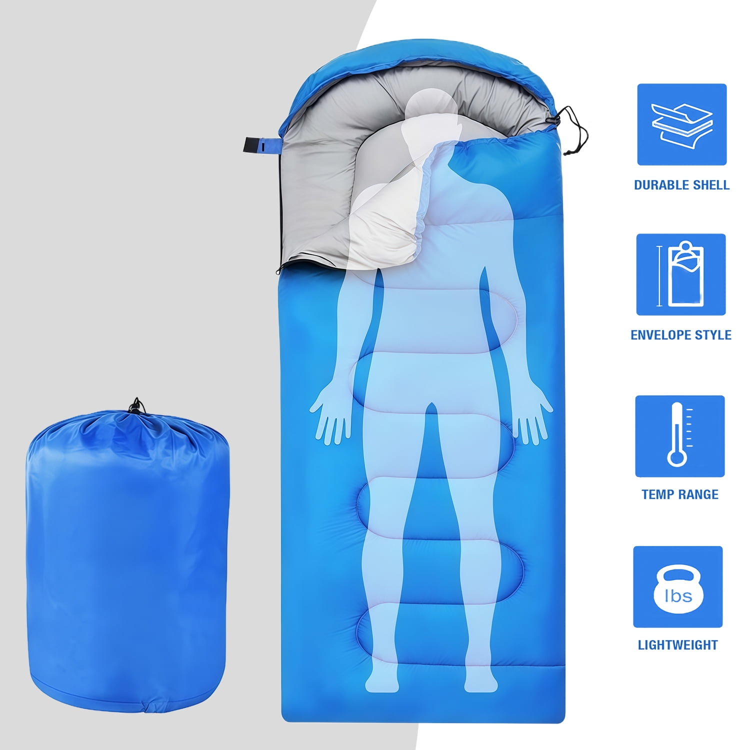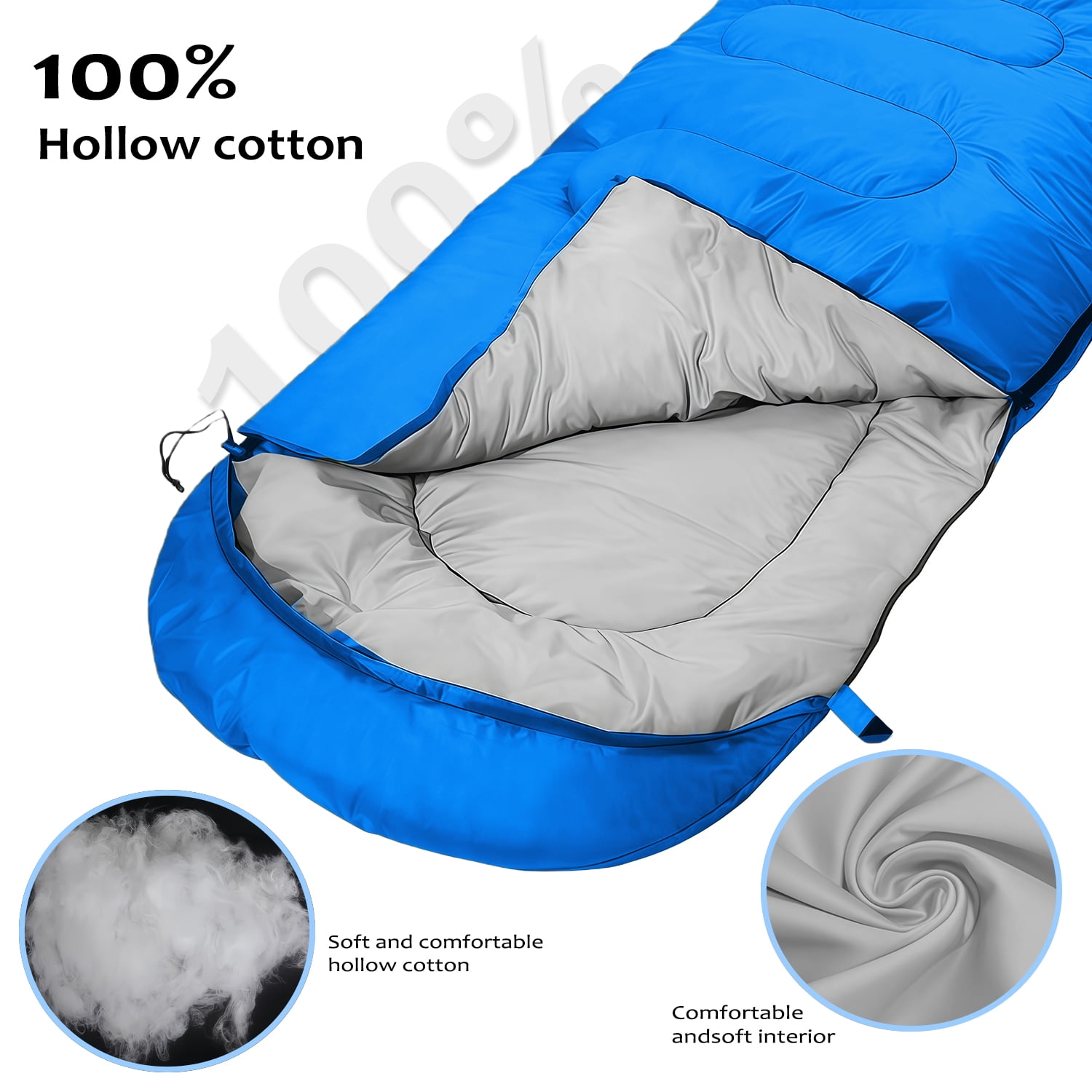 Adult padded sleeping bag 2 pounds, foldable, gift storage bag, waterproof, super warm, zipper/lace, suitable for camping/guest bed/overnight,blue