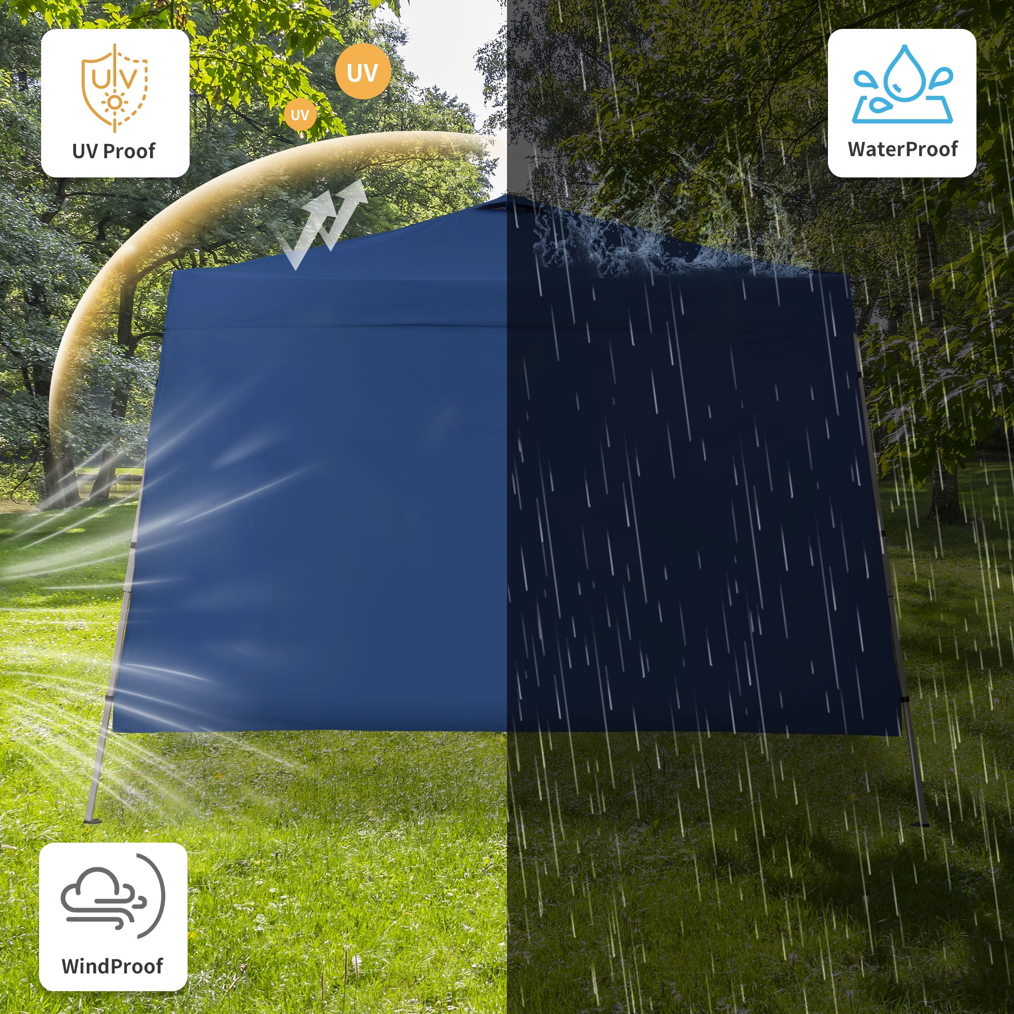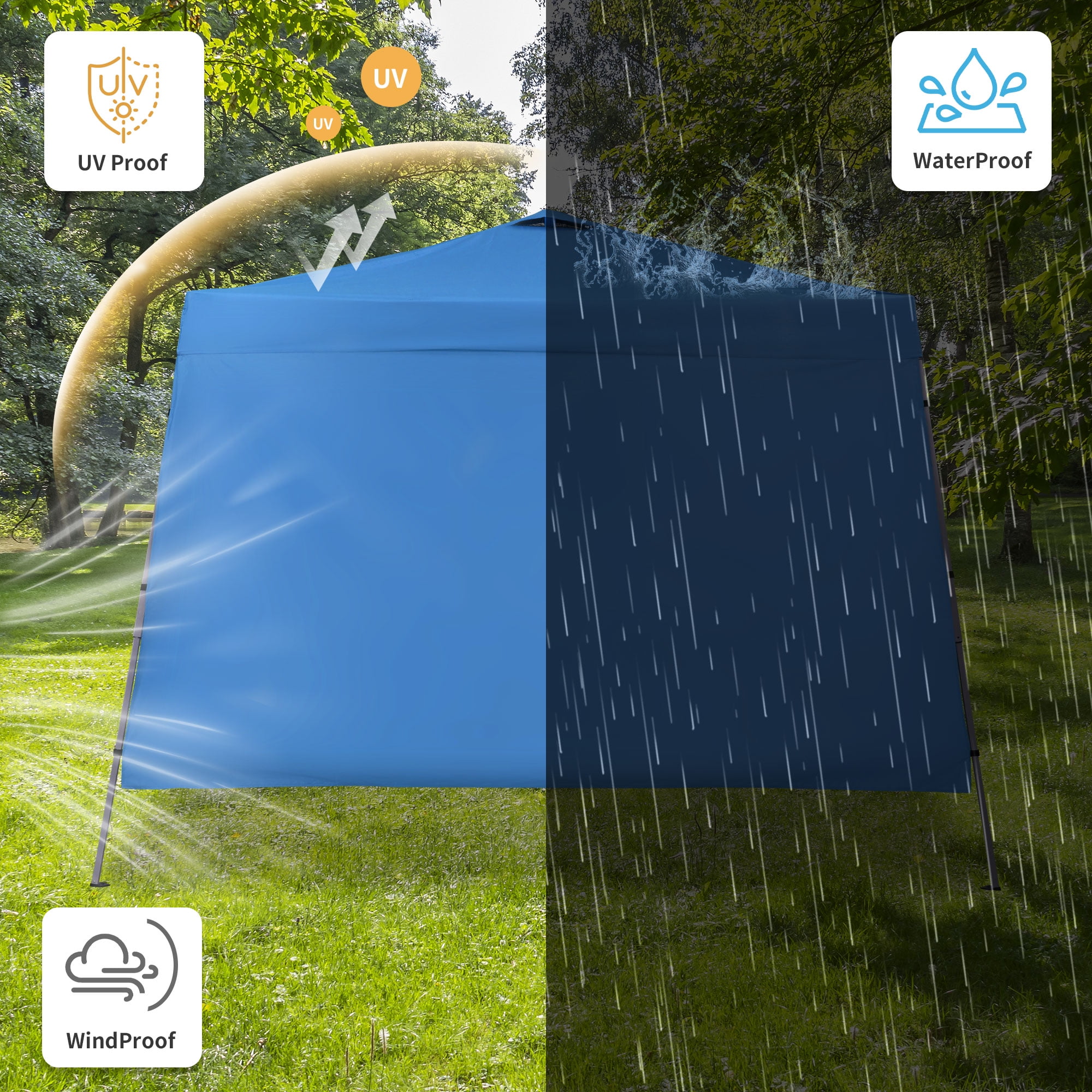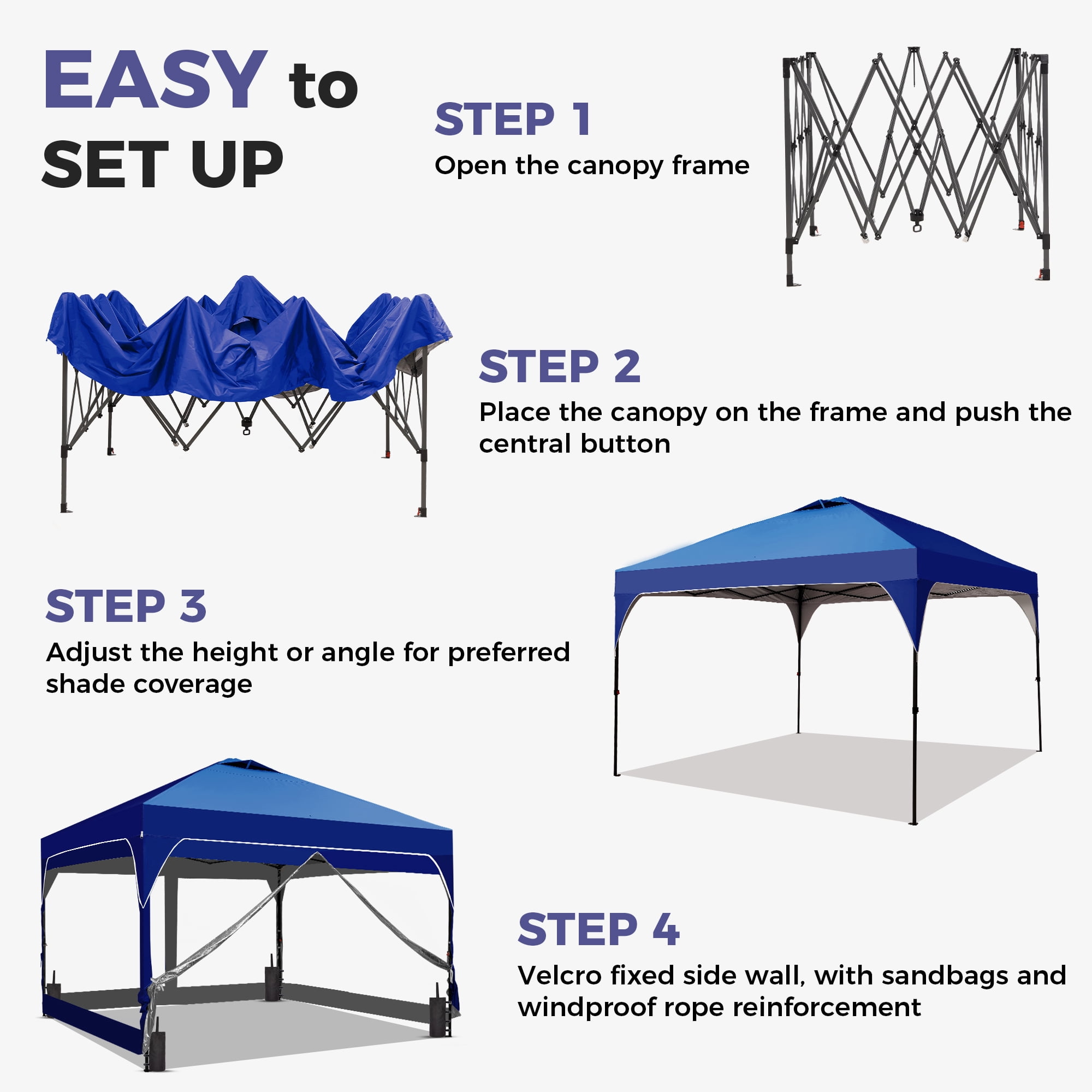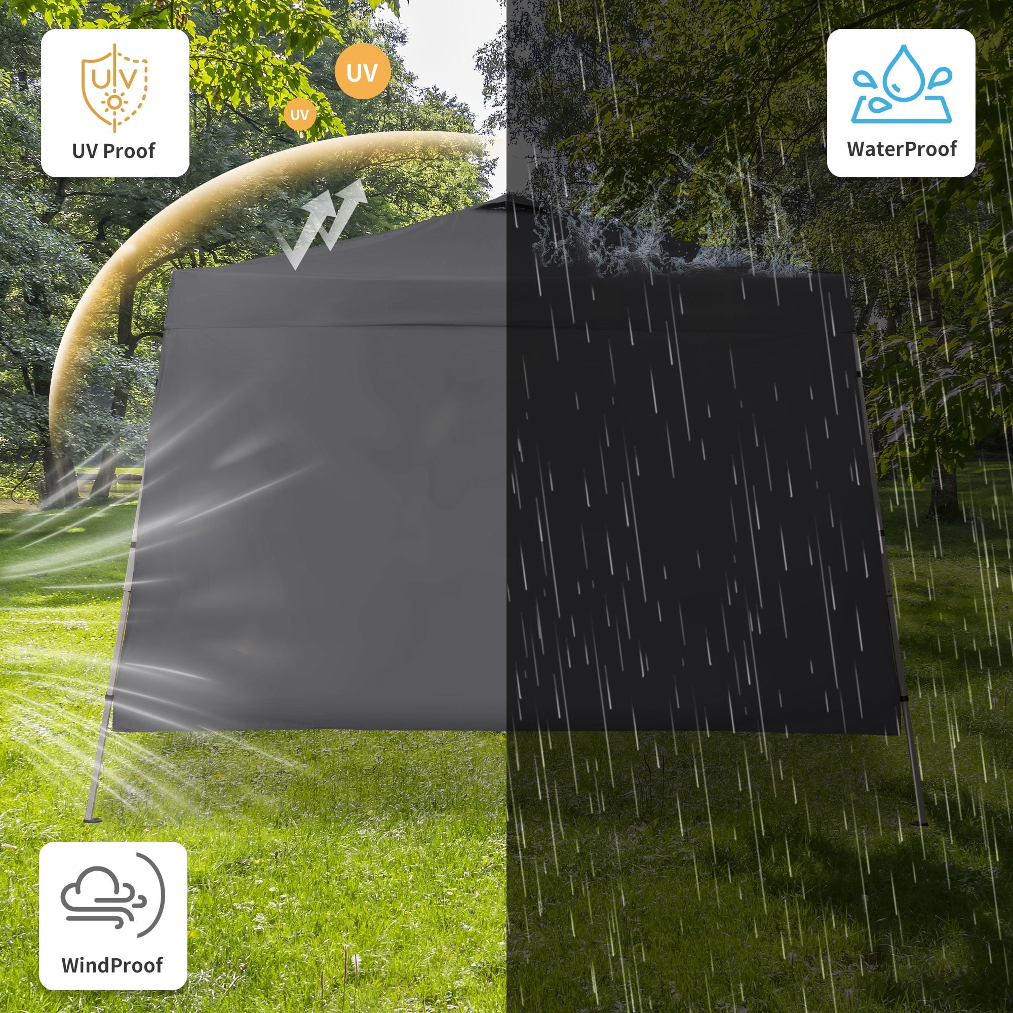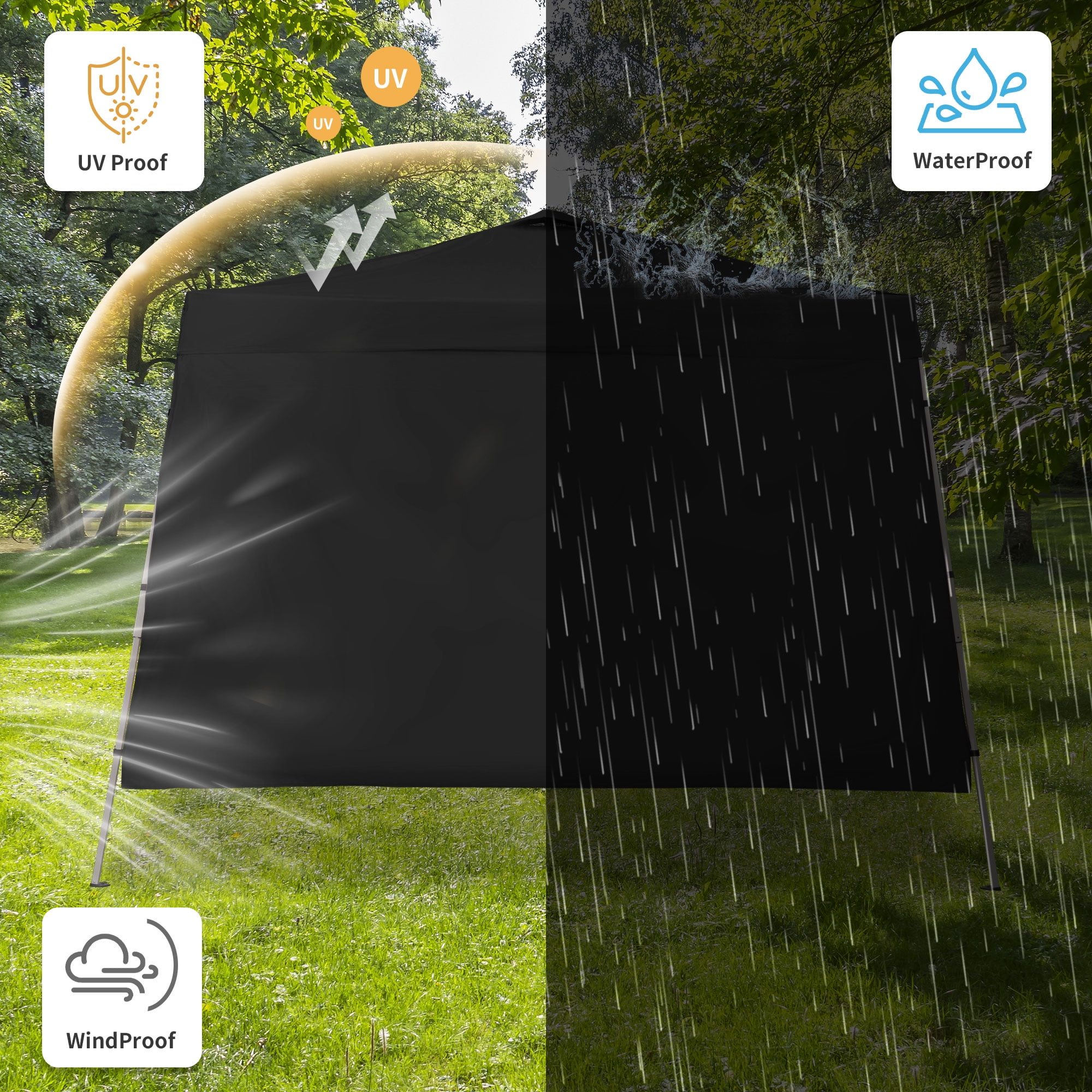 - Instant Setup: Canopy tent pops up quickly without tools, making it easy to set up and take down.