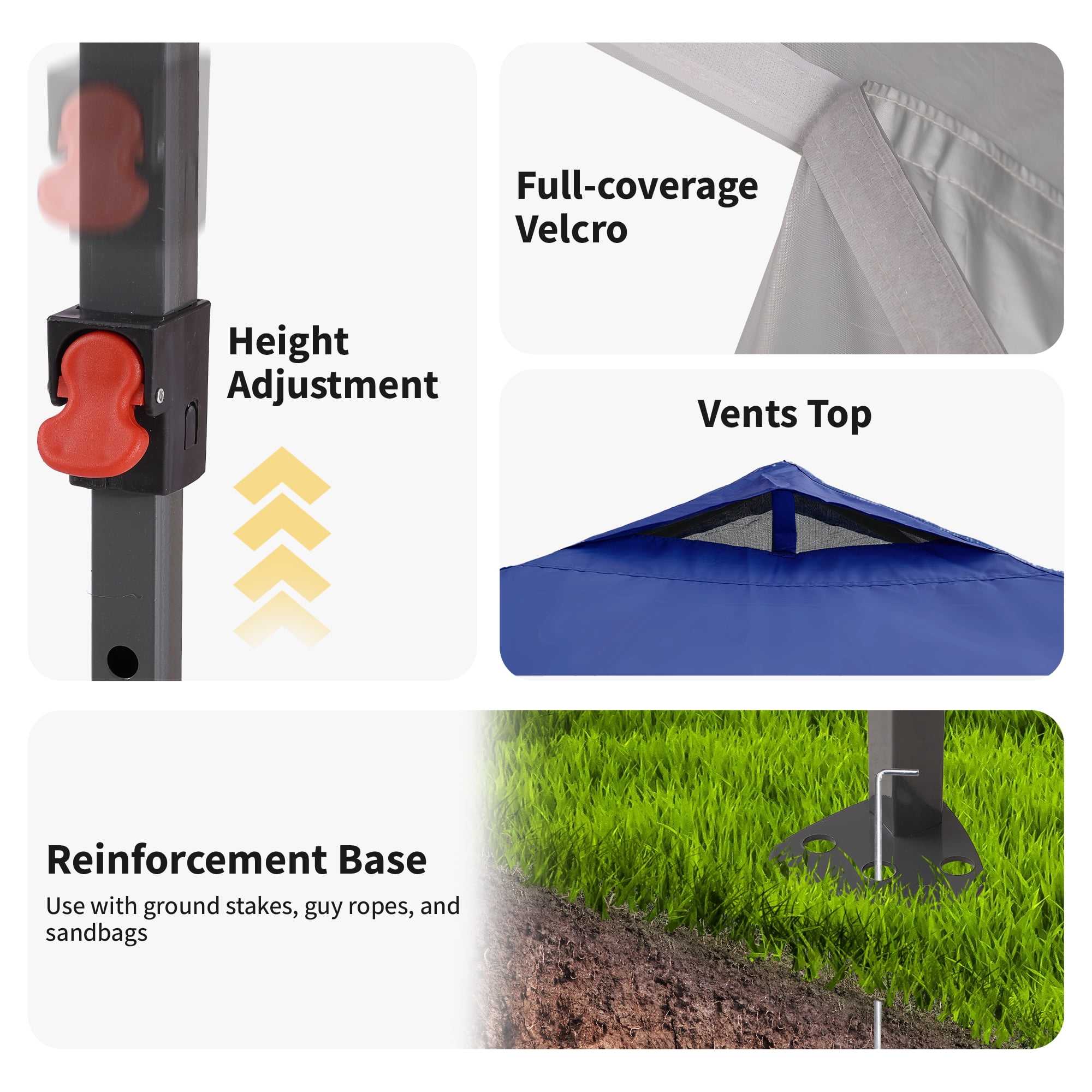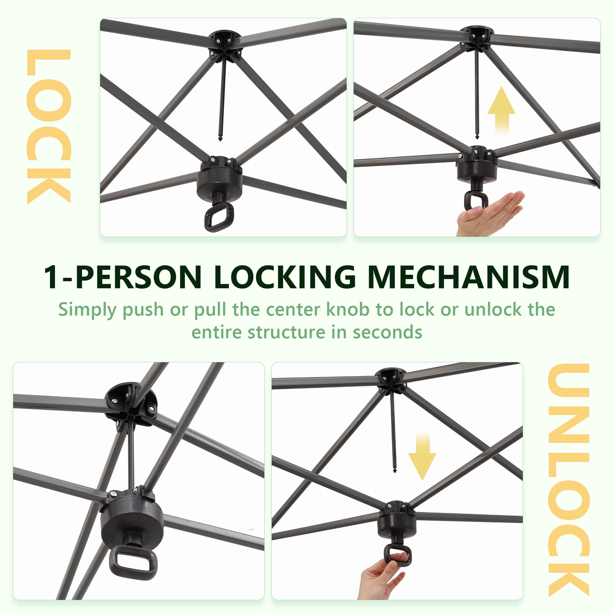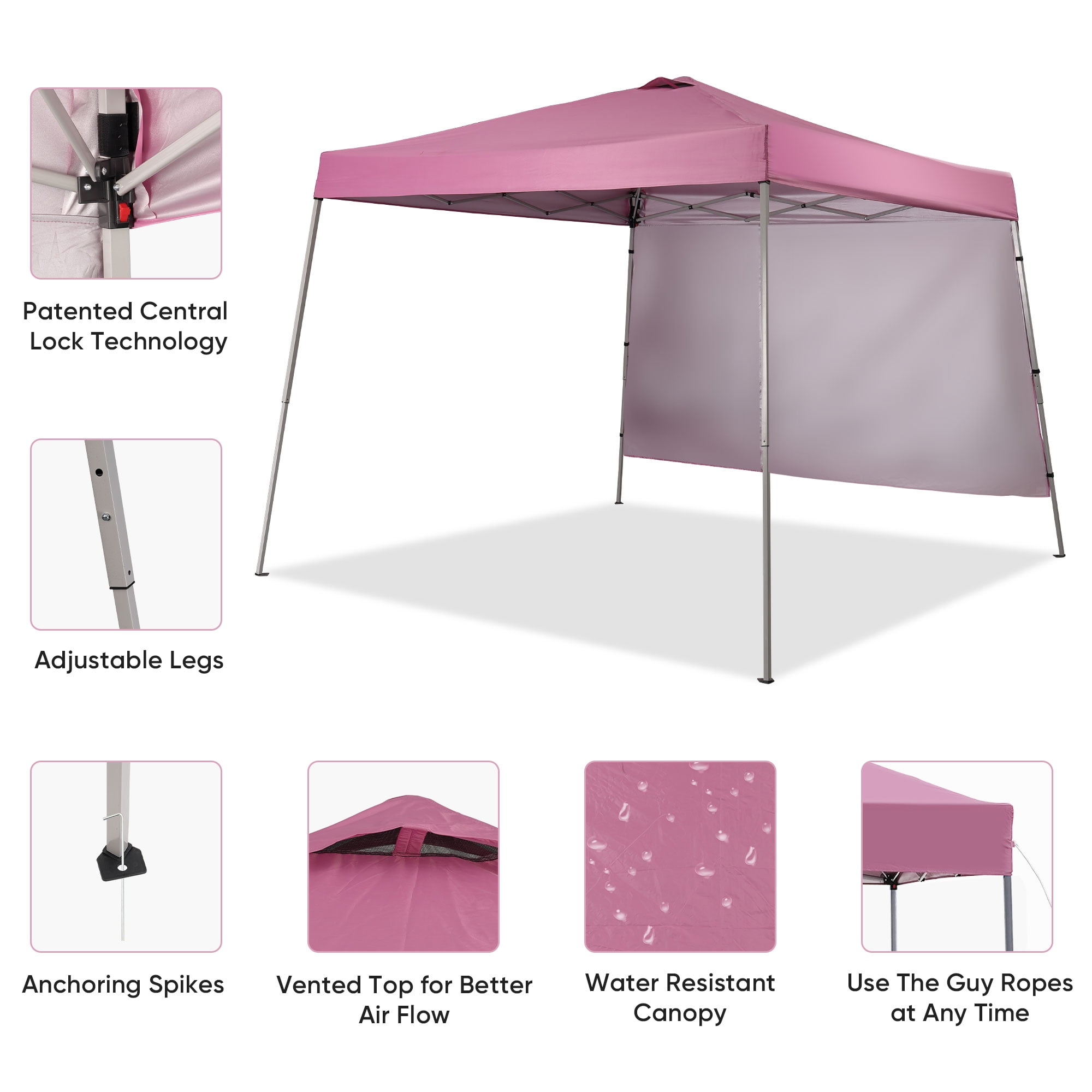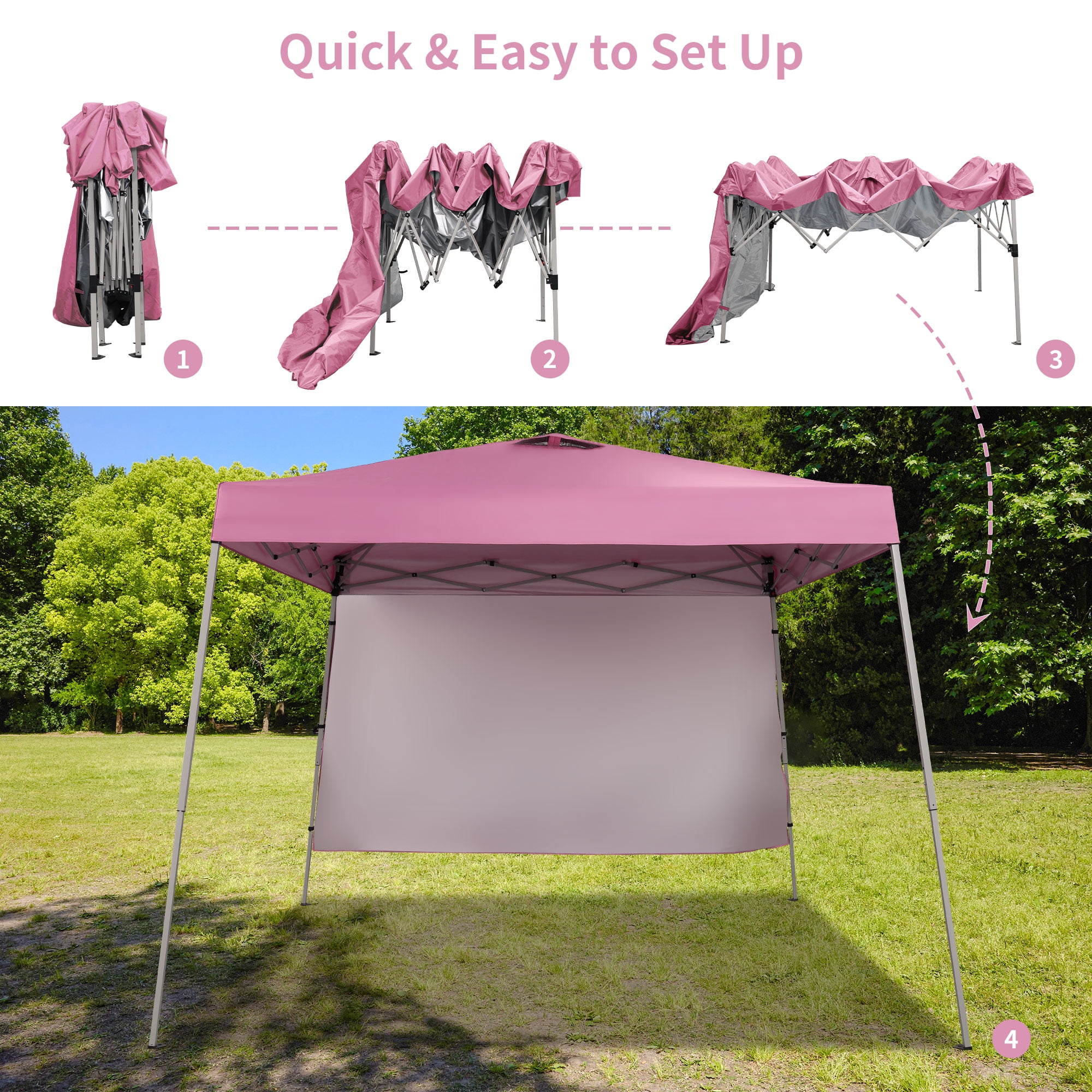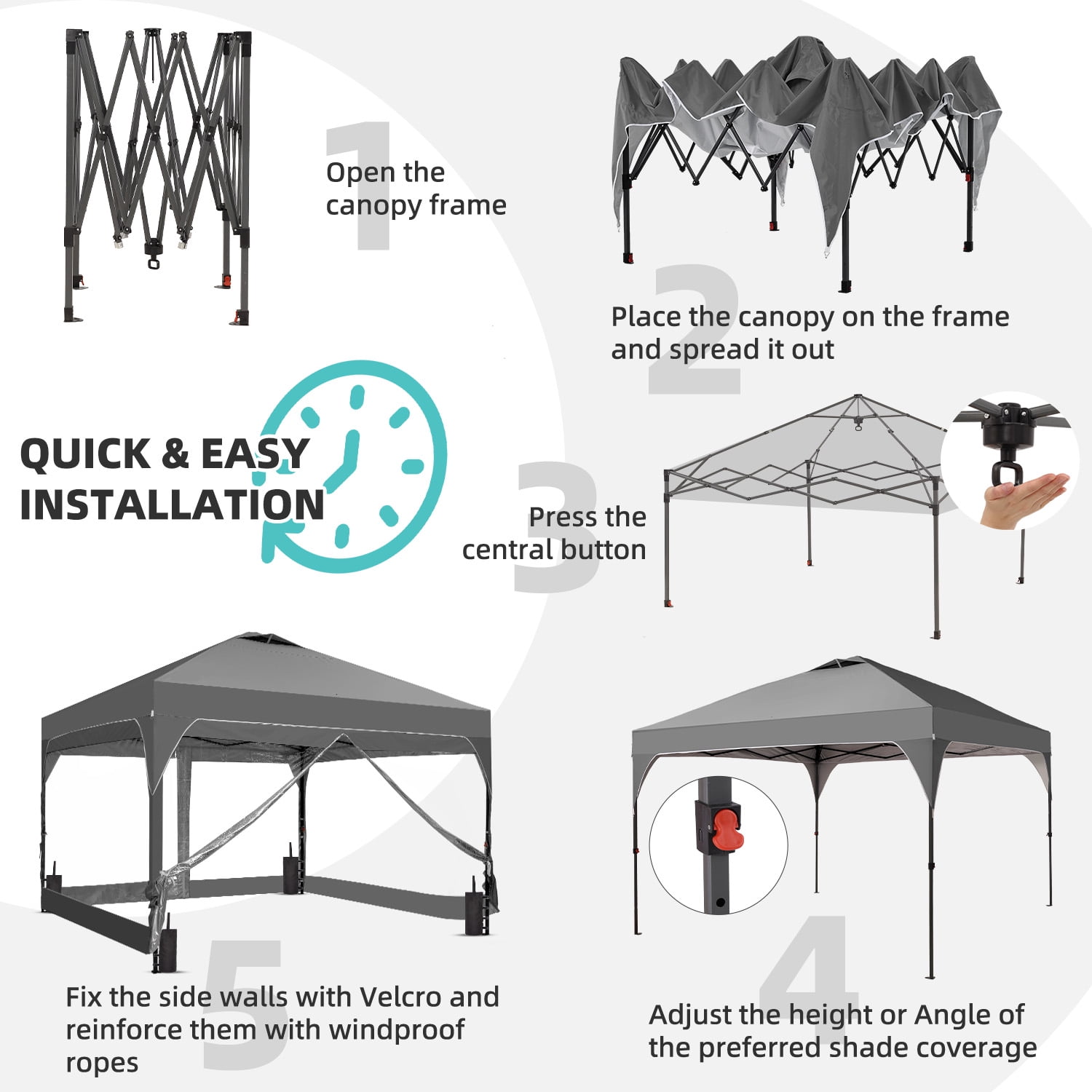 - Instant Setup: Canopy tent pops up quickly without tools, making it easy to set up and take down.
