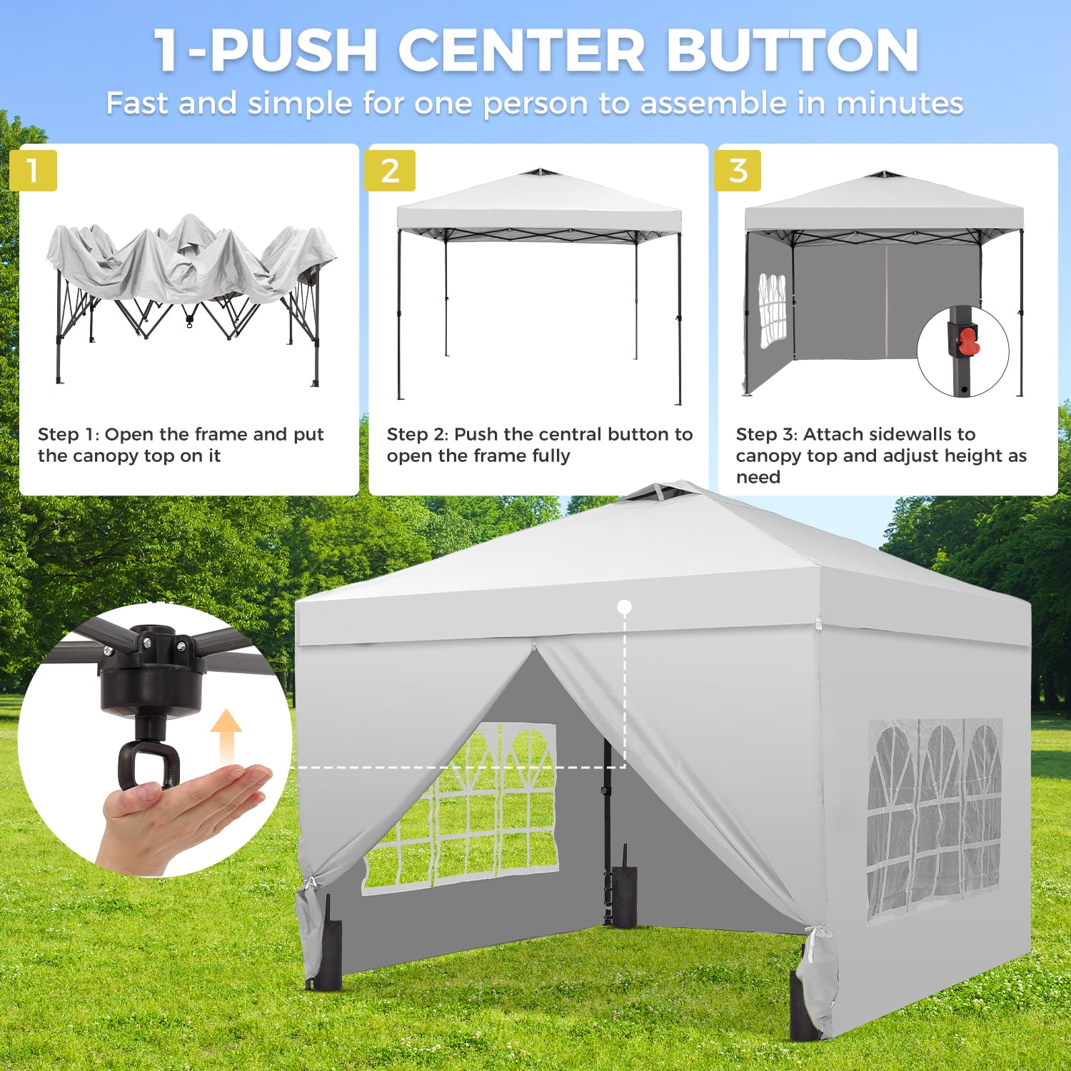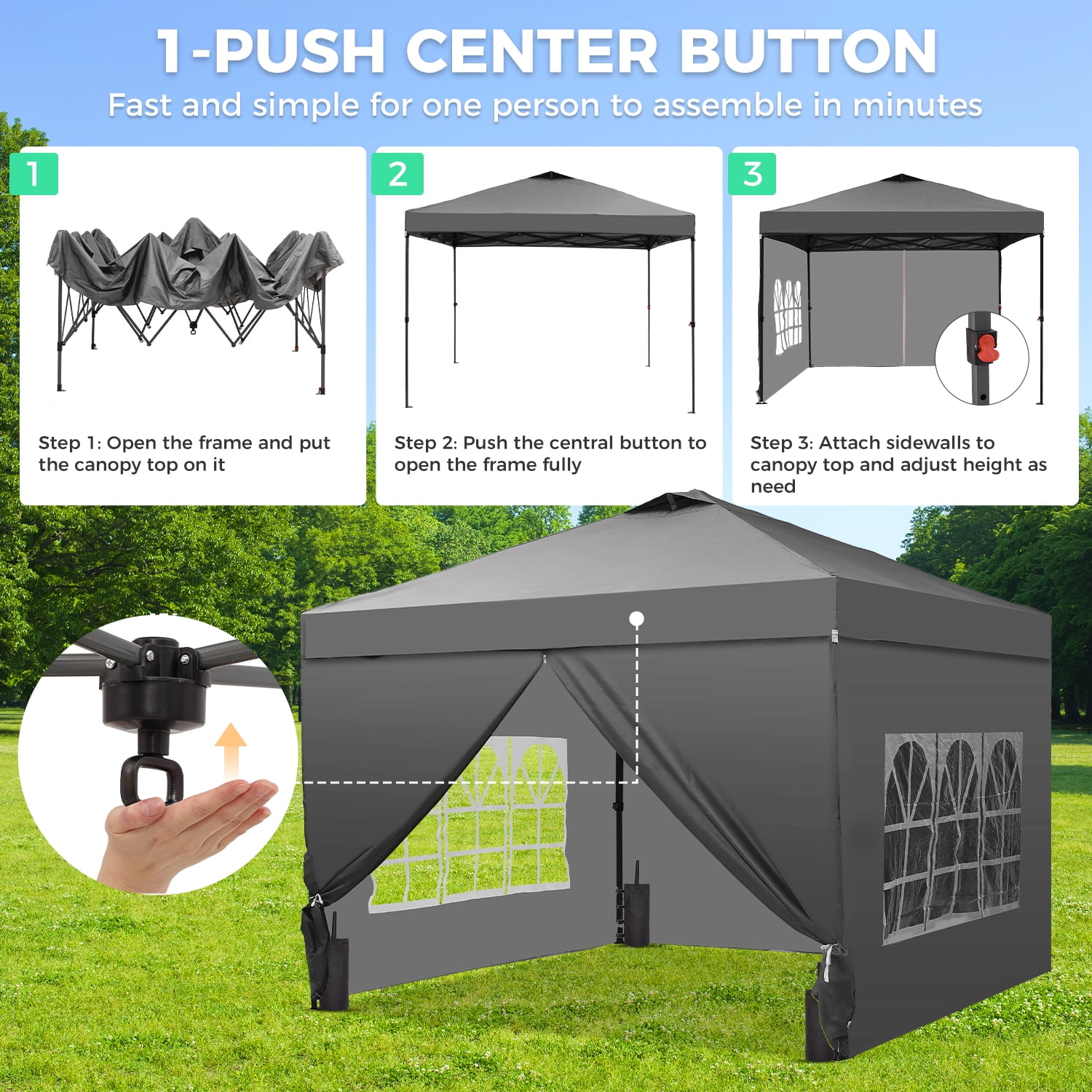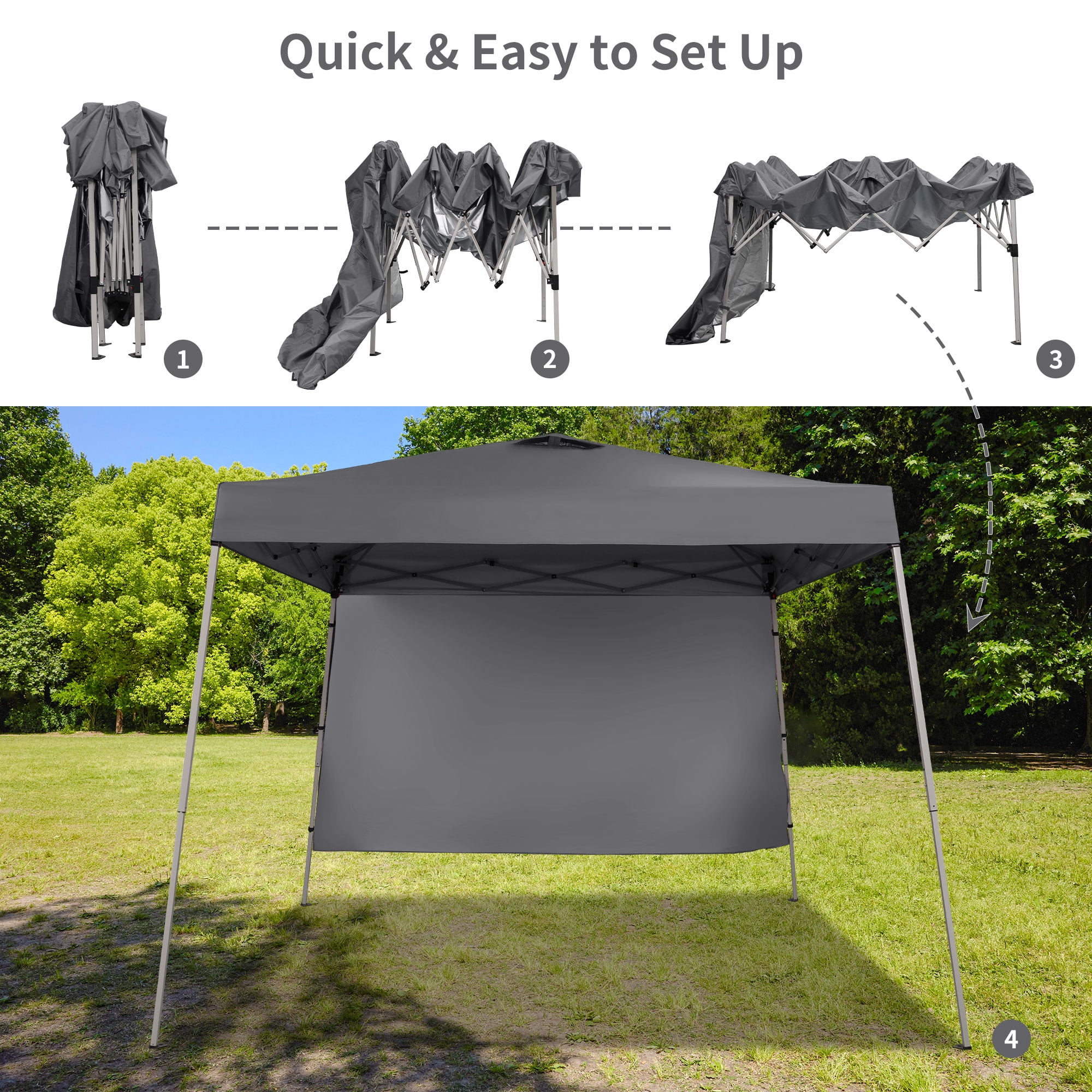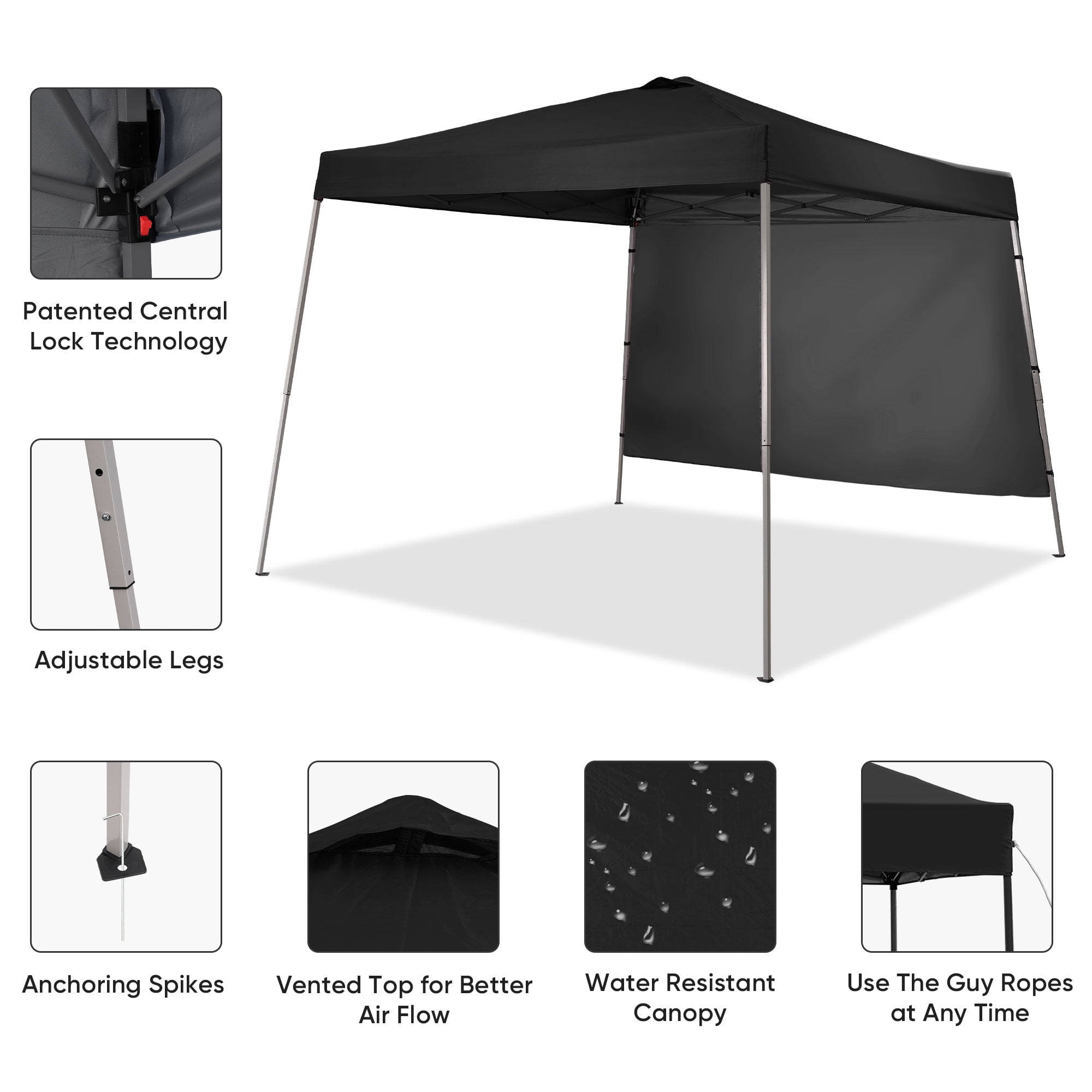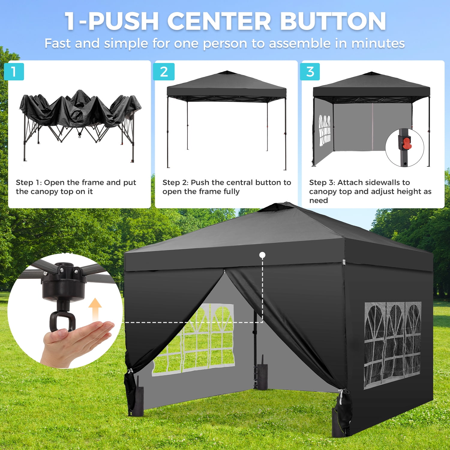 - Instant Setup: Canopy tent pops up quickly without tools, making it easy to set up and take down.