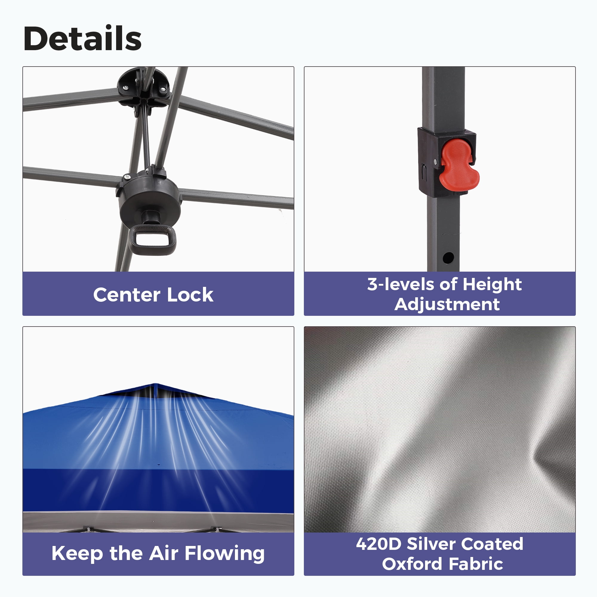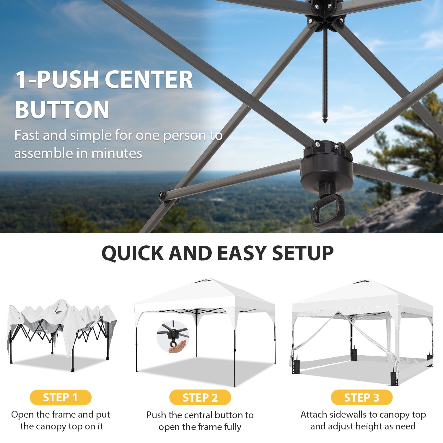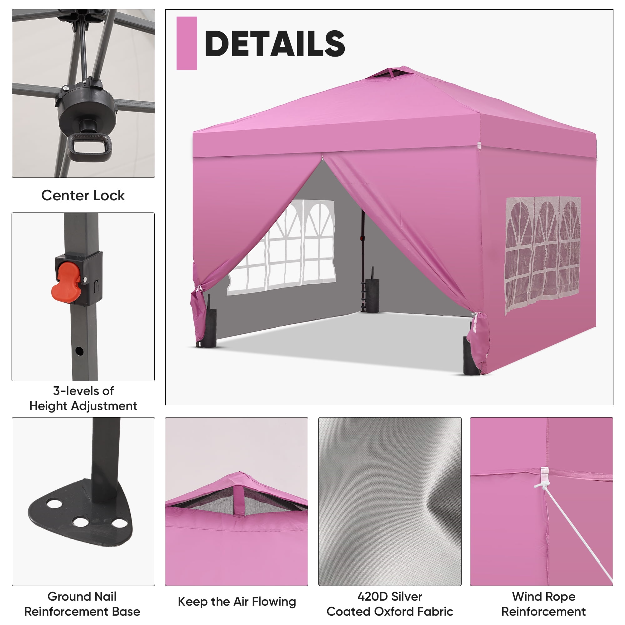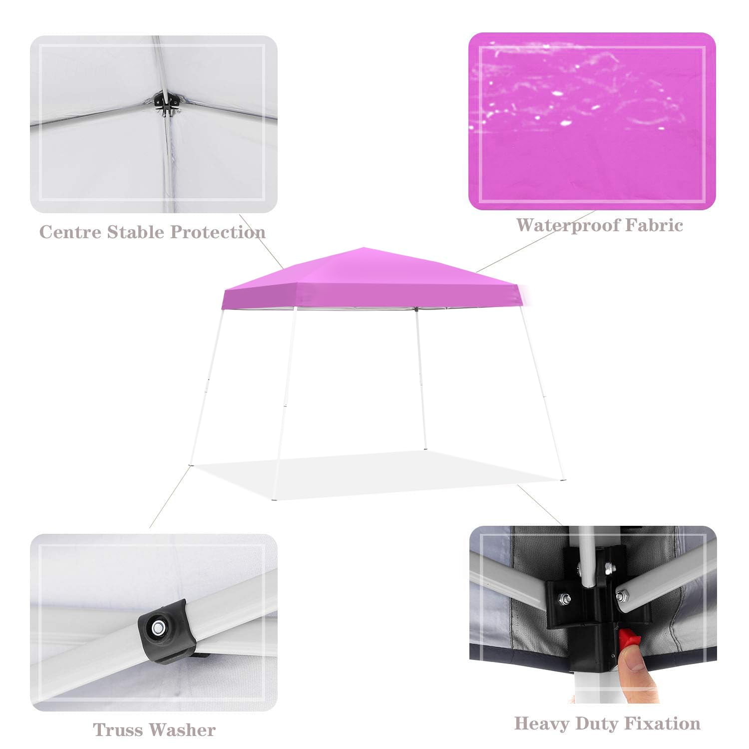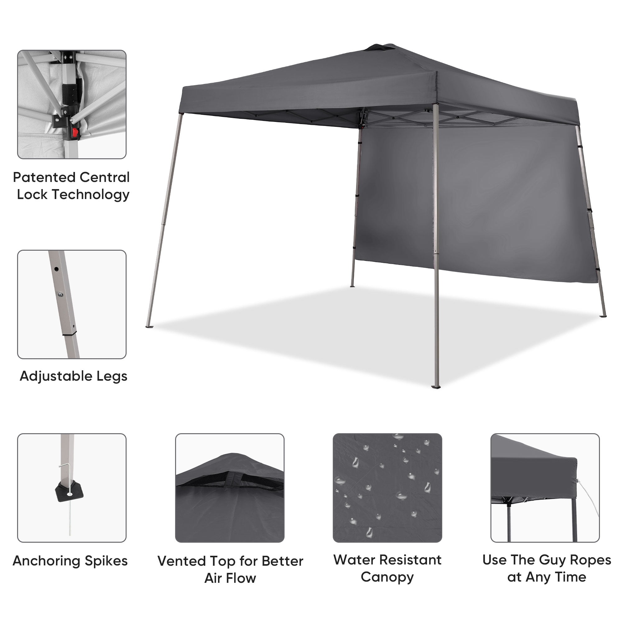 - Instant Setup: Canopy tent pops up quickly without tools, making it easy to set up and take down.