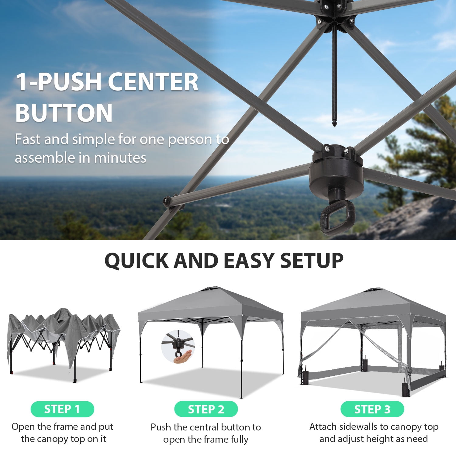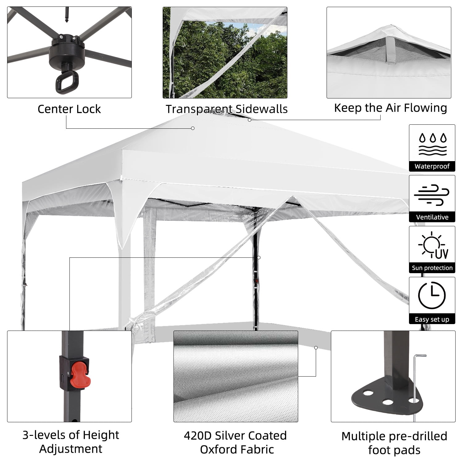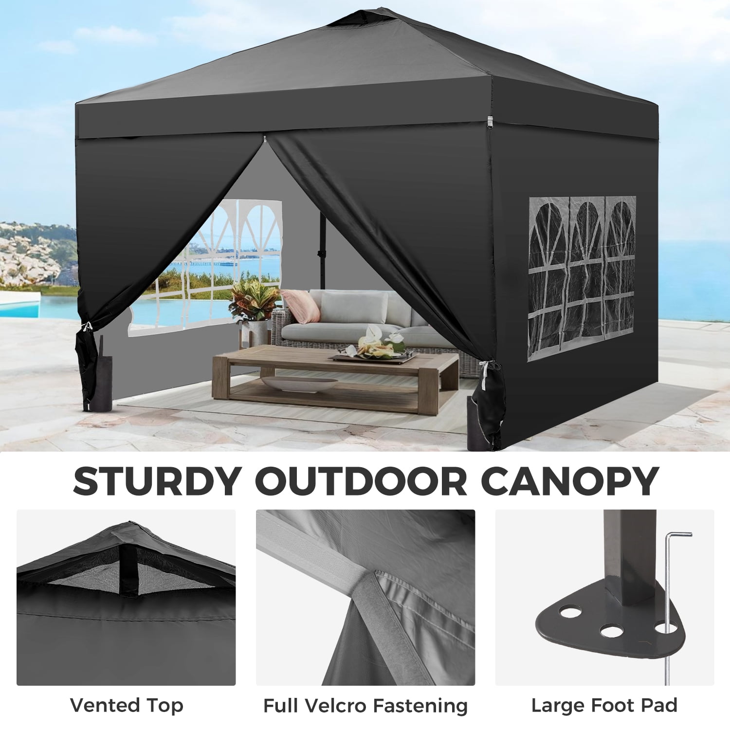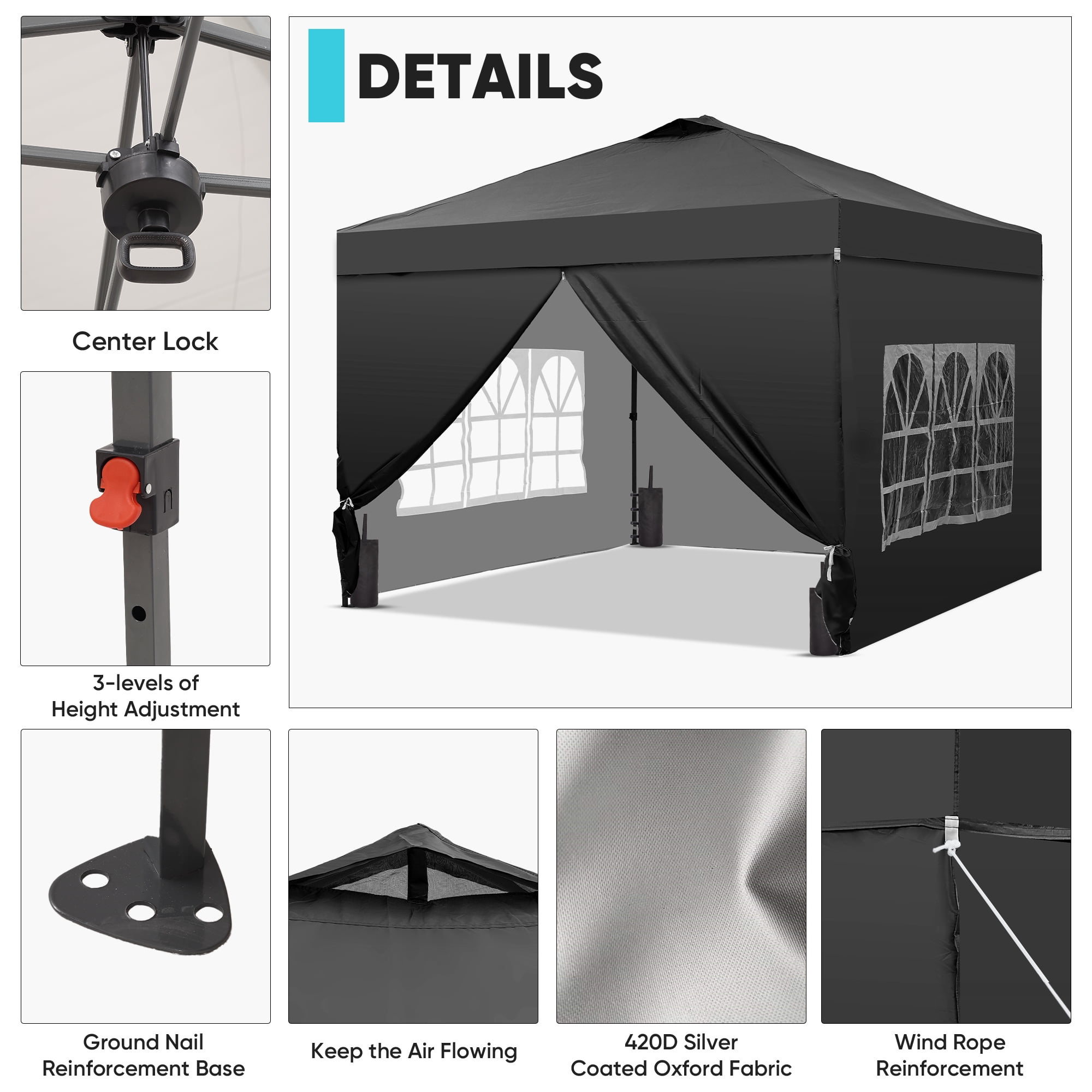 - Instant Setup: Canopy tent pops up quickly without tools, making it easy to set up and take down.