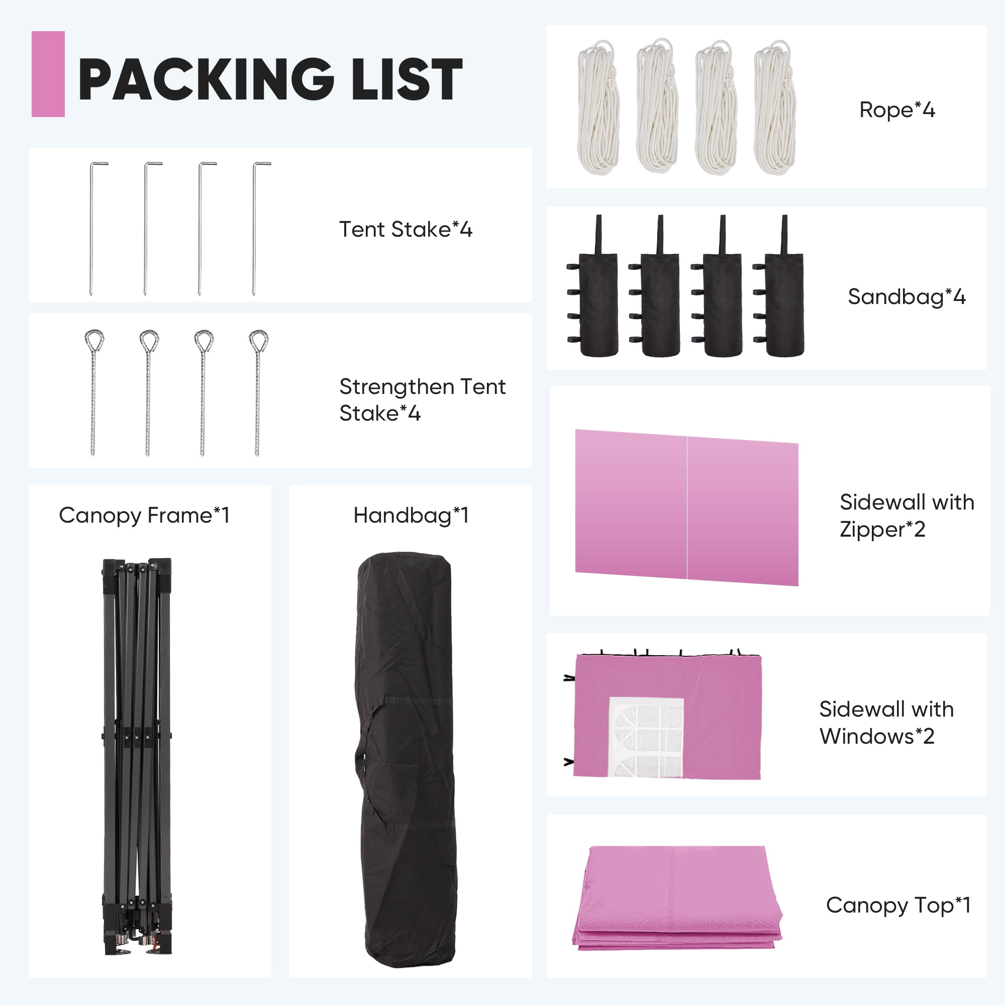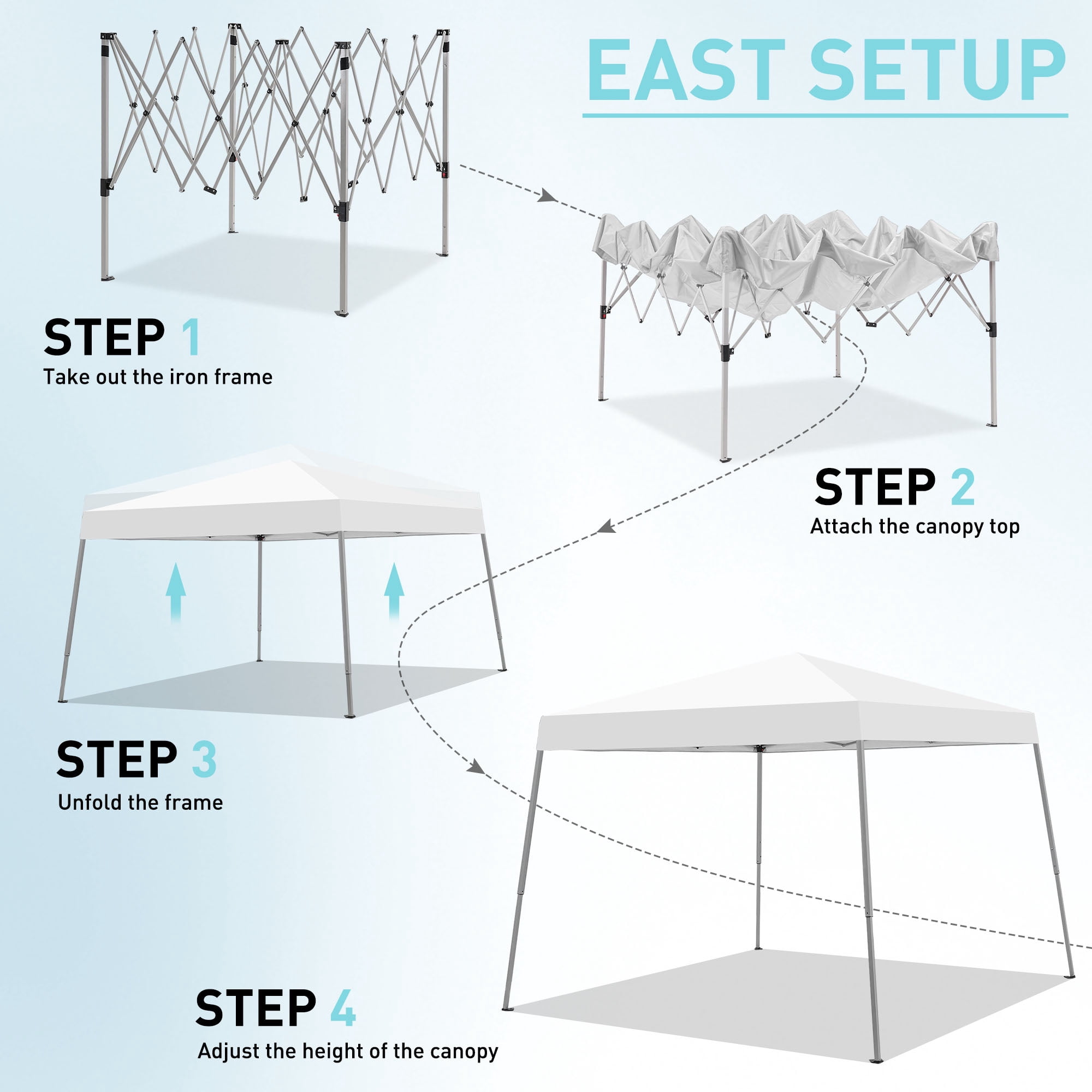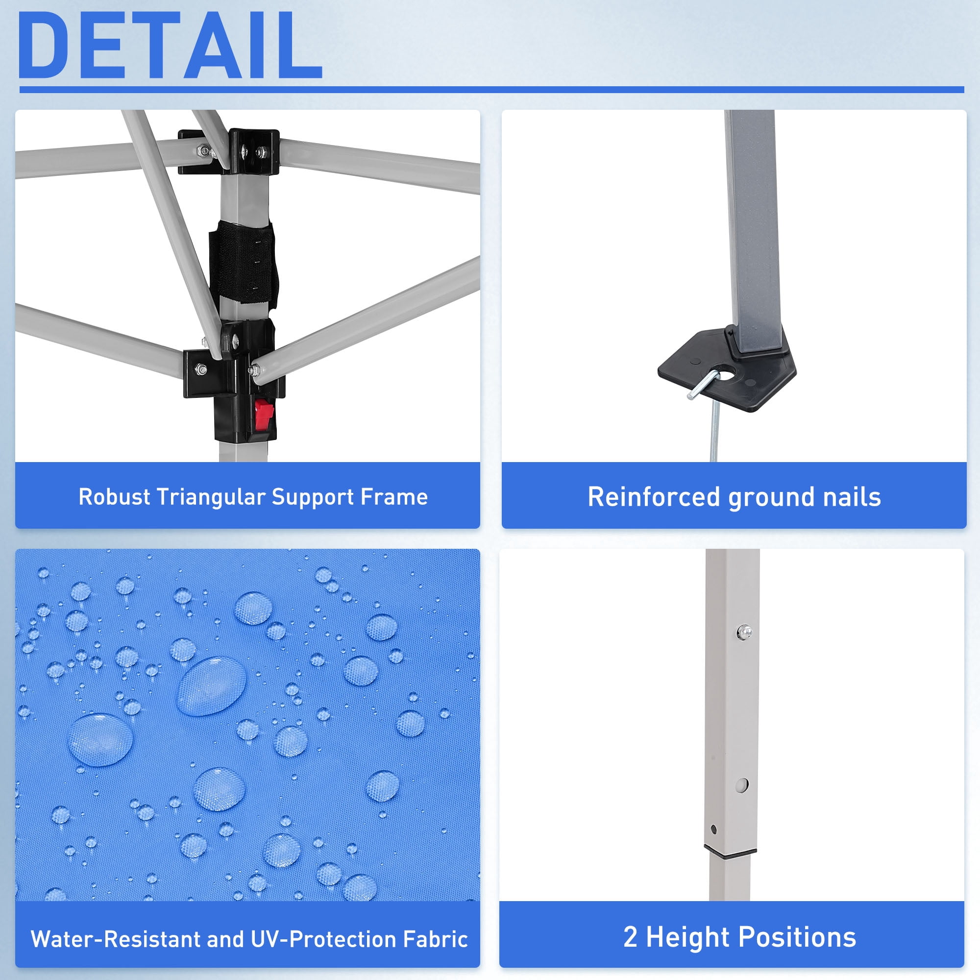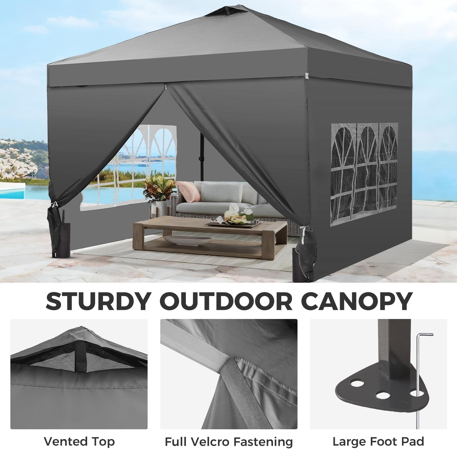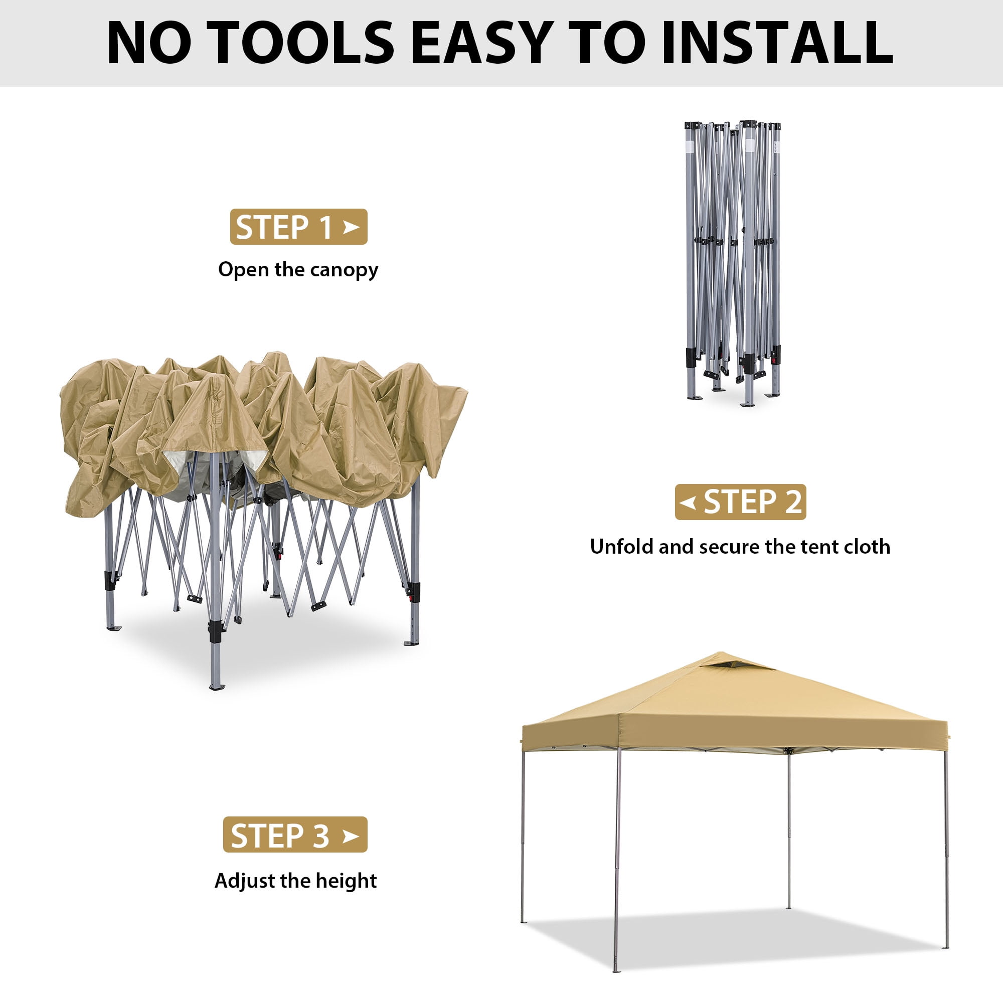 - Instant Setup: Canopy tent pops up quickly without tools, making it easy to set up and take down.