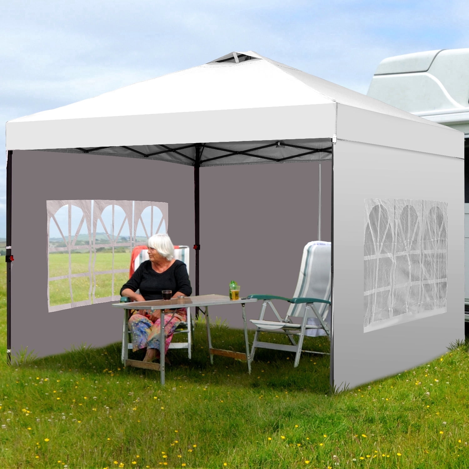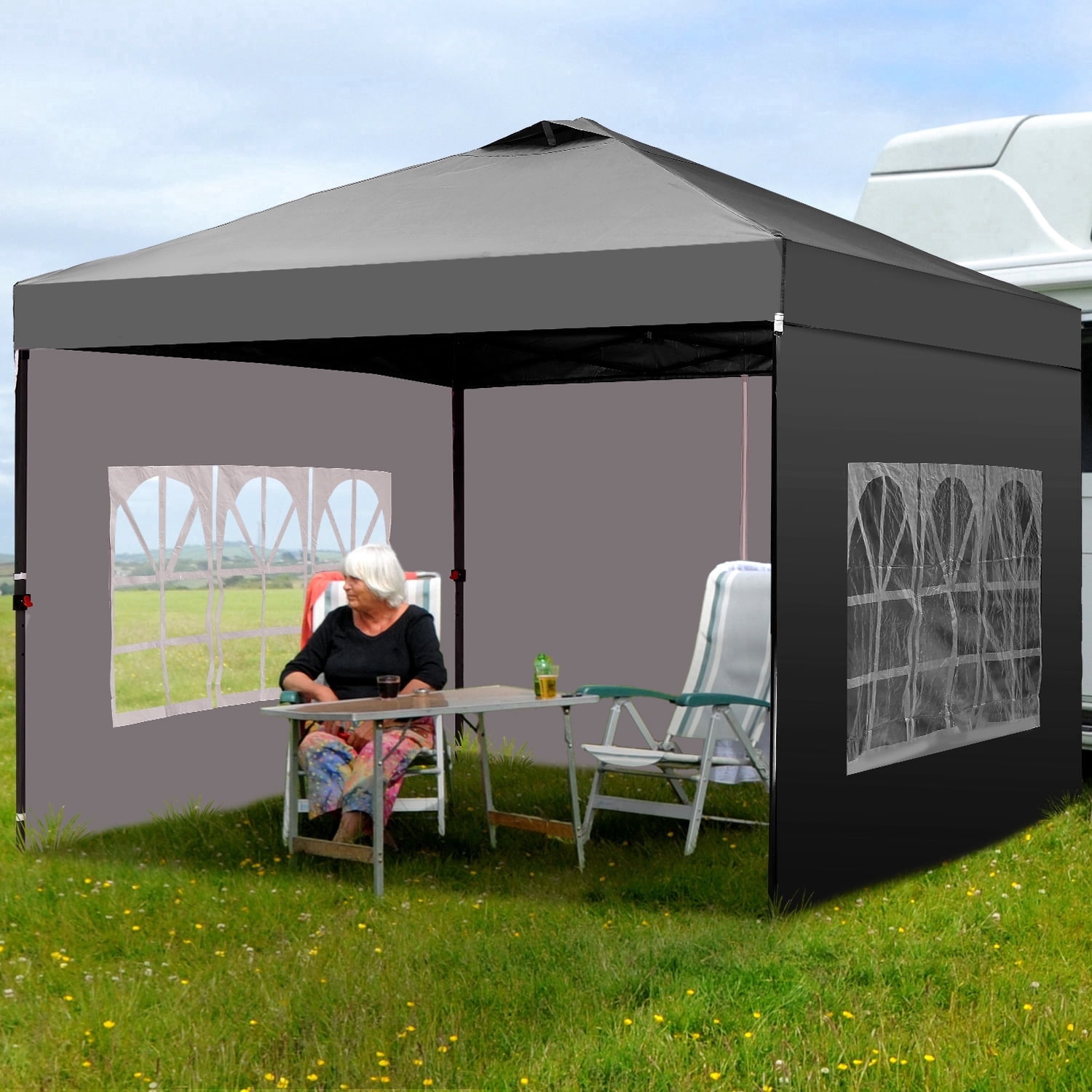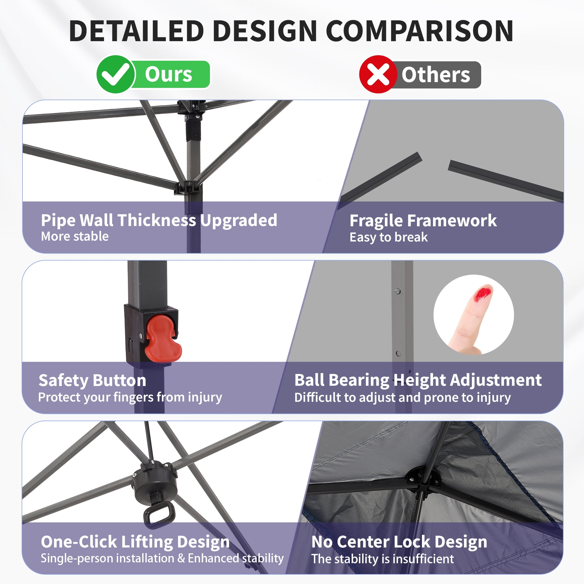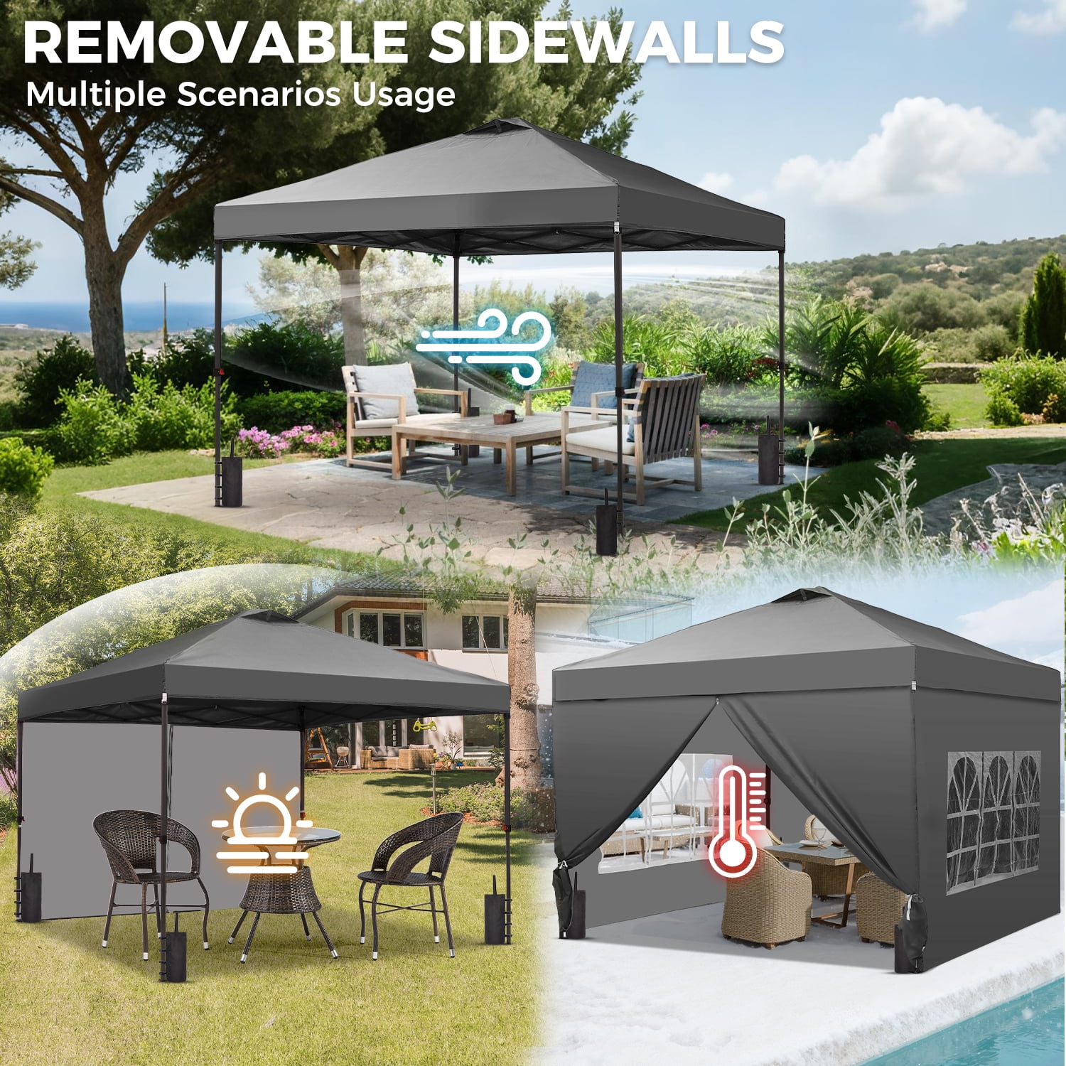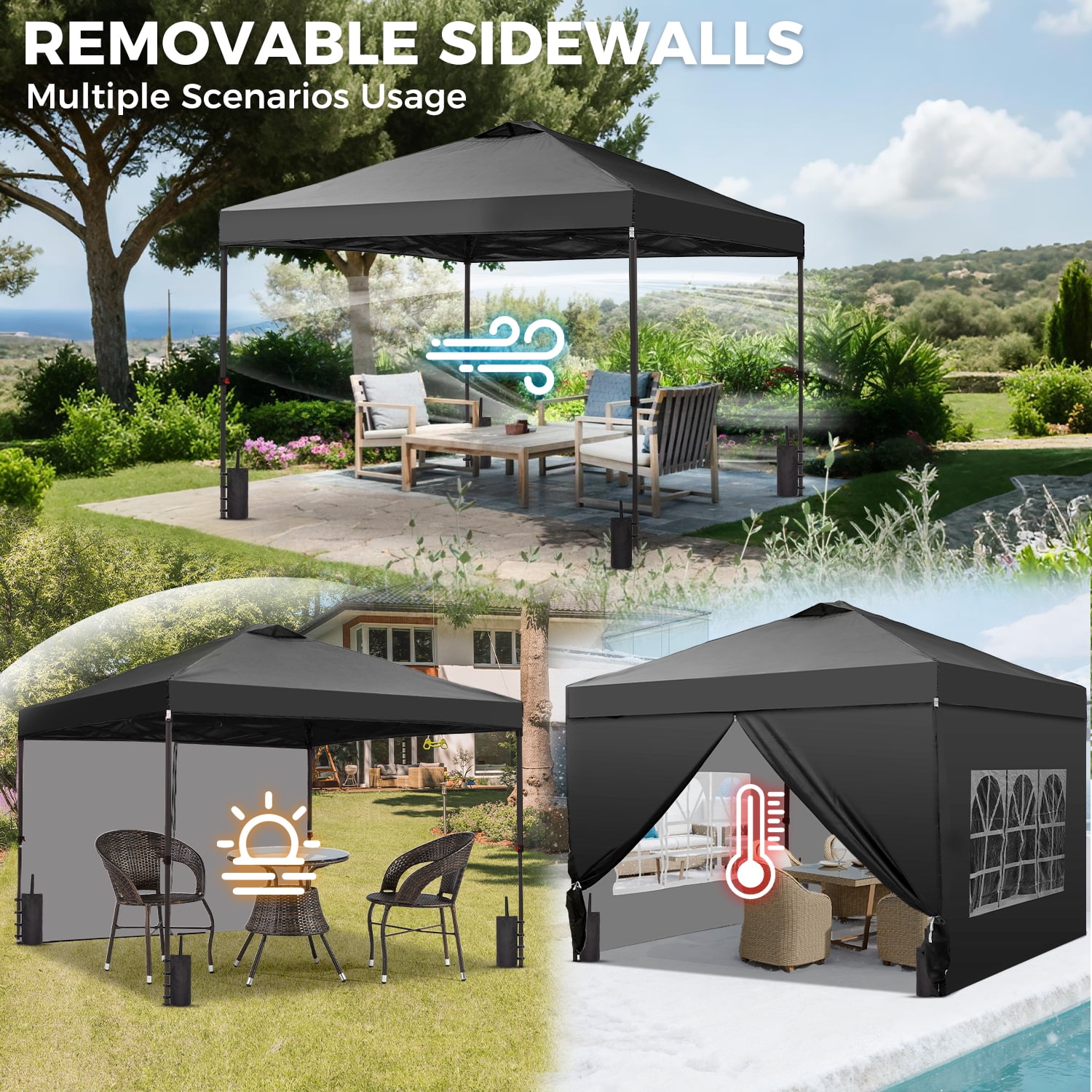 - Instant Setup: Canopy tent pops up quickly without tools, making it easy to set up and take down.