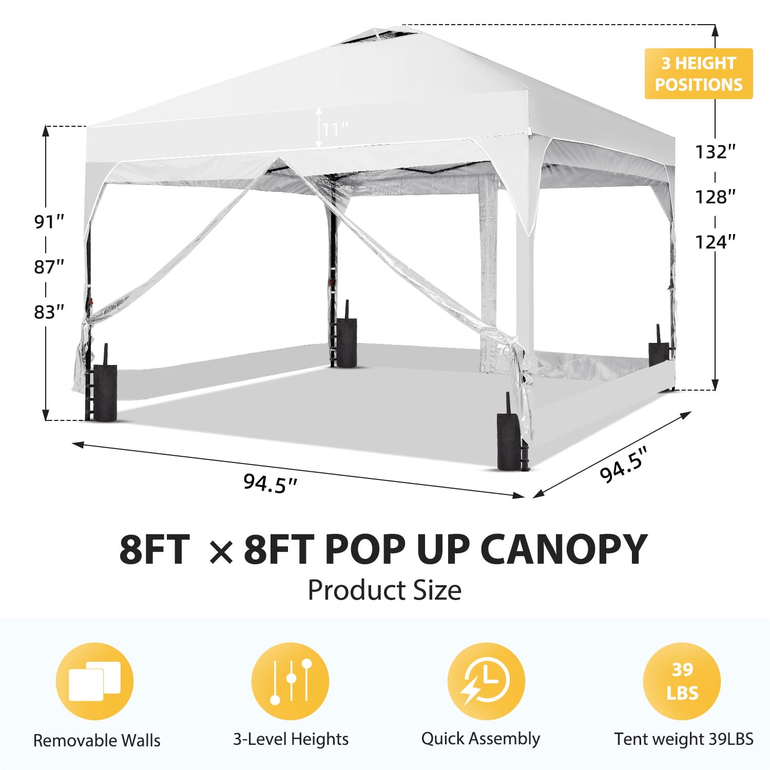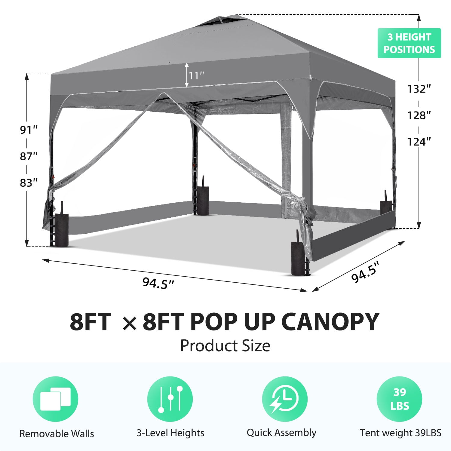 - Ample Shade: Provides 64 square feet of shade, accommodating up to 8 people comfortably.