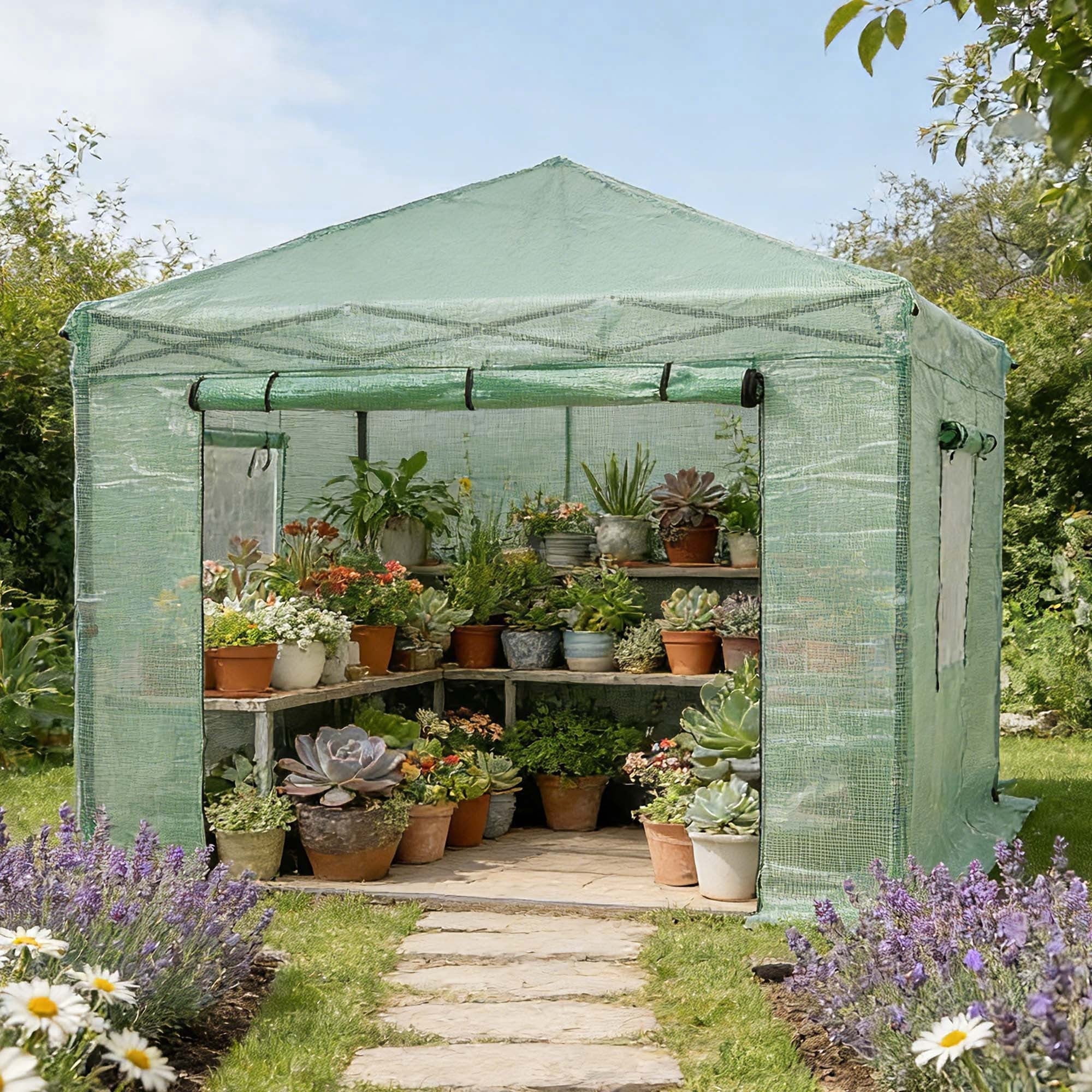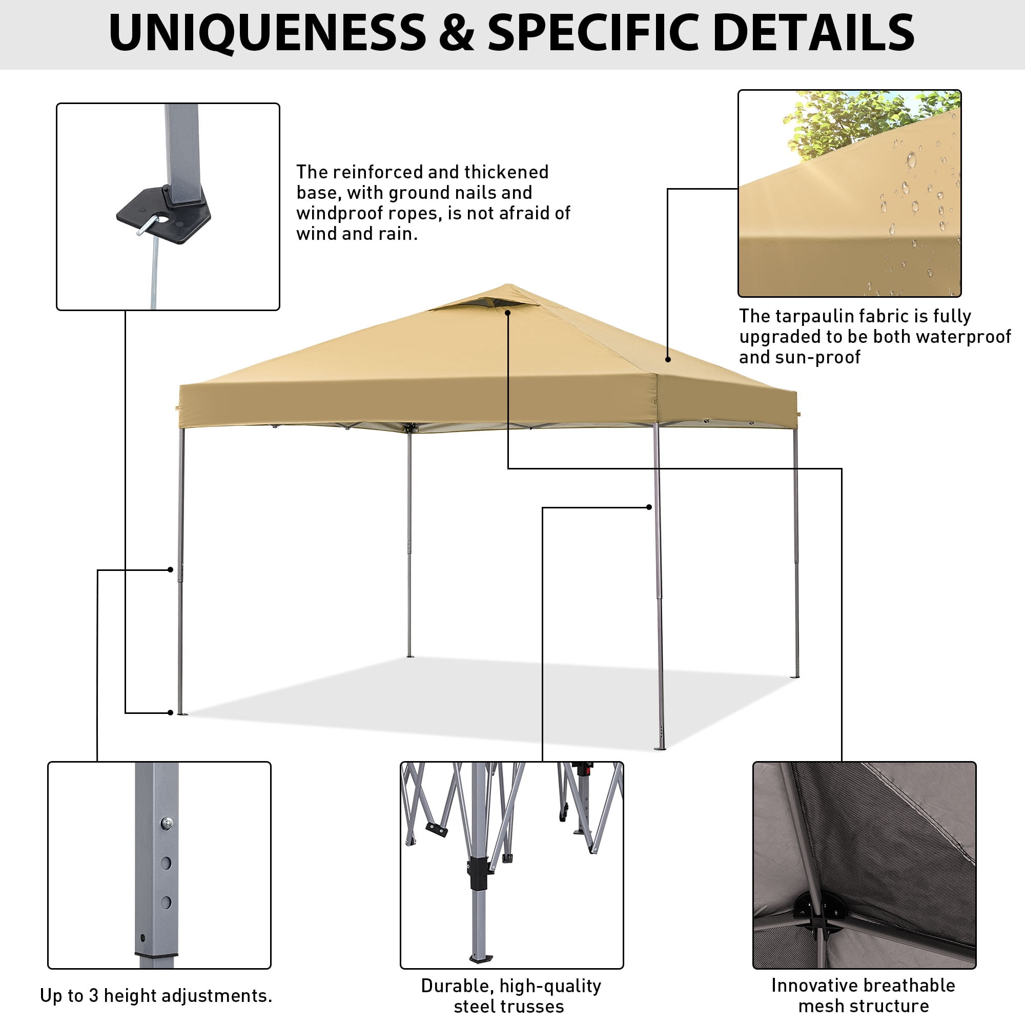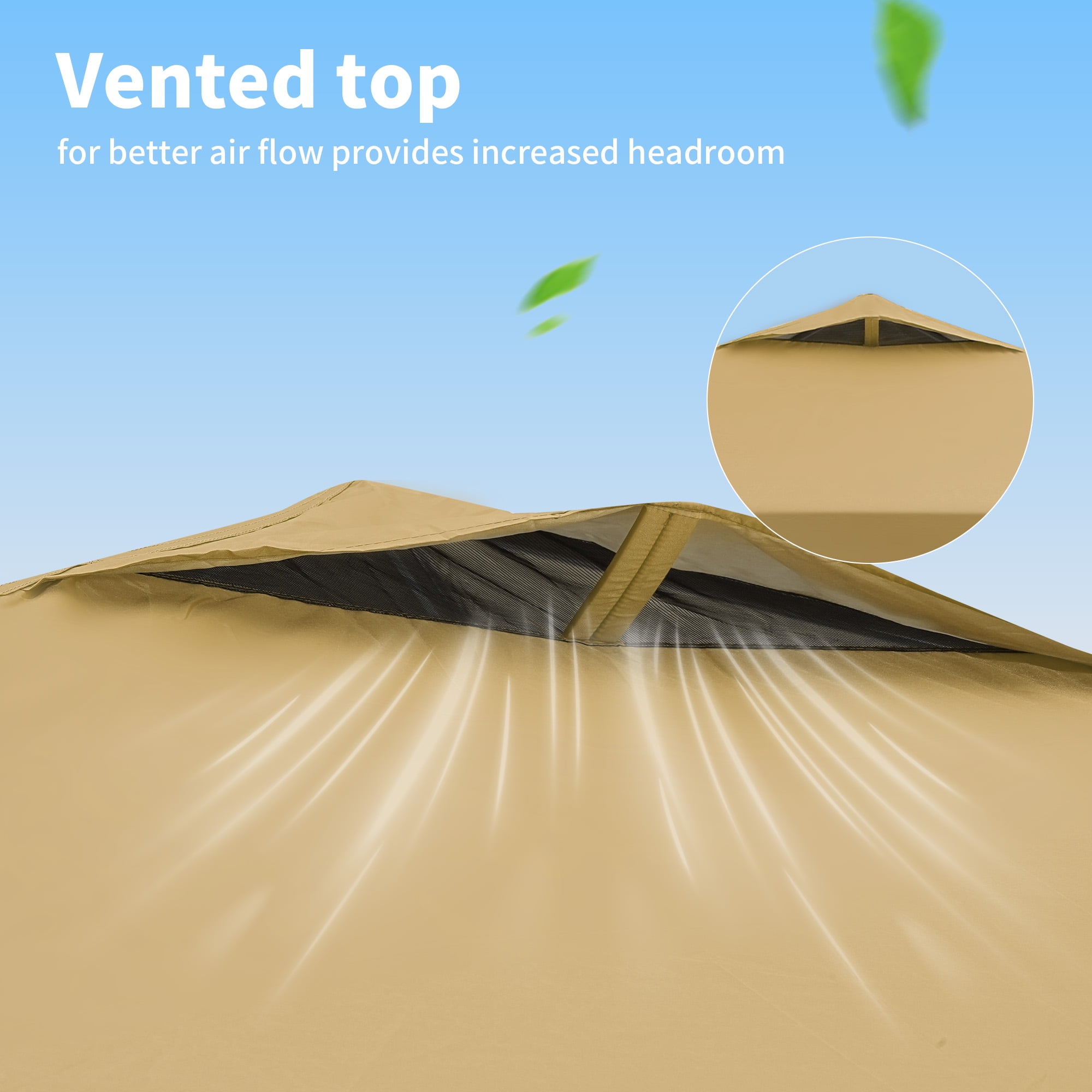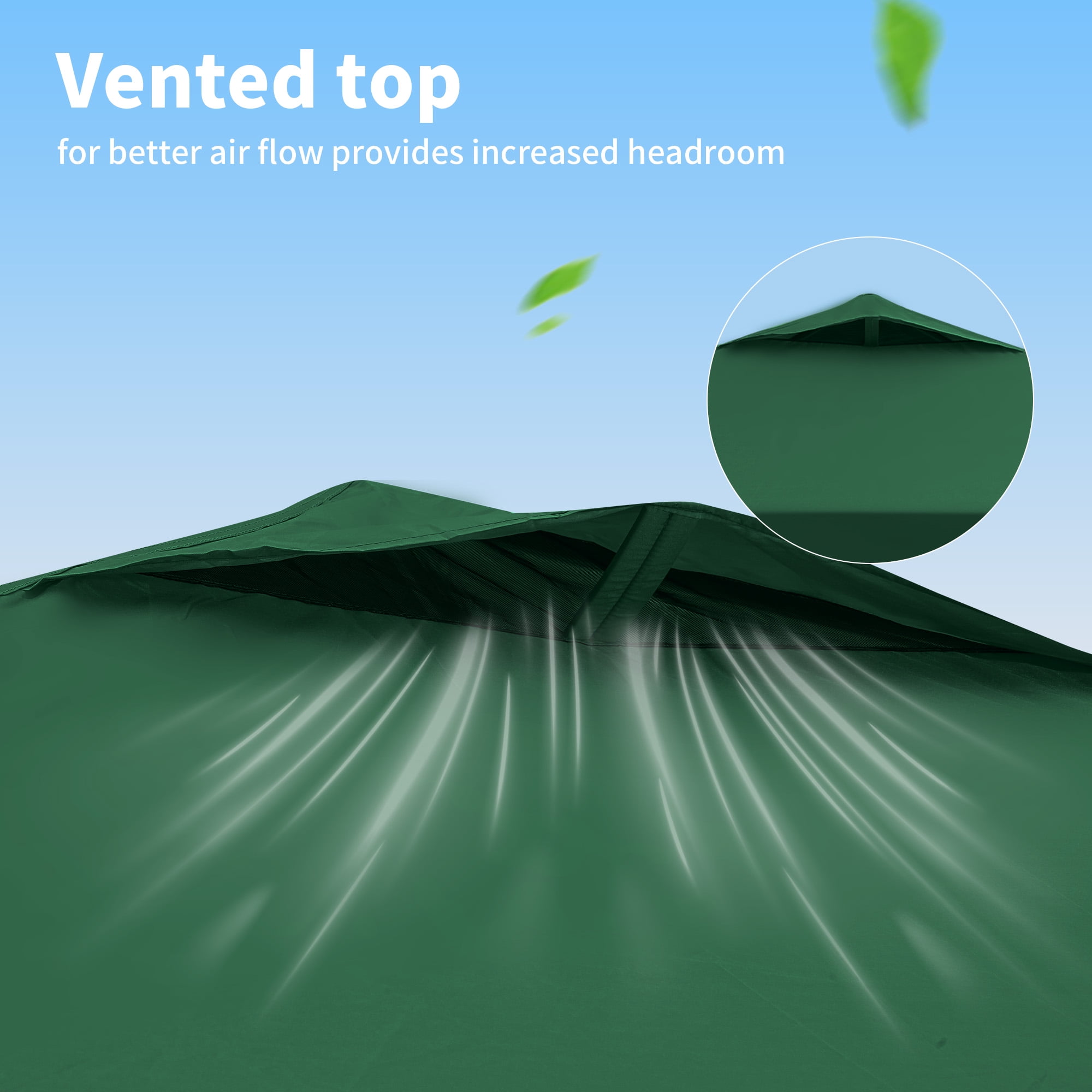 - Ventilated Top: Vented top design improves air flow, preventing wind lift and rain pooling, reducing fabric tearing risks.