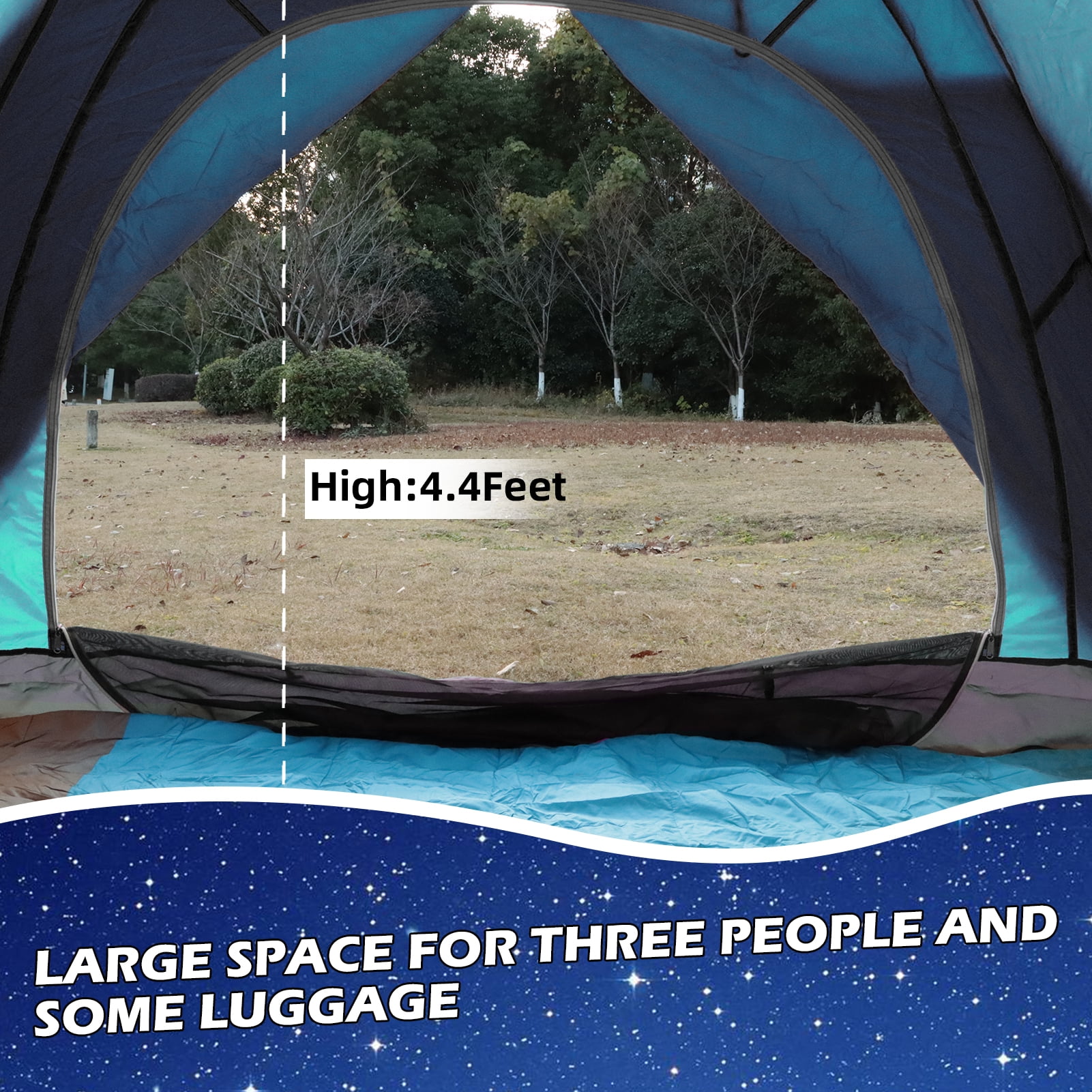 - Spacious Design: This 3-person tent measures 84″L x 72″W x 52.8″H, offering comfortable occupancy for three adults with additional space for luggage.