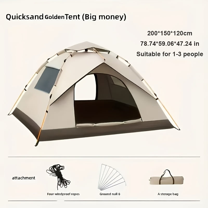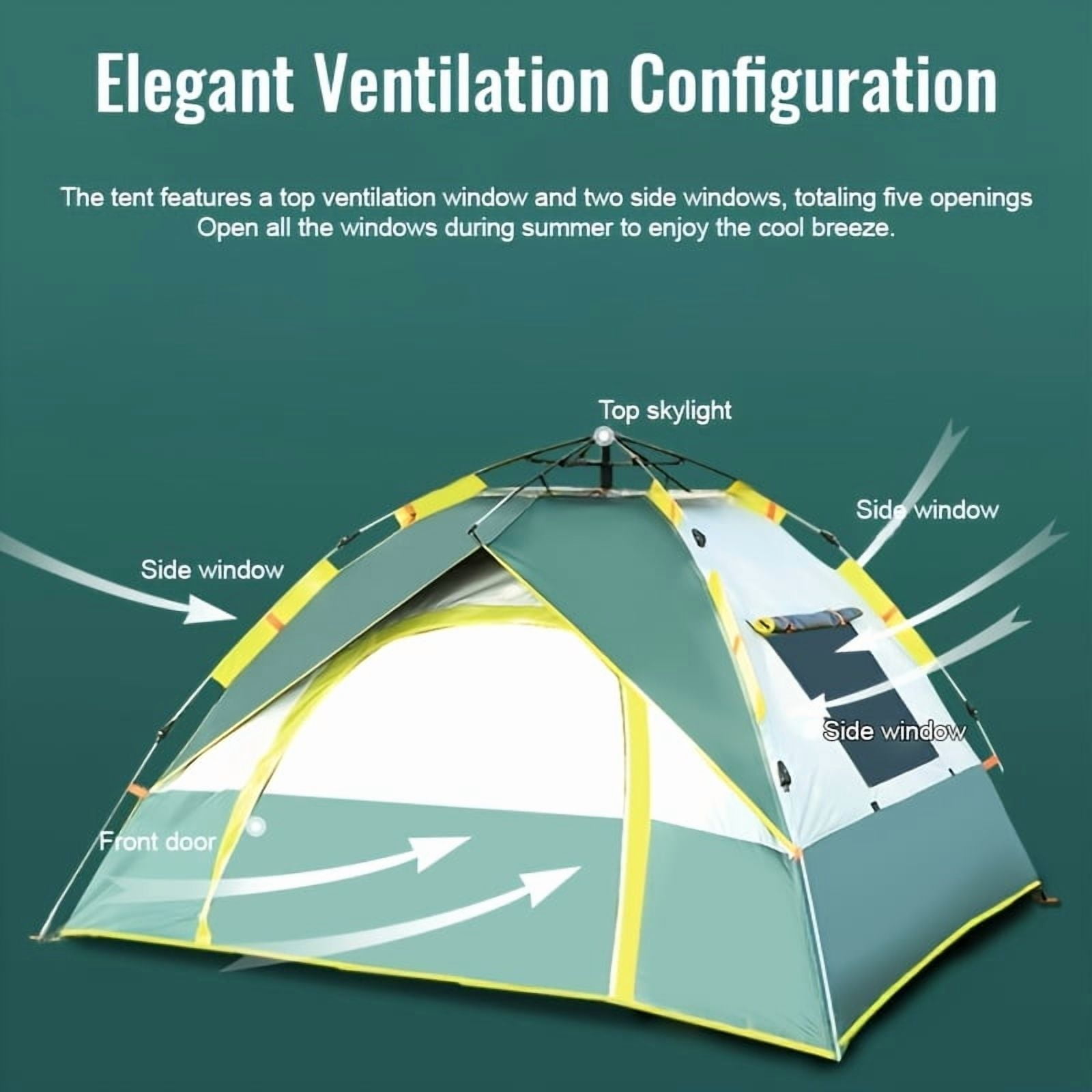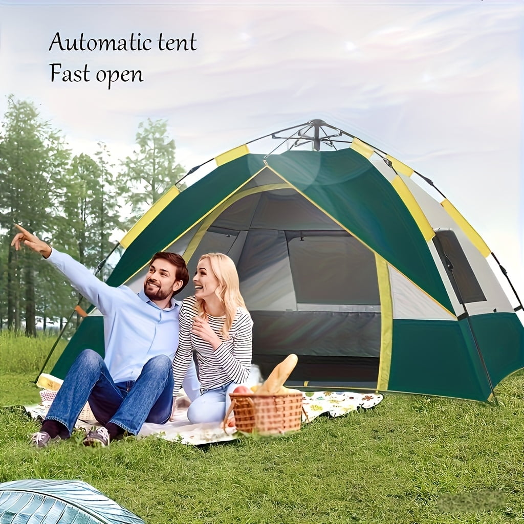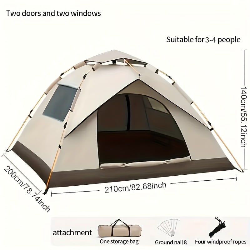 Automatic Instant Setup Camping Tent, 1-4 Person All-Season Tent with Dual Doors & Mesh Windows, Windproof Lightweight for Camping, Hiking, Hunting