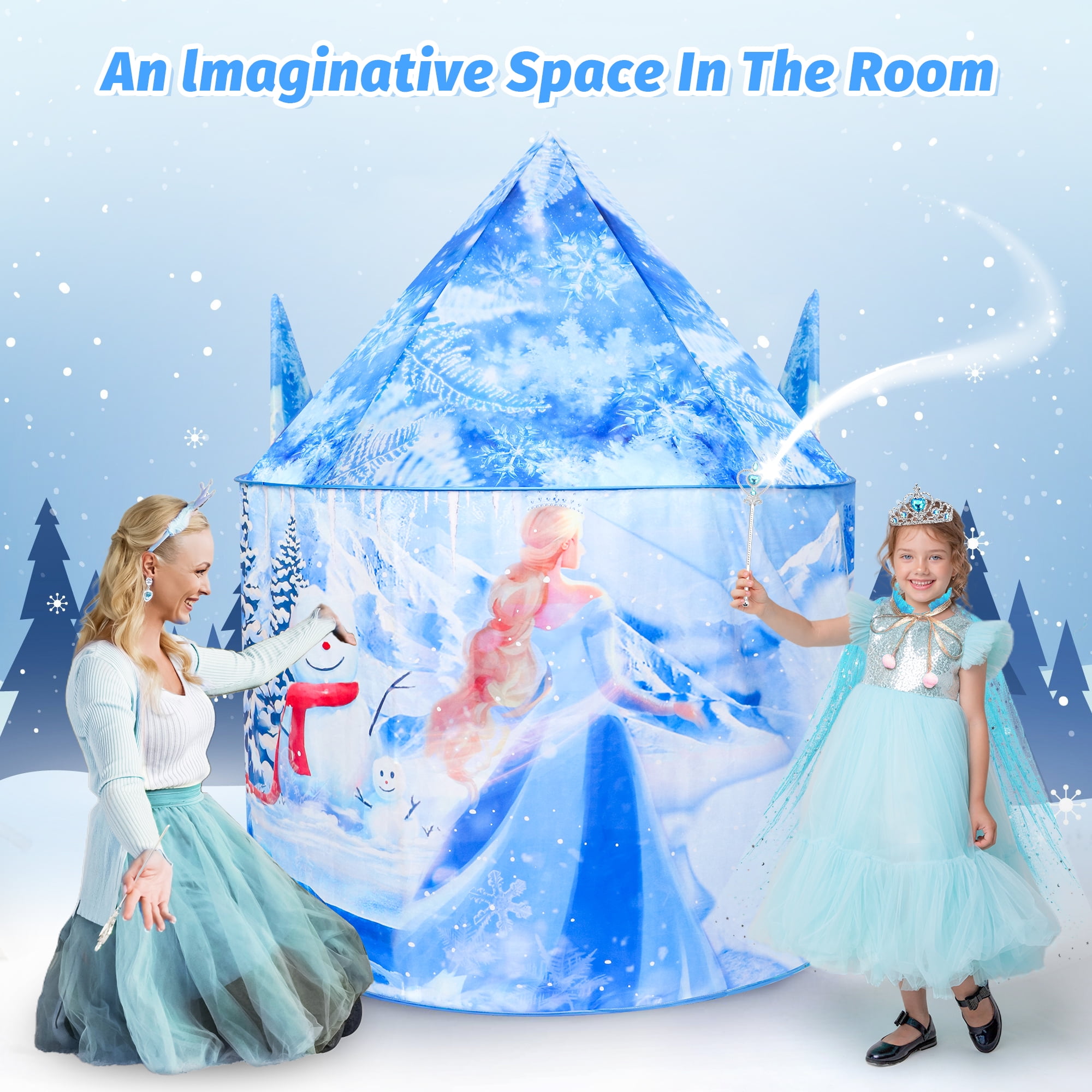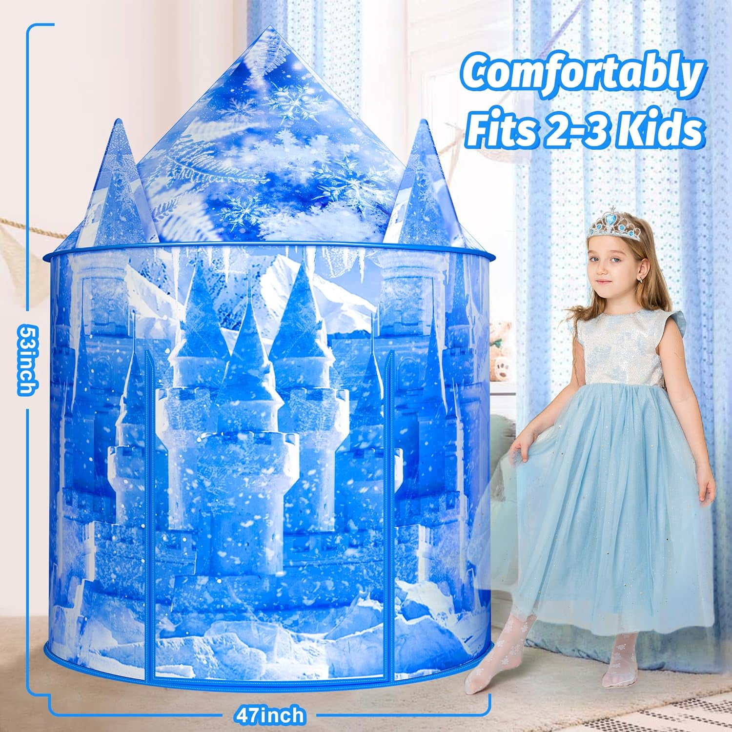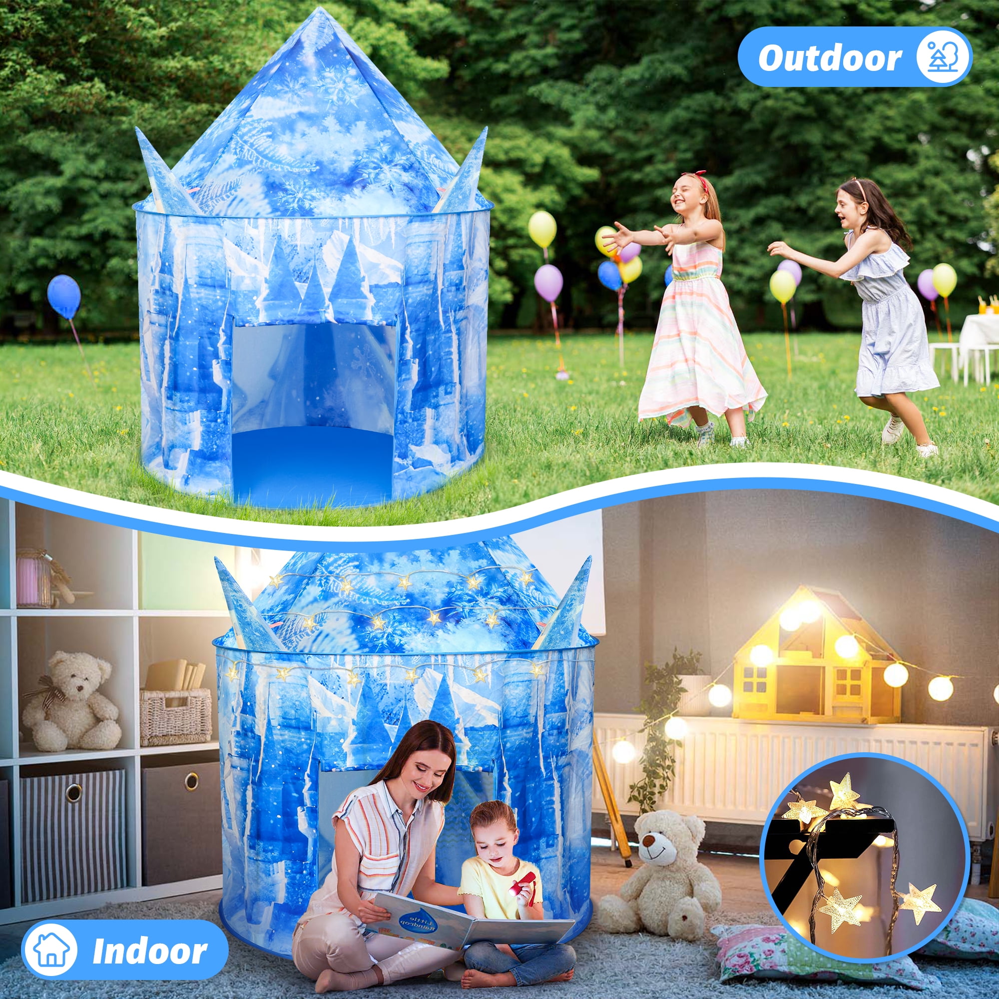 - Enchanting Accessories: Includes an ice castle tent, princess cloak, magic wand, cape, crown, and a 13ft snowflake light string for immersive role-playing and a magical ambiance.