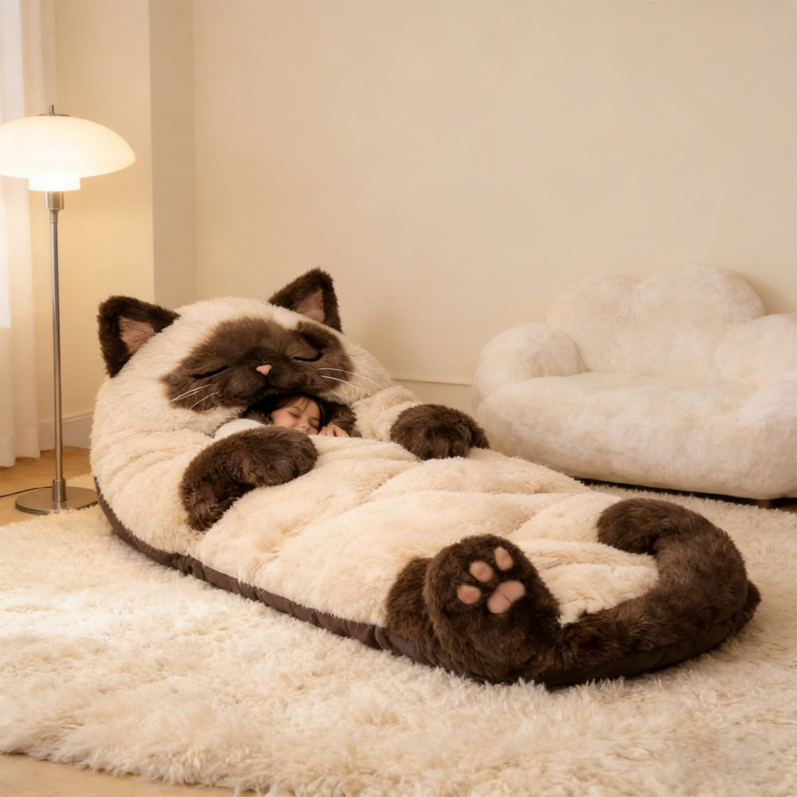 BingTong Adorable Cats Envelopes Sleeping Bag,Fluffy Cat Sleeping Bag For Adults Cold Weather Sleeping Bag For Indoor Lounging, Camping, Travel E