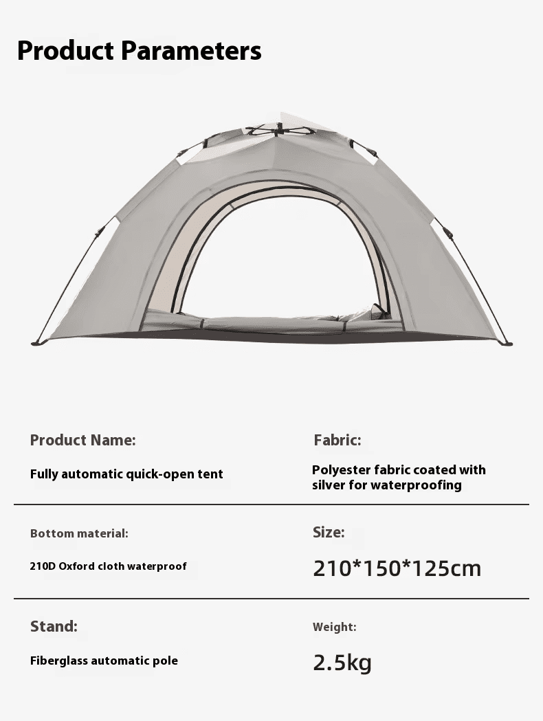 - Fully automatic quick opening camping tent