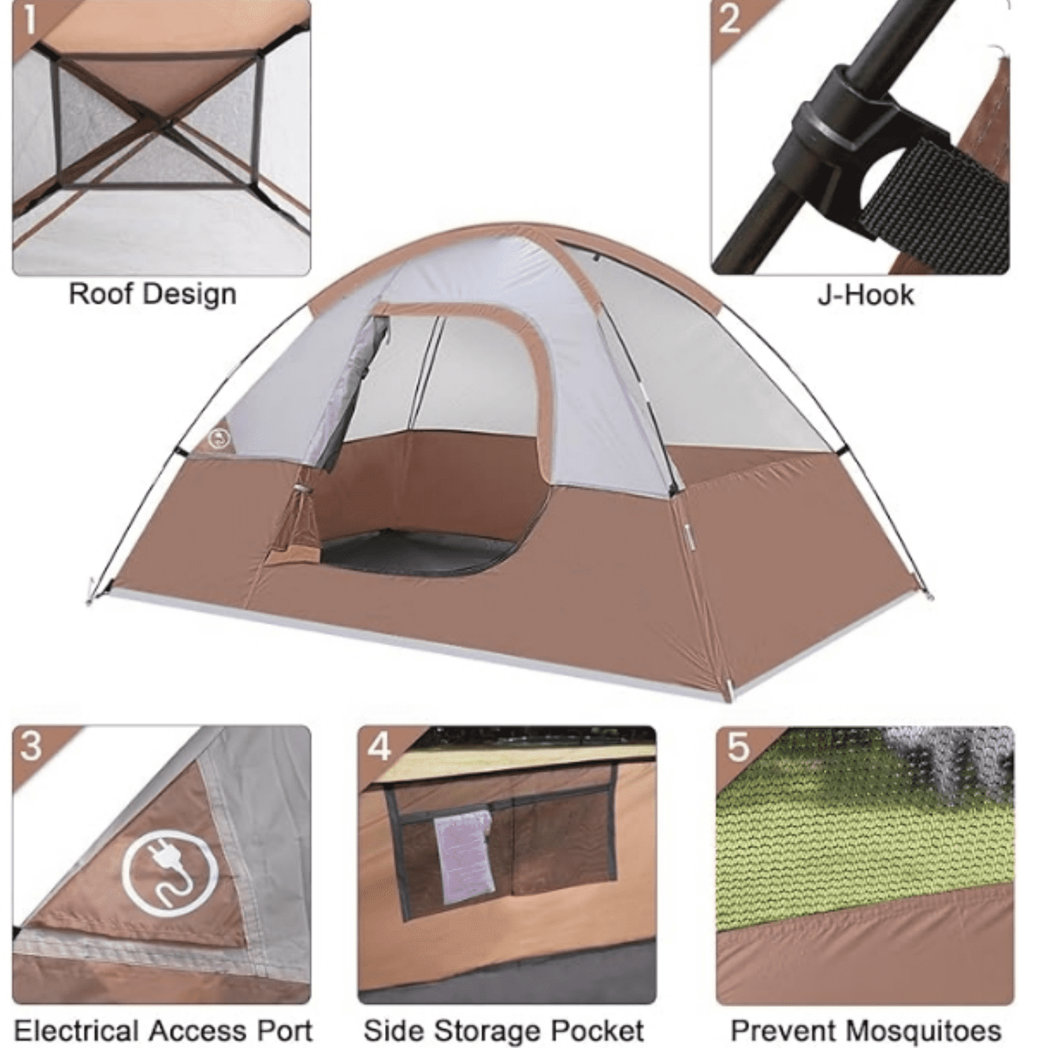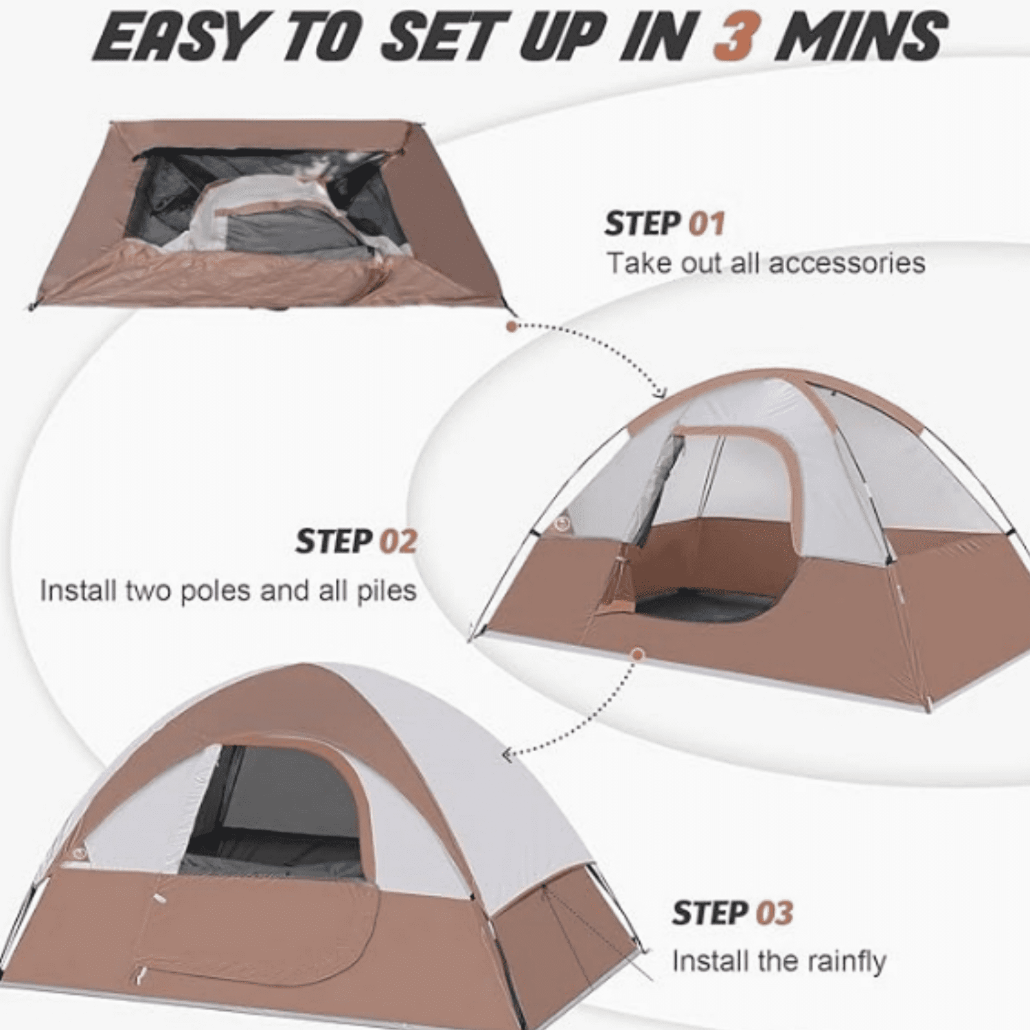 - Windproof & Rainproof: The camping tent is made of stronger tear-resistant polyester.It come with a removable rainfly and two zippers designed for keeping the rain outside the tent. The ropes of tent and piles ensure safety and stability.