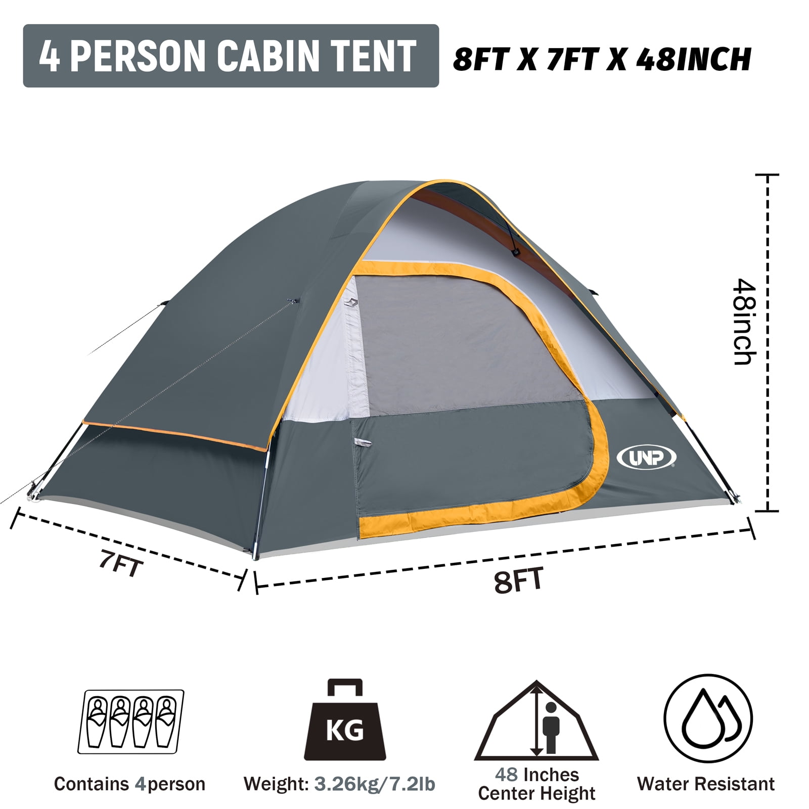 - ‌Lightweight & Big Space: 8′ x 7′ x 48″H Spacious room for 4 adults (most comfortable for 2 person + Gears). The 4 Person tent weighs just 7.18 lbs for easy carry. This tent perfect for outdoor camping, hiking, climbing, fishing in all weather
