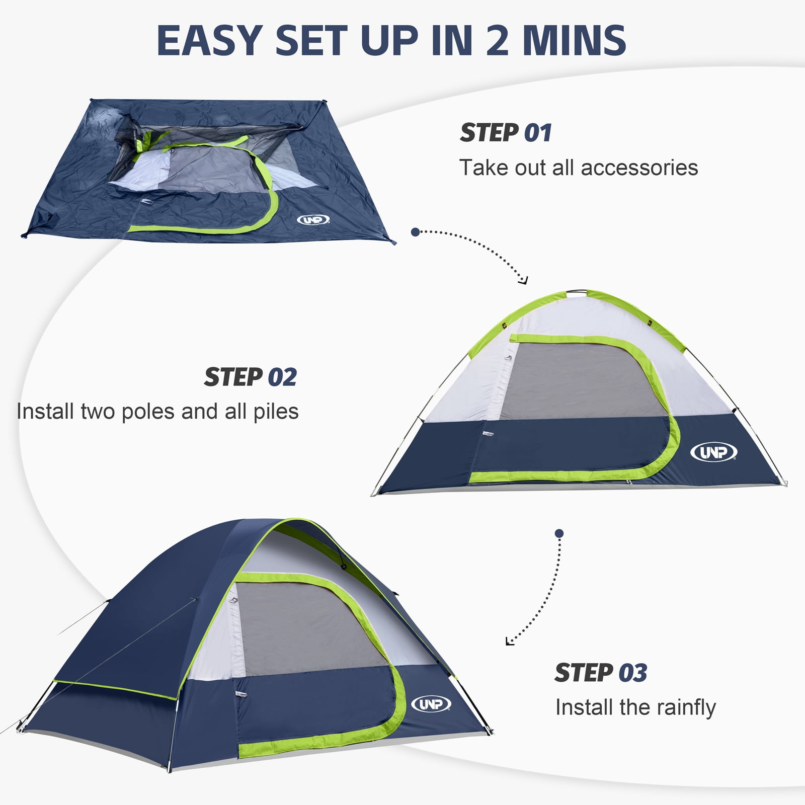 - Easy To Set Up: The tents for camping that can be quickly assembled within 2 minutes and easily assembled by one person according to the procedures and instructions sewn inside the bag