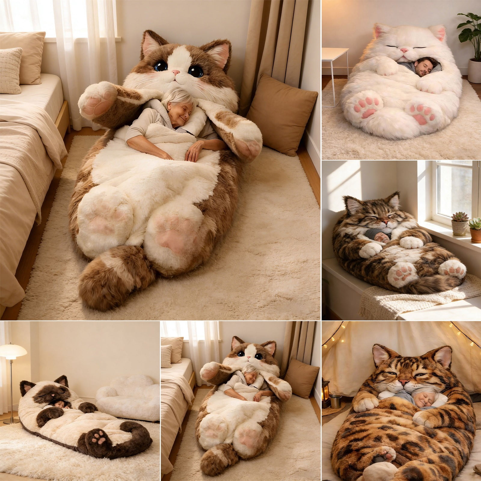 - Fluffy Plush Cat Shaped Sleeping Bag for Adults