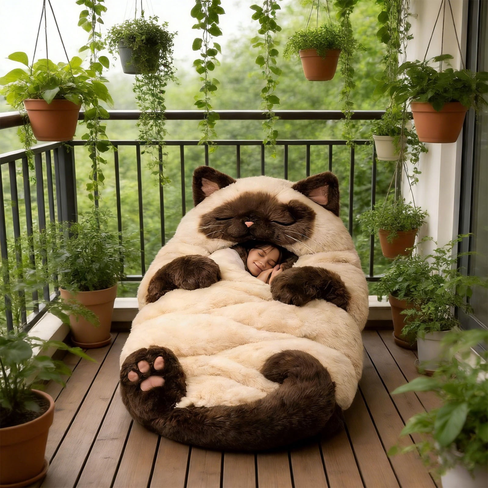 Cozy Sleeping Bag with Adorable Cat Design – Soft Envelope Style for Indoor Lounging, Camping & Sleepovers, Novelty Home Comfort(E)