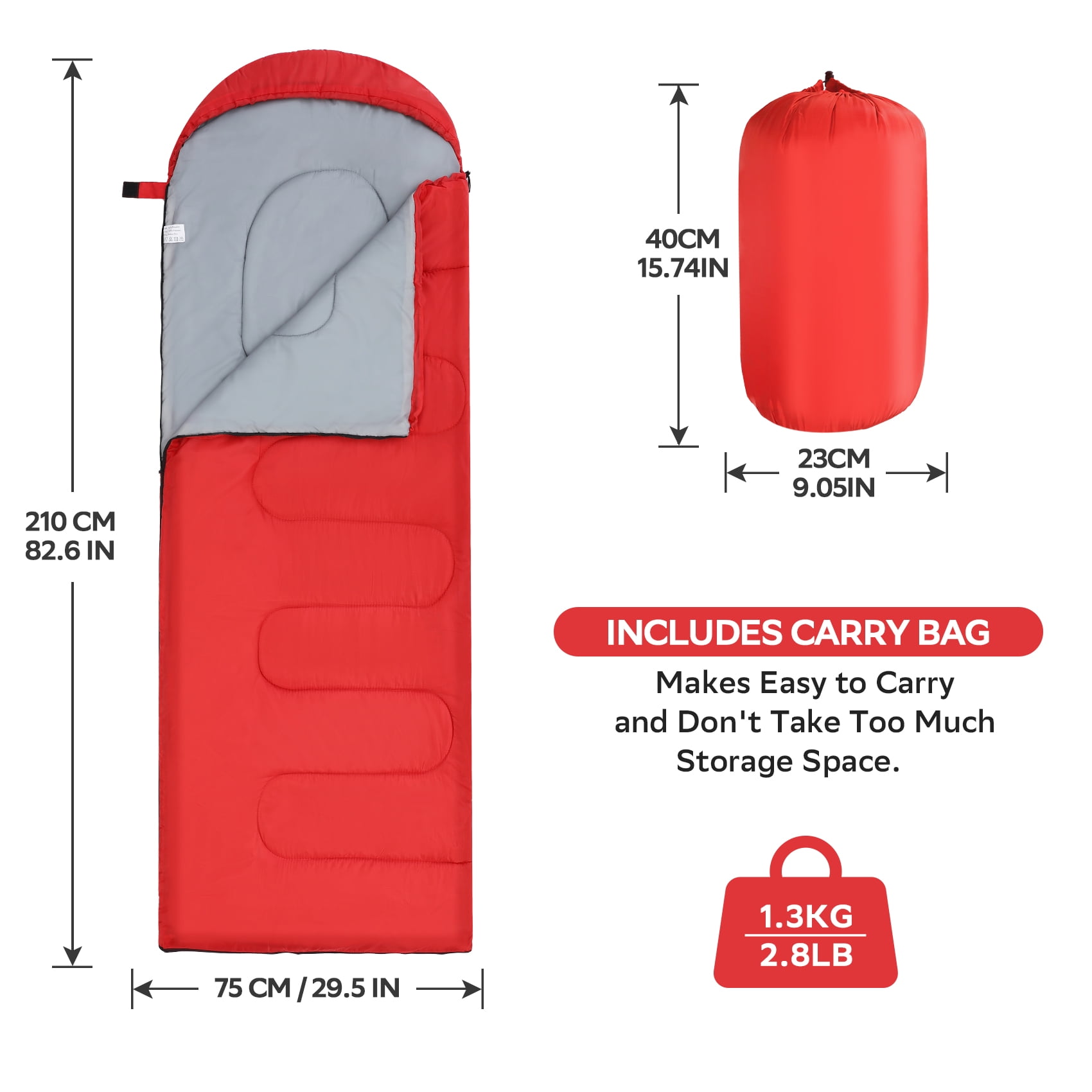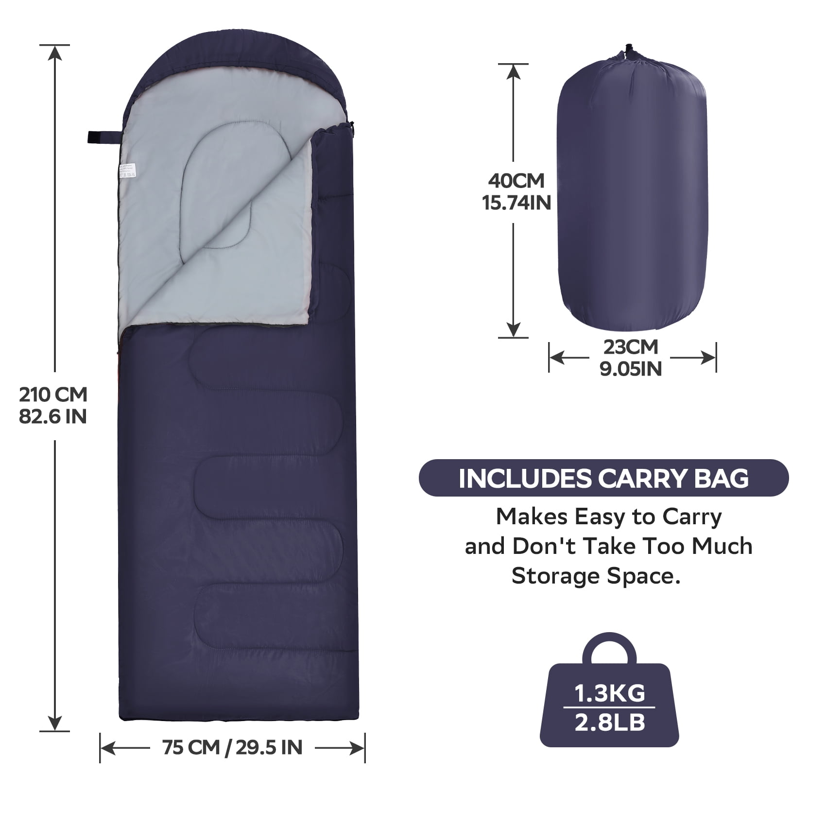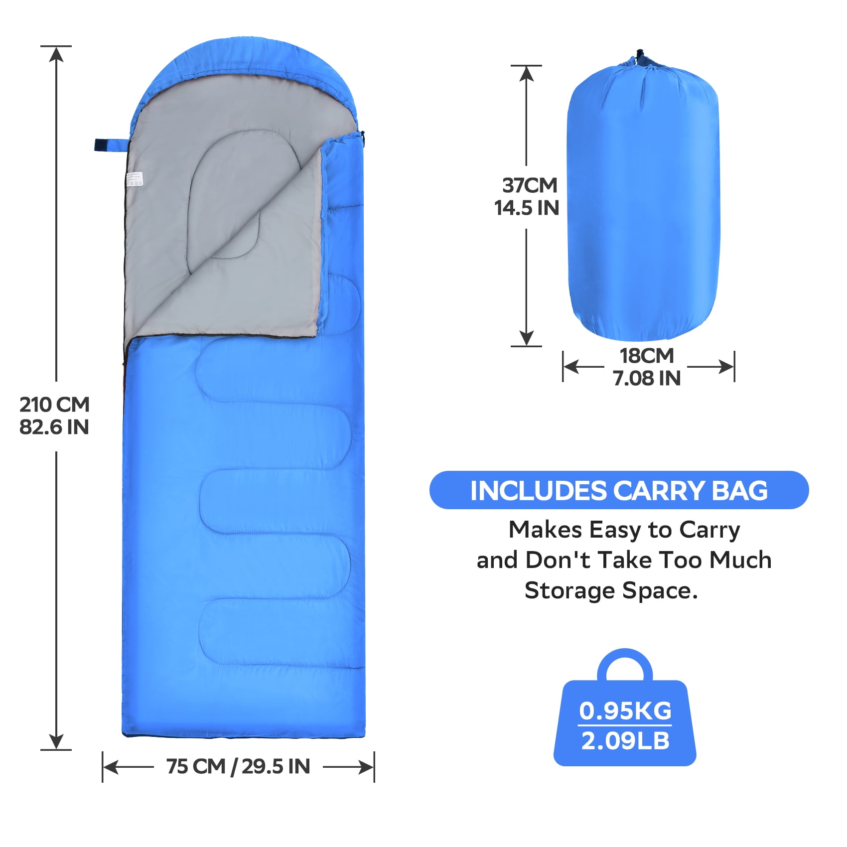 - Ultra-Portable: Weighing only 2 pounds and compacting to 14.5 inches by 7.08 inches, the sleeping bag is easy to carry in its dedicated carry bag, which doubles as a backpack.