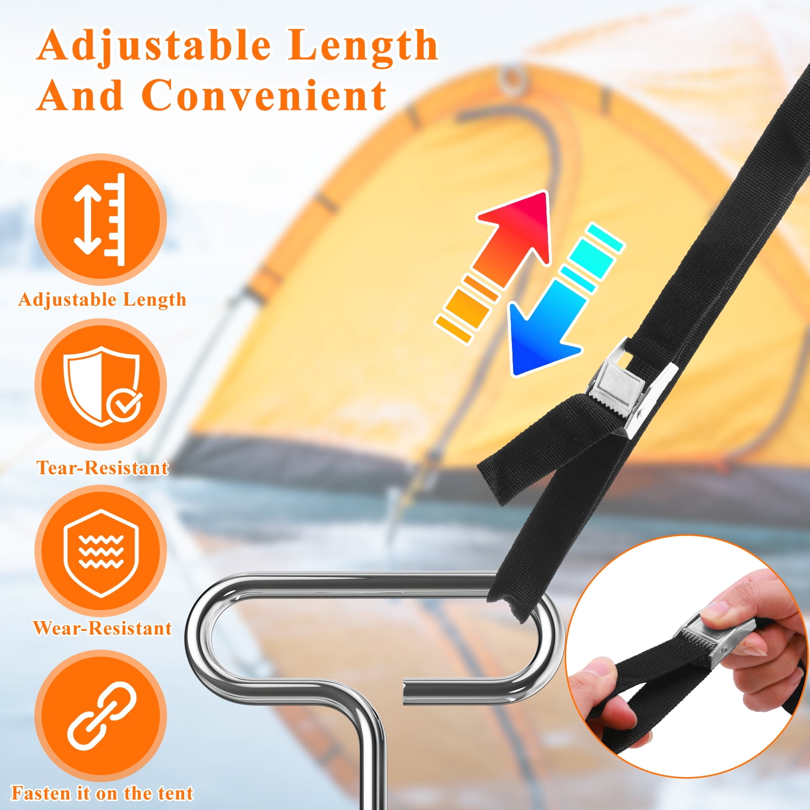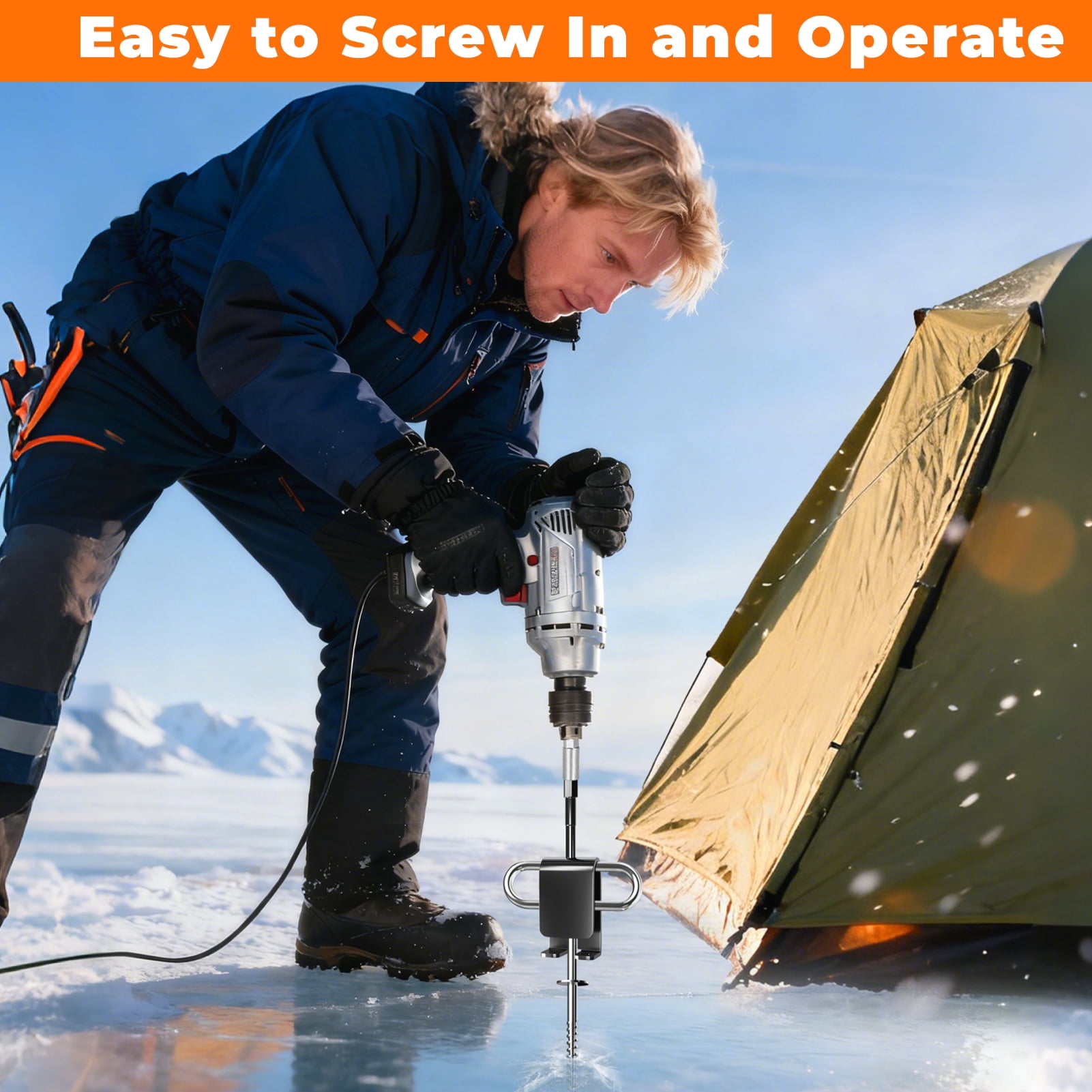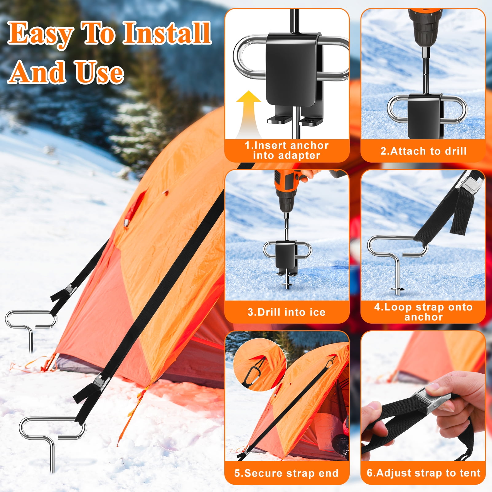 - [EFFORTLESS TO USE] Connect the T-shaped ice anchor to a drill adapter with a 1/4-inch head and drive it into ice or frozen ground with controlled power. The ice stake threads in smoothly, helping reduce manual effort and speed up setup. Adjustable straps provide flexible tensioning for different shelter sizes, assisting in keeping the shelter stable and well-positioned. Even in cold weather, setup remains straightforward and efficient.