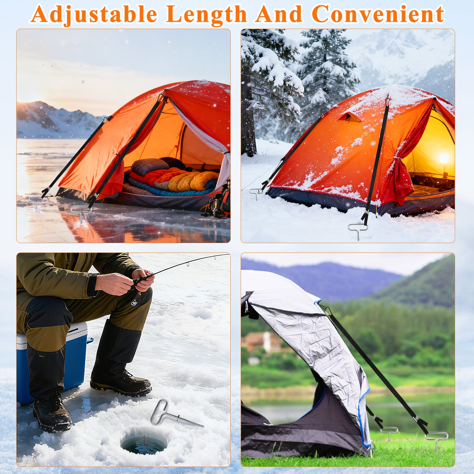 - [VERSATILE APPLICATIONS] Designed for multi-season outdoor use, this ice anchor kit works across a wide range of environments. It helps secure tents, ice shelters, and shanties for camping, ice fishing, hiking, and other outdoor activities. Suitable for ice, snow-packed ground, and frozen surfaces, it supports a stable shelter setup on different ground types, giving you added confidence in changing outdoor conditions.