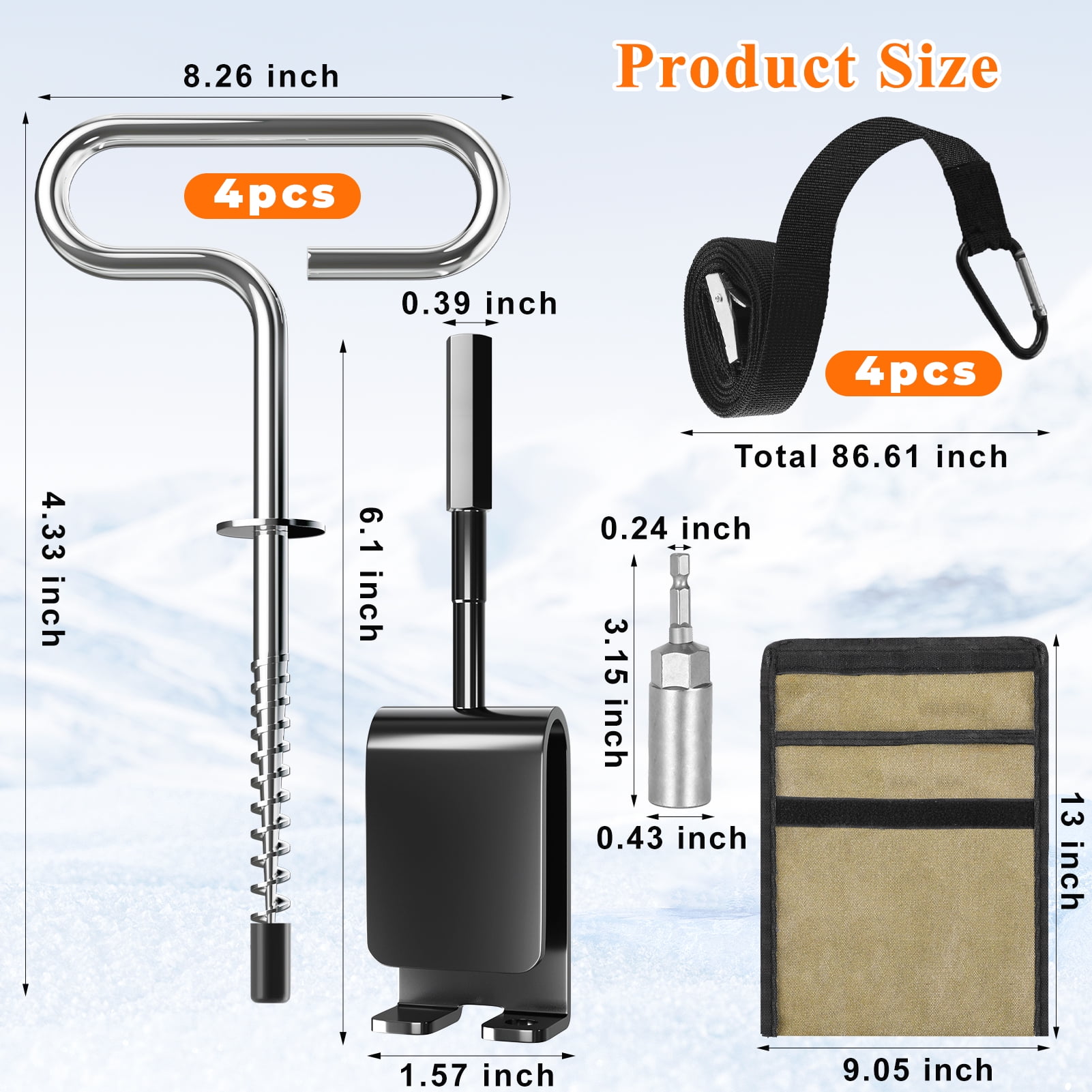 - [IDEAL GIFT CHOICE] The ice anchor set includes a compact, sturdy storage bag that makes it easy to carry and keeps all components neatly organized. Practical, portable, and designed for convenience, this kit is a thoughtful gift for family and friends who love outdoor activities, camping, ice fishing, or winter adventures. It combines functionality with portability, making it perfect for anyone who enjoys exploring the outdoors safely and efficiently.