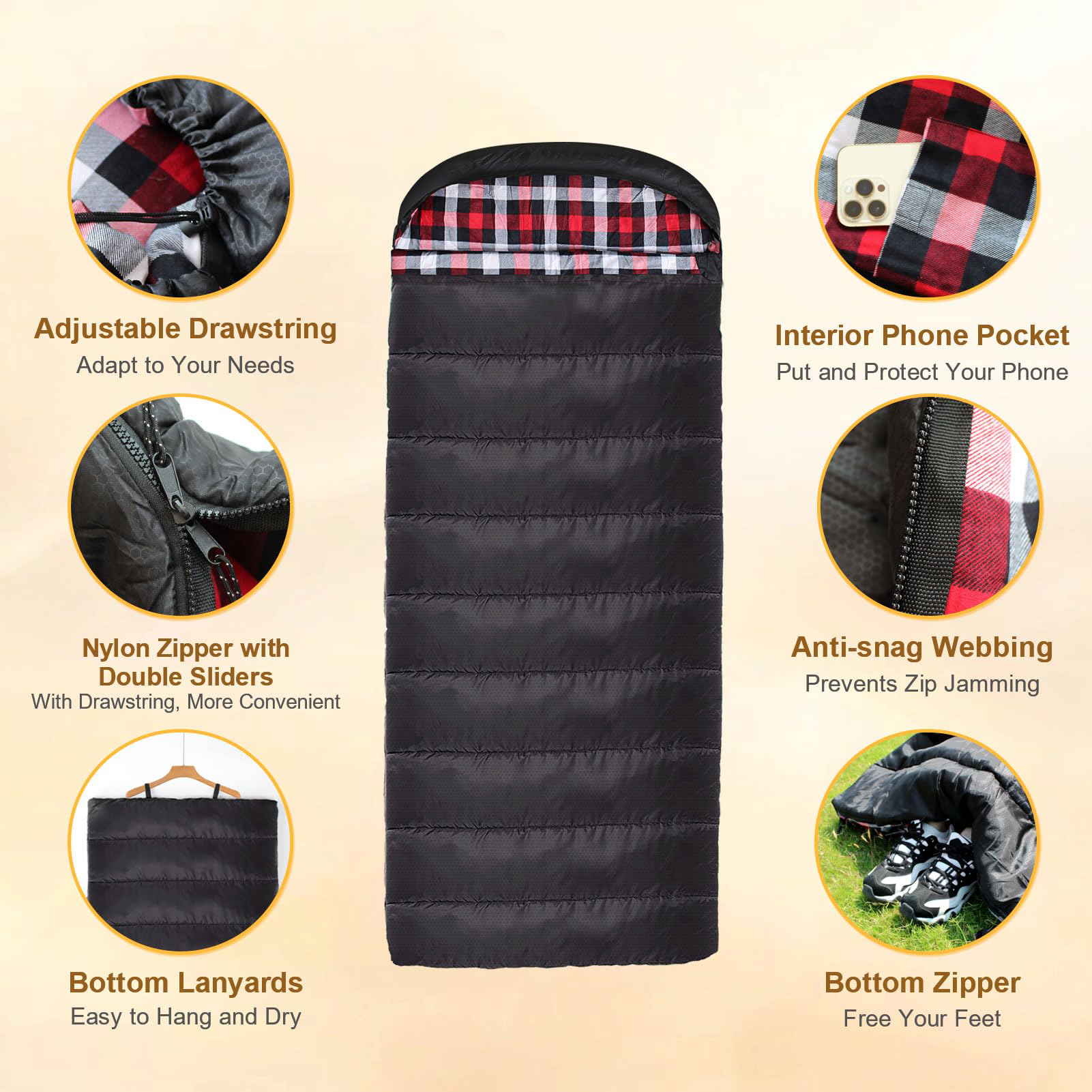 - Spacious Design: This XXL sleeping bag measures 90.55 x 39.37 inches, offering an enlarged and widened design for ample space and freedom of movement, accommodating various body types.