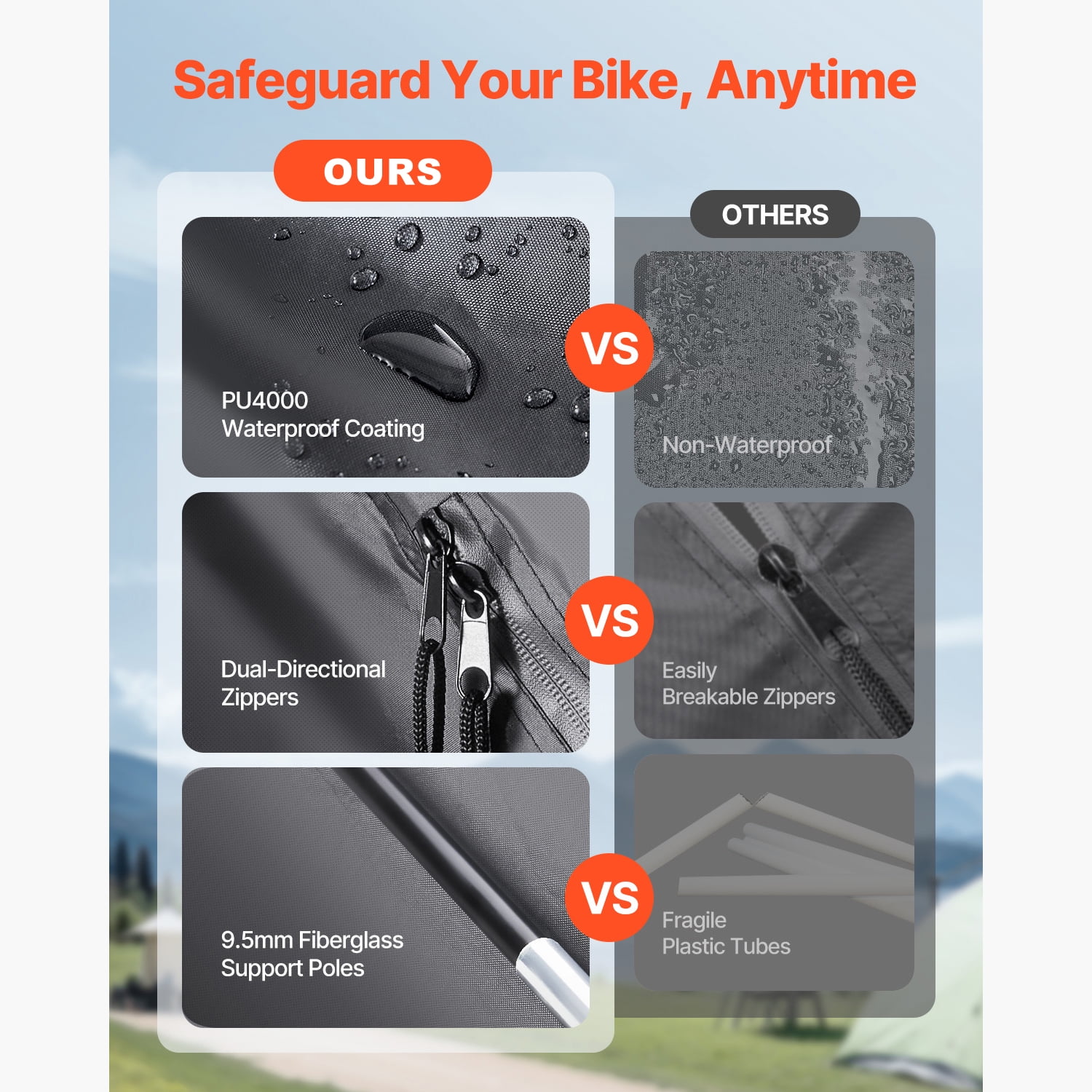 - Robust & Long-lasting: Constructed with a strengthened fiberglass framework and a multi-point triangular stabilization design, this bike shed maintains stability and resists deformation. The fiberglass poles, featuring a 9.5mm inner diameter, provide excellent corrosion resistance and insulation, making them perfect for extended outdoor use.