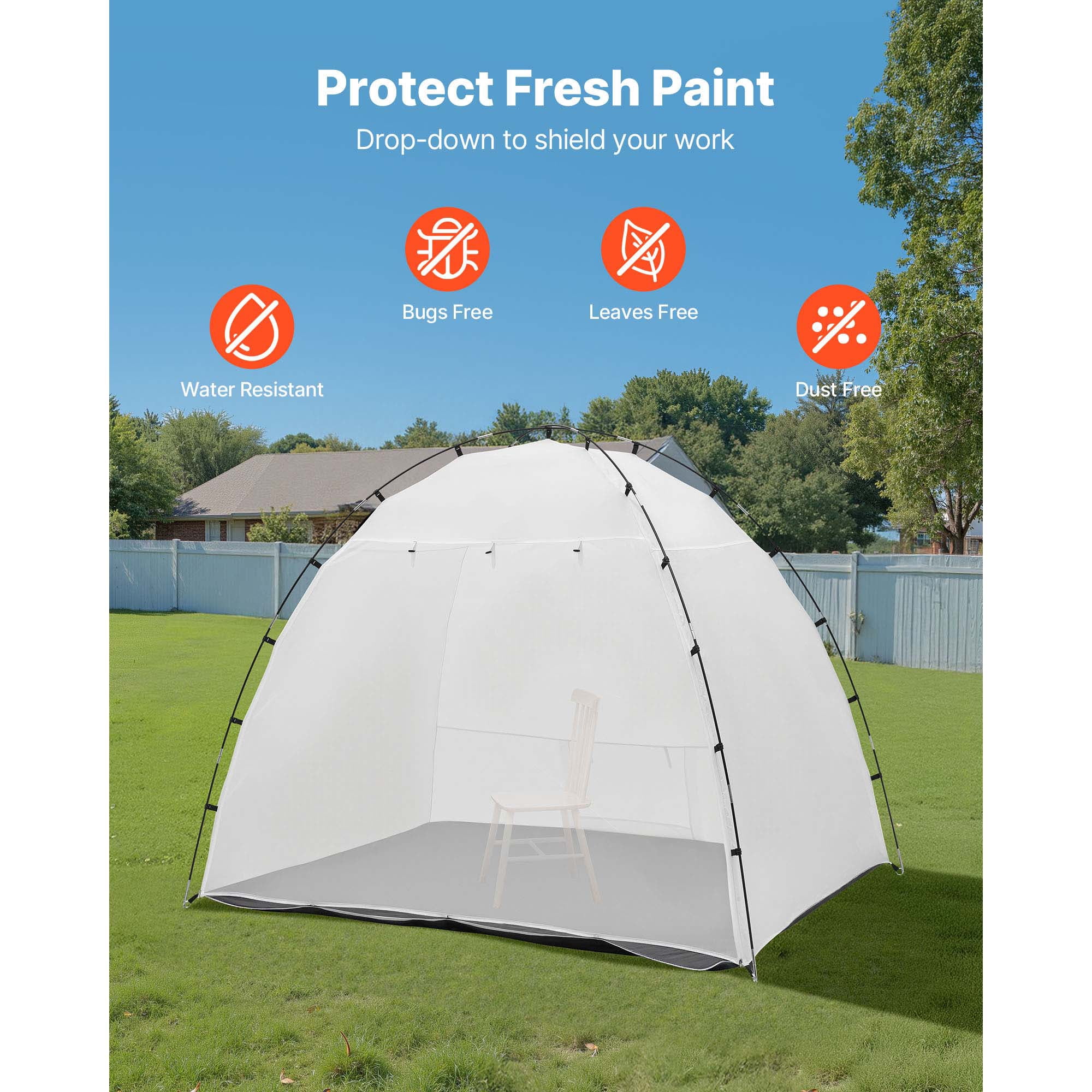 - Comprehensive Protection: This spray paint tent features retractable panels designed to block dust, debris, and falling leaves. Its integrated floor helps contain paint spills, ensuring a clean workspace and protecting your projects.