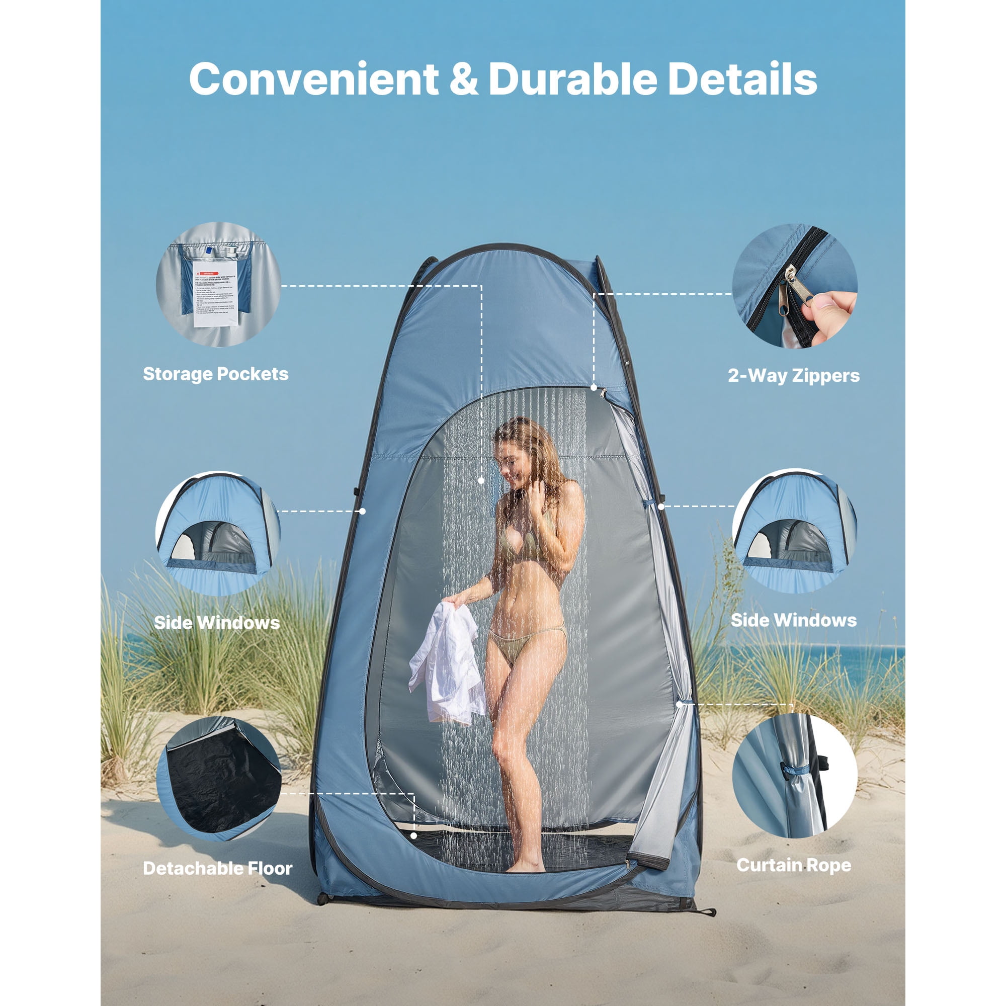 - Handy Storage Compartment: This integrated storage compartment is perfect for keeping phones, keys, toiletries, and other small items neatly organized. The privacy shower tent ensures your belongings stay in place and maintains a clutter-free interior.