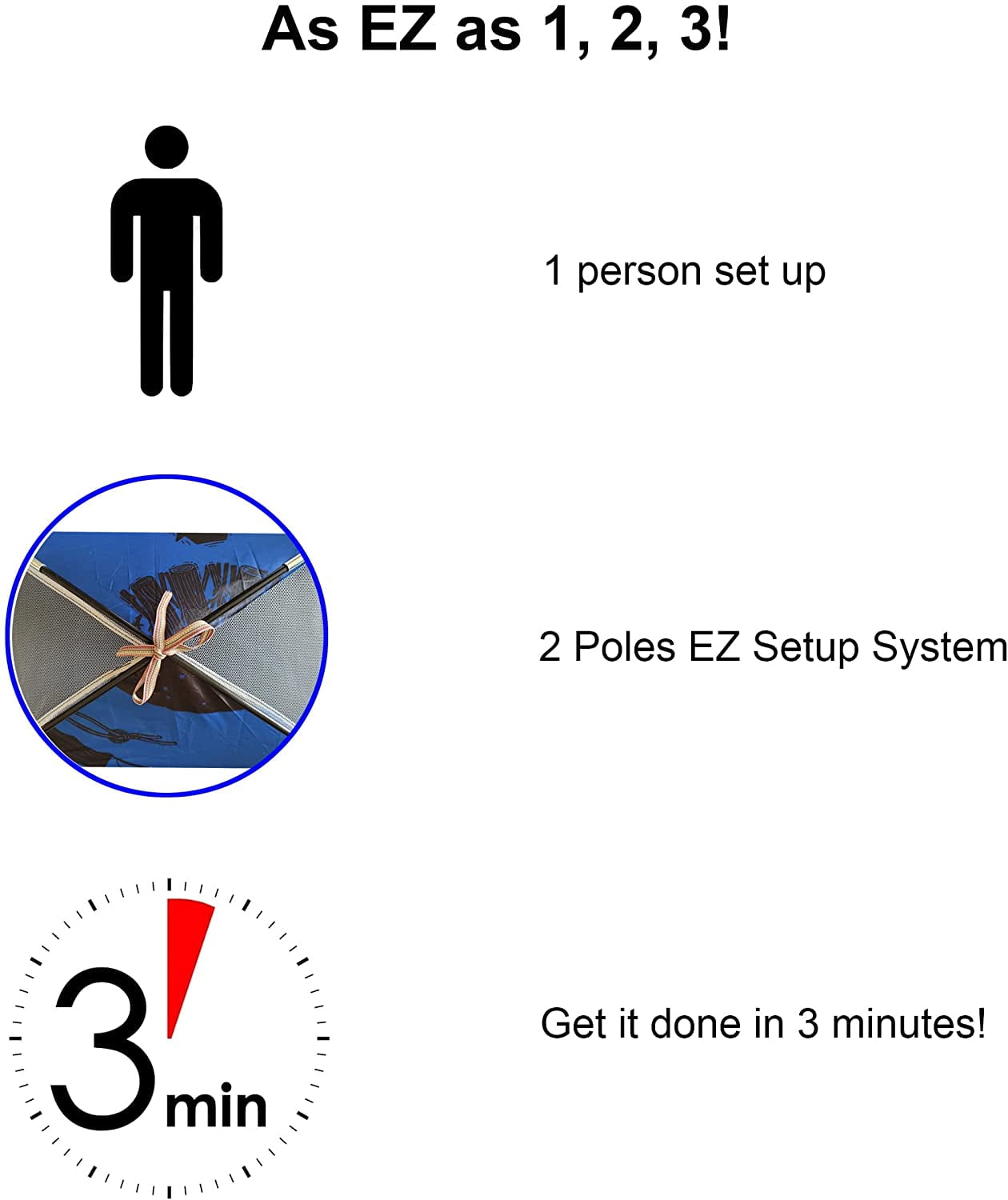 Easy Setup: Equipped with a 2 Pole EZ setup system, allowing one person to set it up in just 5 minutes.