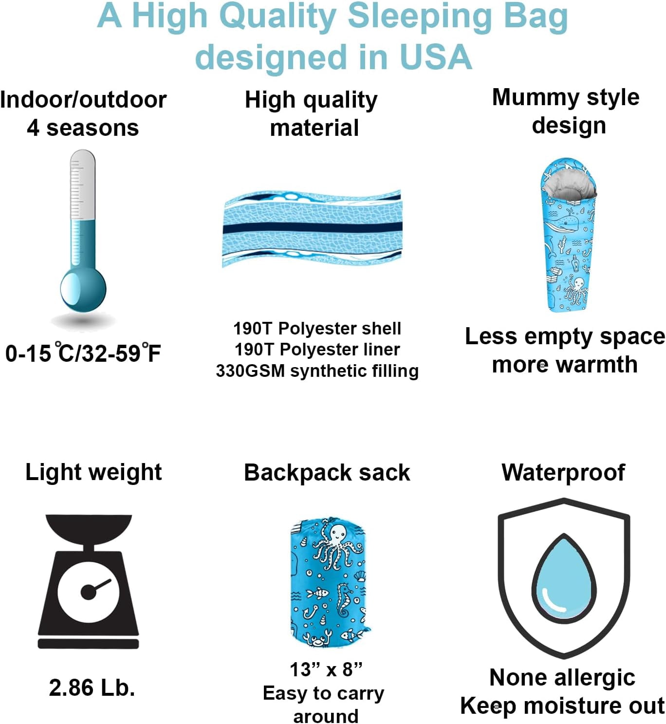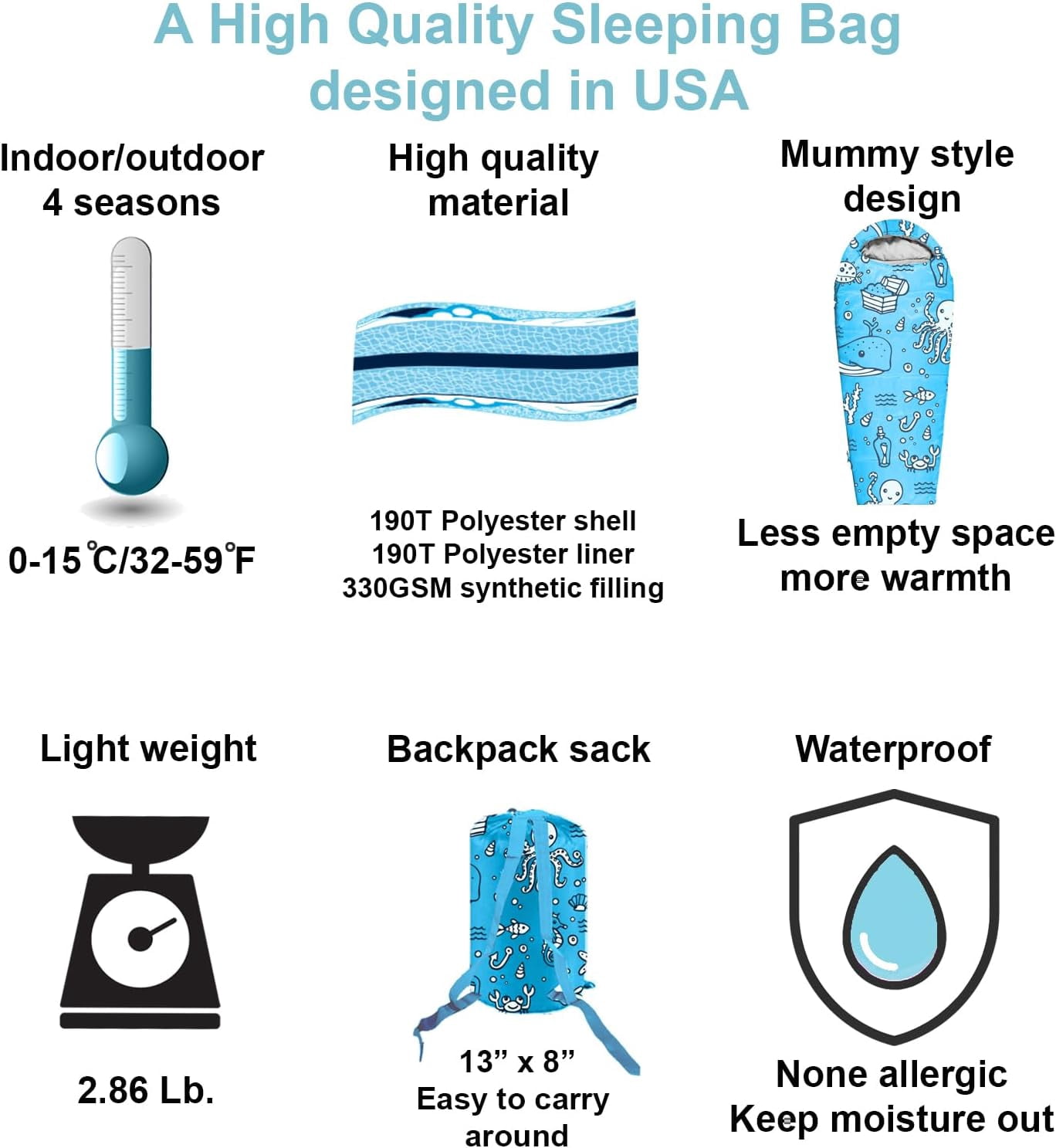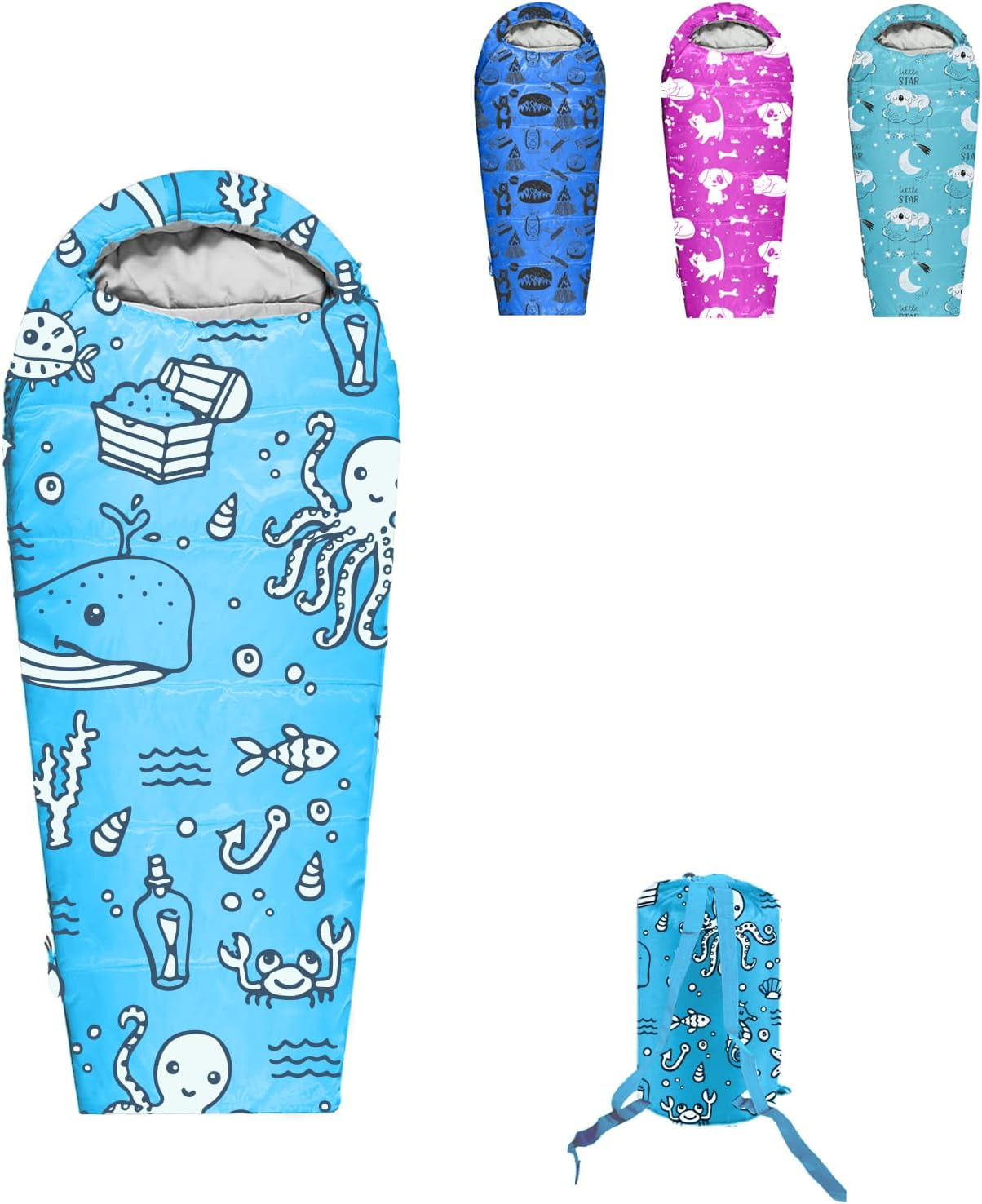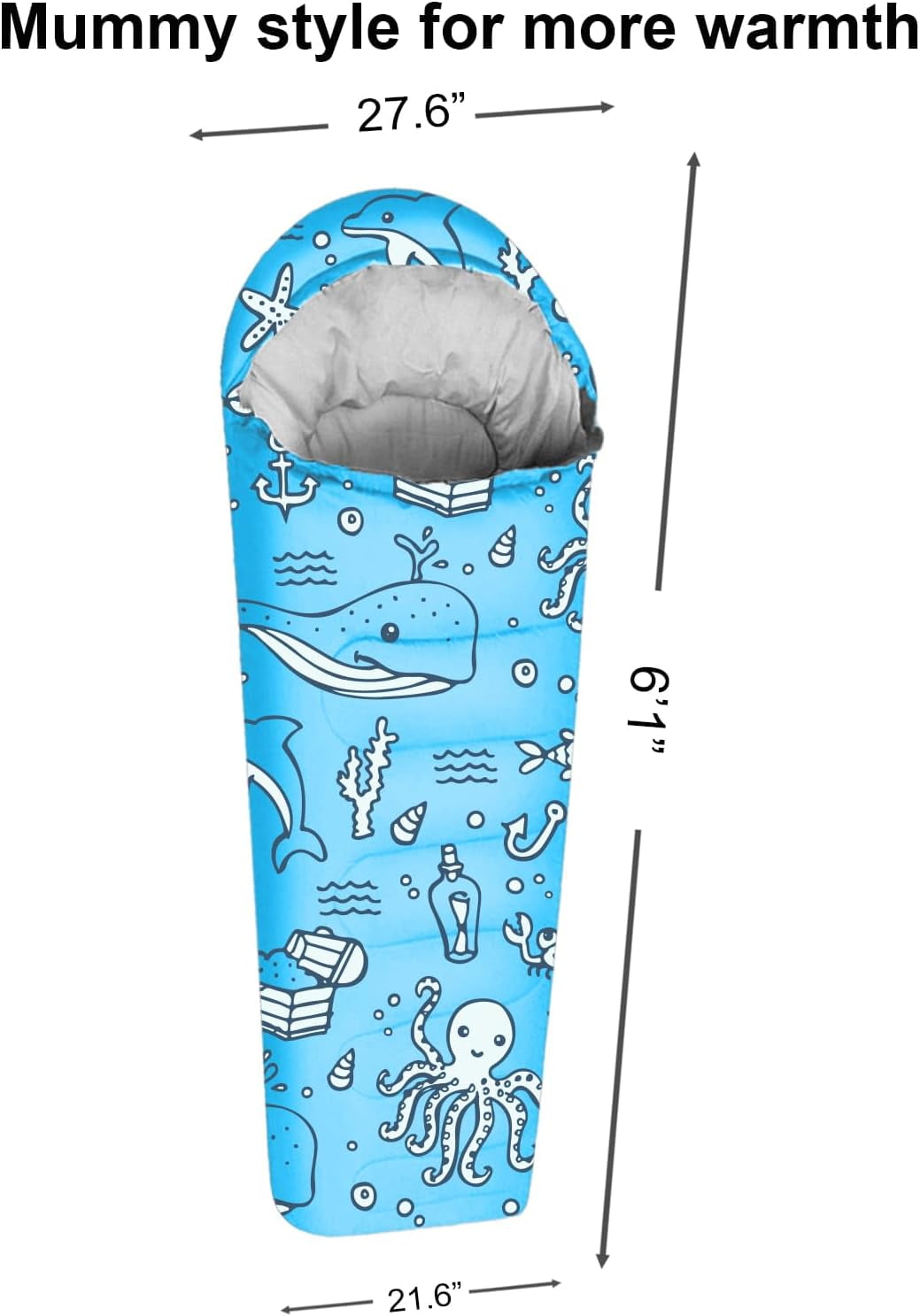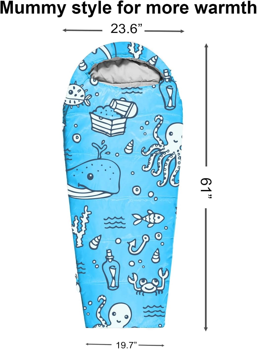 KidzAdventure 32-59F Youth and Kids Sleeping Bag | Indoor/Outdoor Boys and Girls Sleeping Bag | Mummy Style, Lightweight Sleeping Bag for Kids – Ocean World Youth