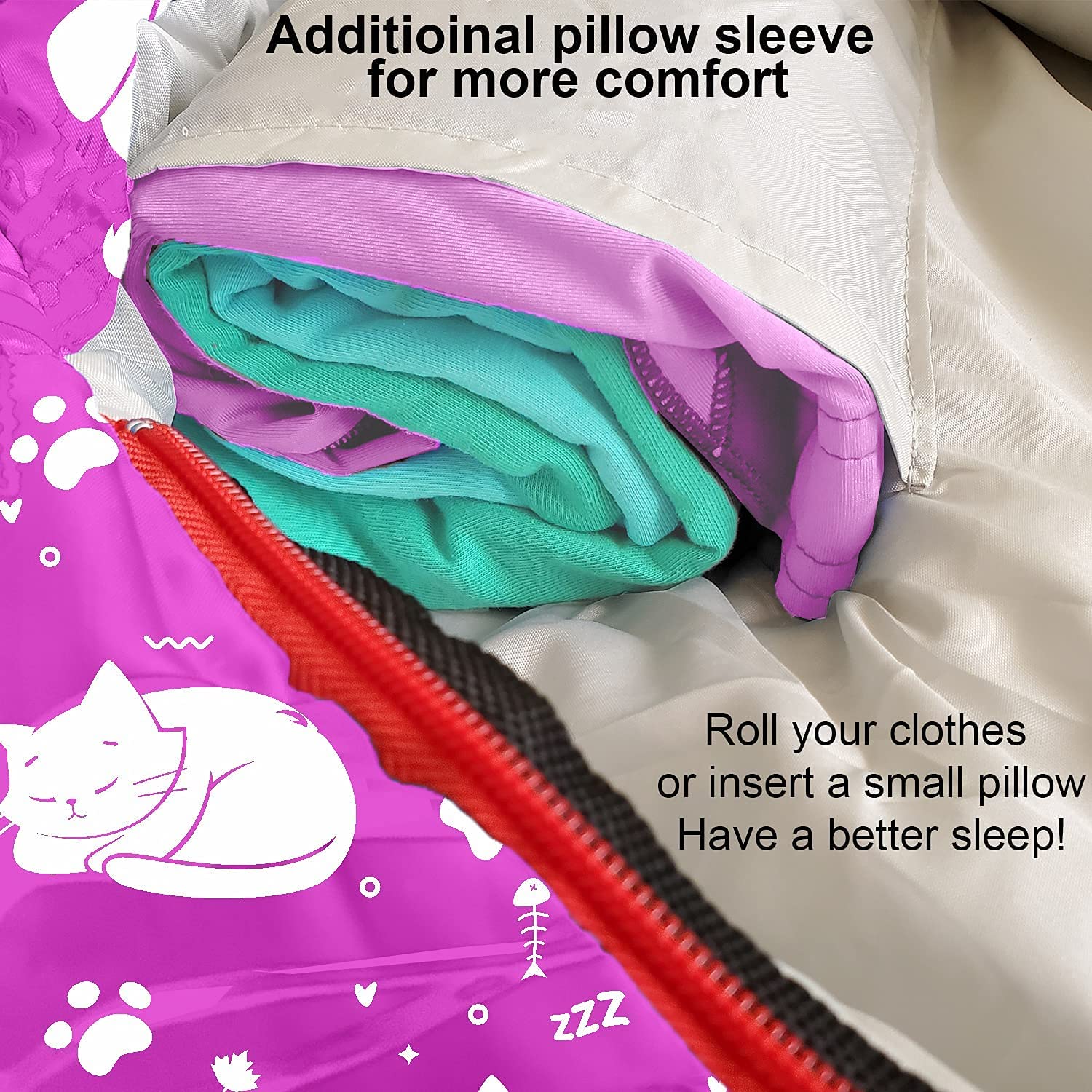 Extra comfort and guaranteed durability: Nothing is more important for good sleep than a comfortable pillow. We designed a unique pillow sleeve for our sleeping bag where you can insert your favorite pillow – adding comfort and convenience! In addition, we are confident this sleeping bag will last your kids for 3 years. If your sleeping bag fails to meet this standard, send it back for a full refund