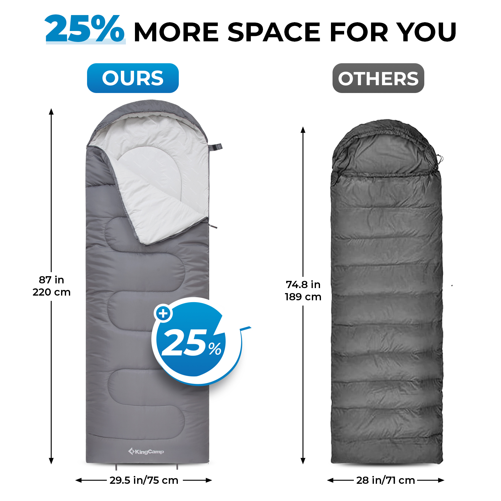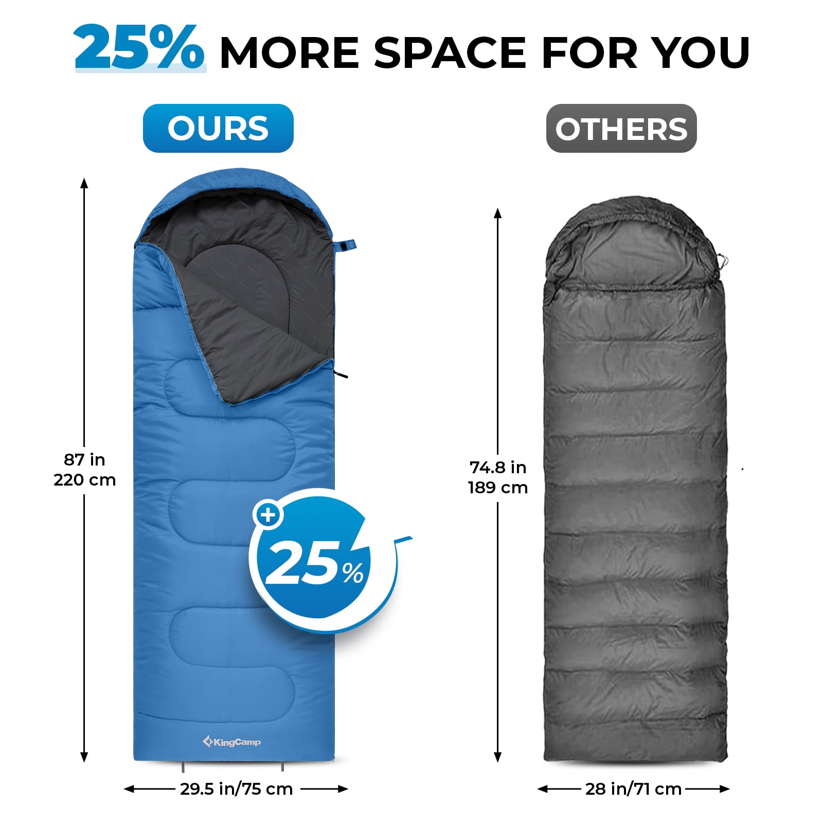 Spacious Comfort: Measuring 87 x 29.5 inches (220 cm x 75 cm), it provides ample space for adults, ensuring a comfortable night’s sleep with soft polyester pongee lining and hollow cotton insulation.