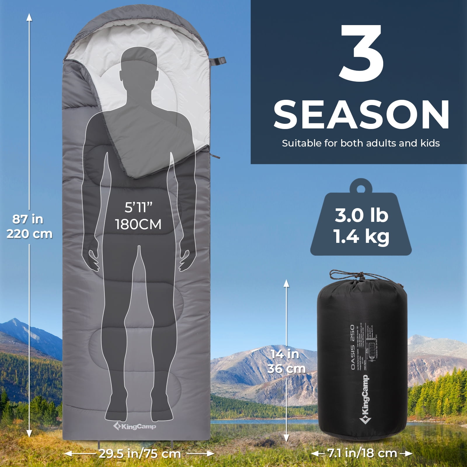 Seasonal Versatility: This 3-season sleeping bag offers a temperature rating of 27F-54F, with a comfort range of 50F-68F and a limit of 41F-77F, making it suitable for various camping conditions.