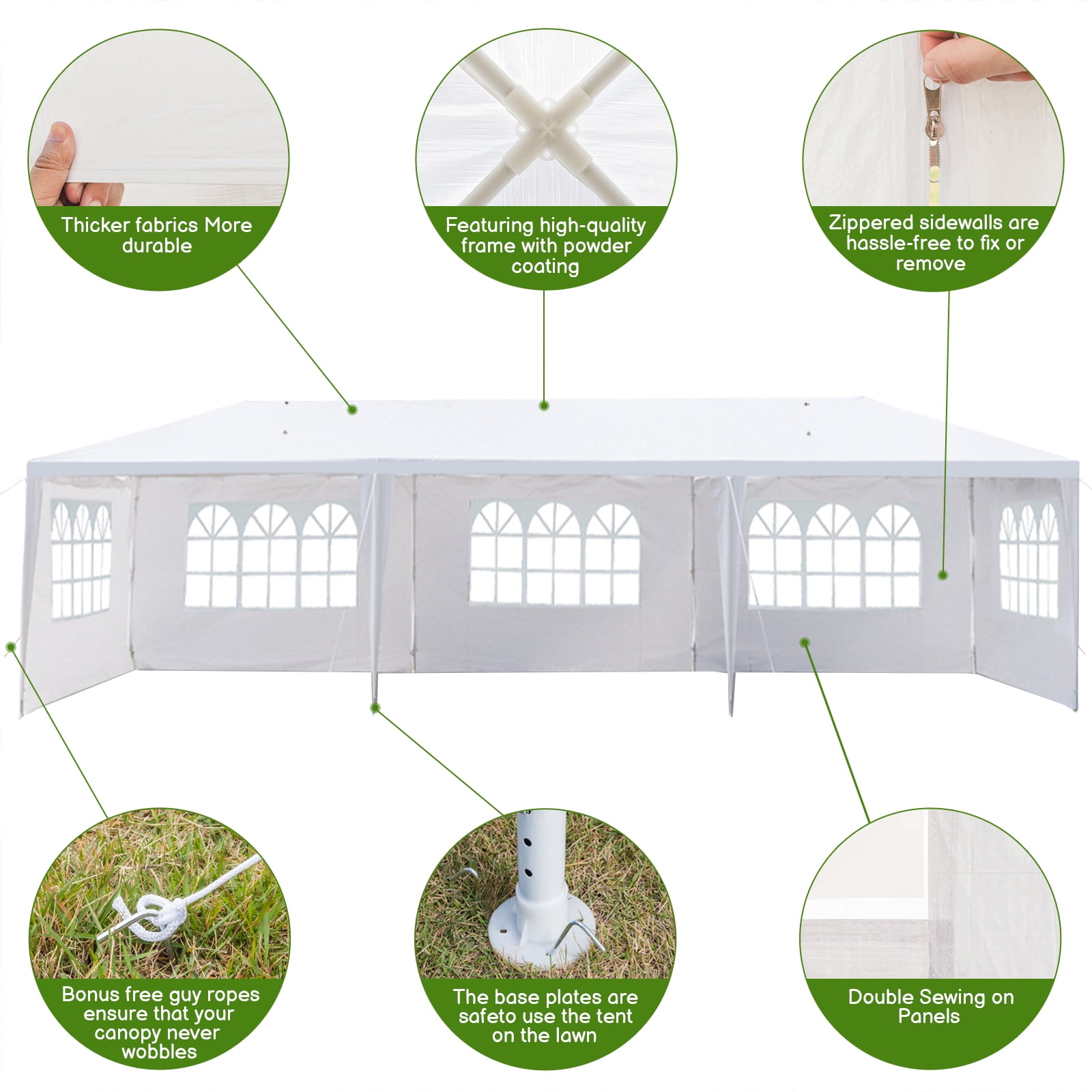 Our party tent is designed for multiple occasions, making it the ideal choice for weddings, parties, meetings, camping, and more. Host a backyard barbecue with friends or celebrate your birthday under the protective canopy of our versatile patio tent. Its functionality and style make it the perfect addition to any outdoor gathering.