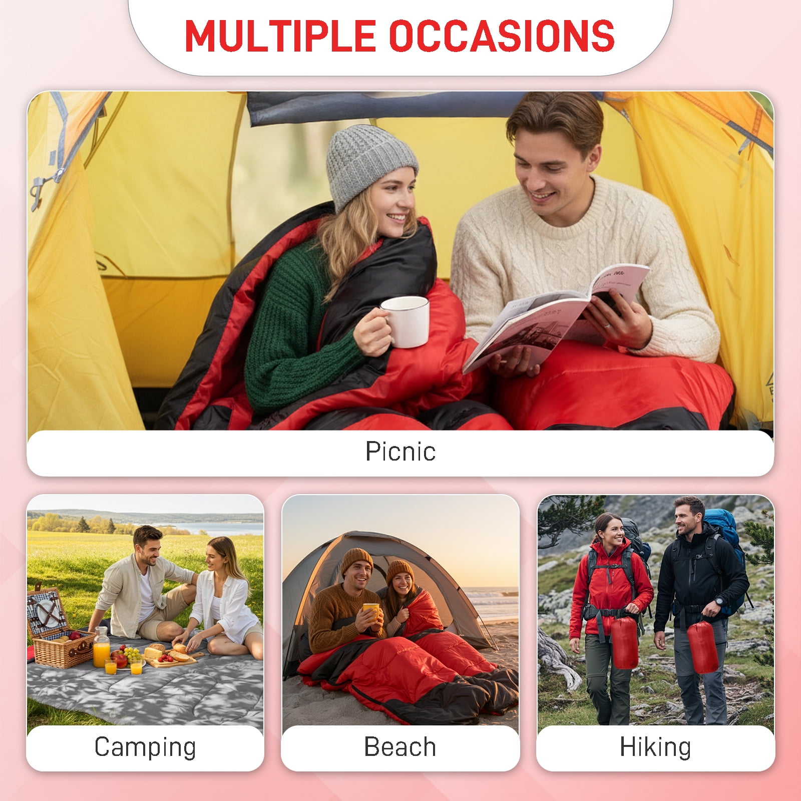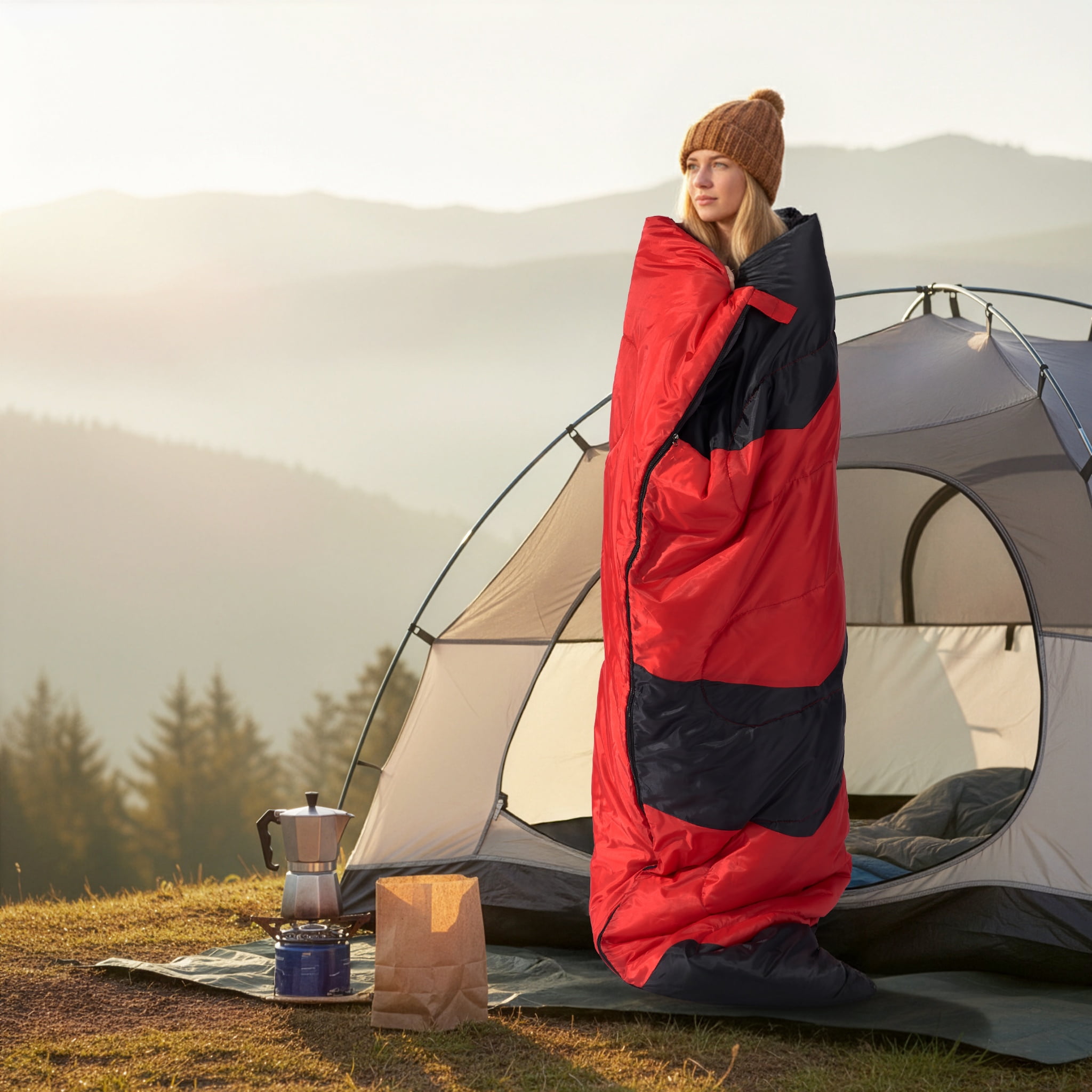 Ktaxon Camping Sleeping Bag, Rectangular Sleeping Bag with Storage Bag for Cold Weather, Lightweight Camping Essentials Sleep Gear, Red