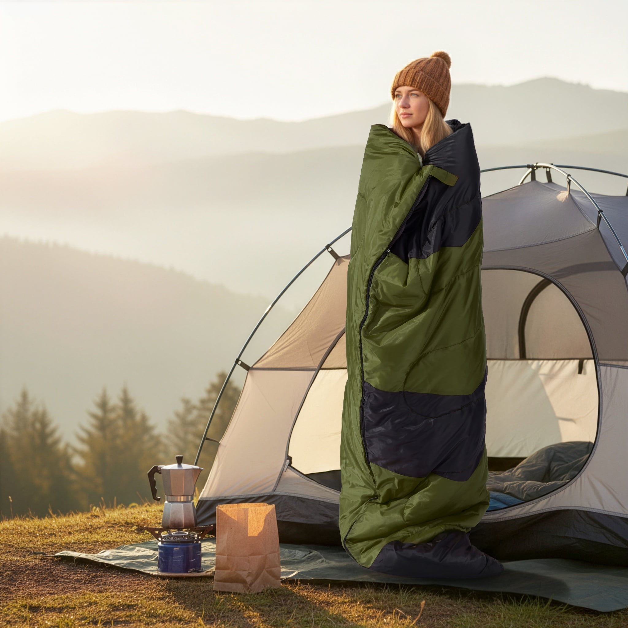 [VERSATILE TEMPERATURE ADAPTATION] The Rectangular Sleeping Bag and Sleeping Bag works well in 42-68°F. Equipped with an adjustable drawstring, this Camping Sleeping Bag helps preserve body heat in colder weather, making the Lightweight Sleeping Bag suitable for both cold and warm conditions.