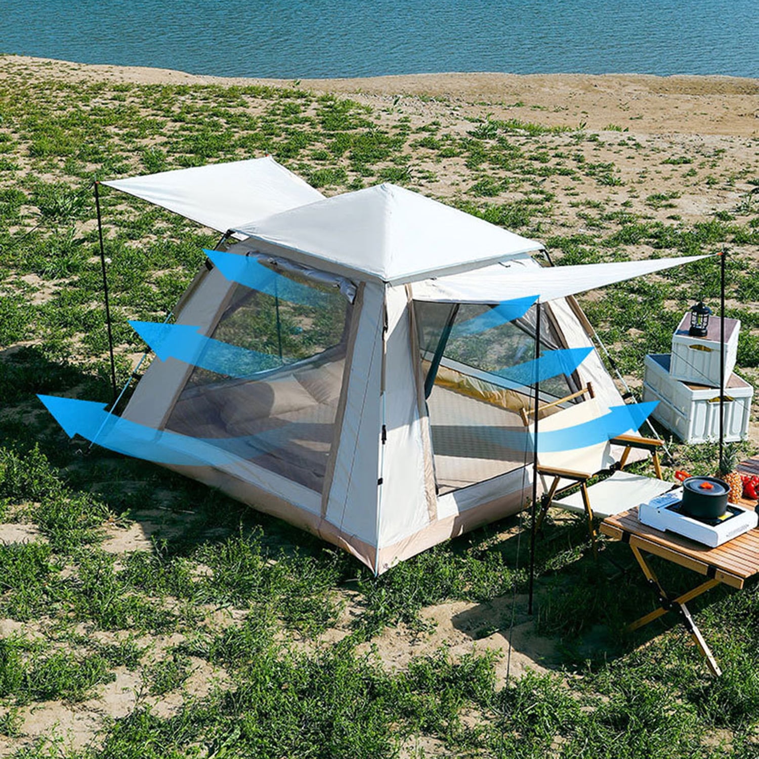 - Durable 210D oxford cloth silver-coated material for rain and sun protection during leisure and camping.