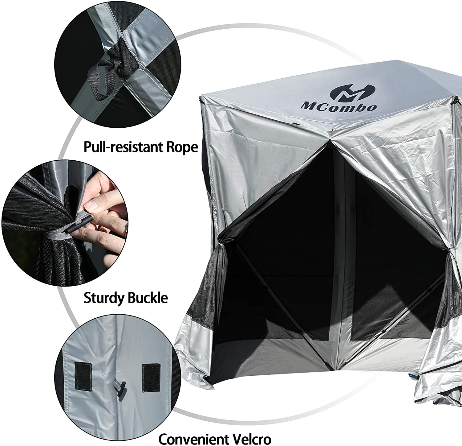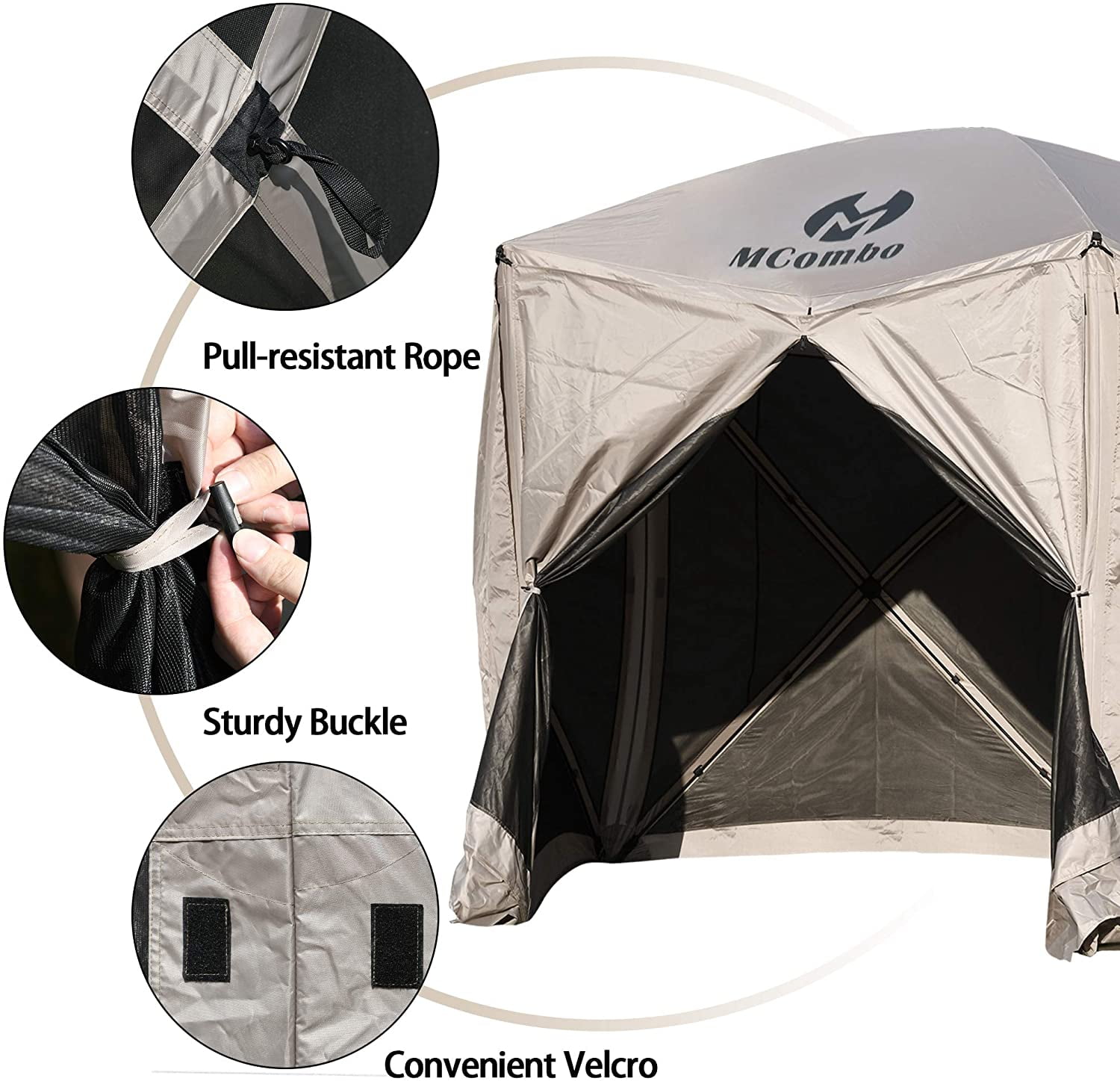 Easy Attachment: Features convenient Velcro and hook rope for secure and easy attachment to any Mcombo pavilion.
