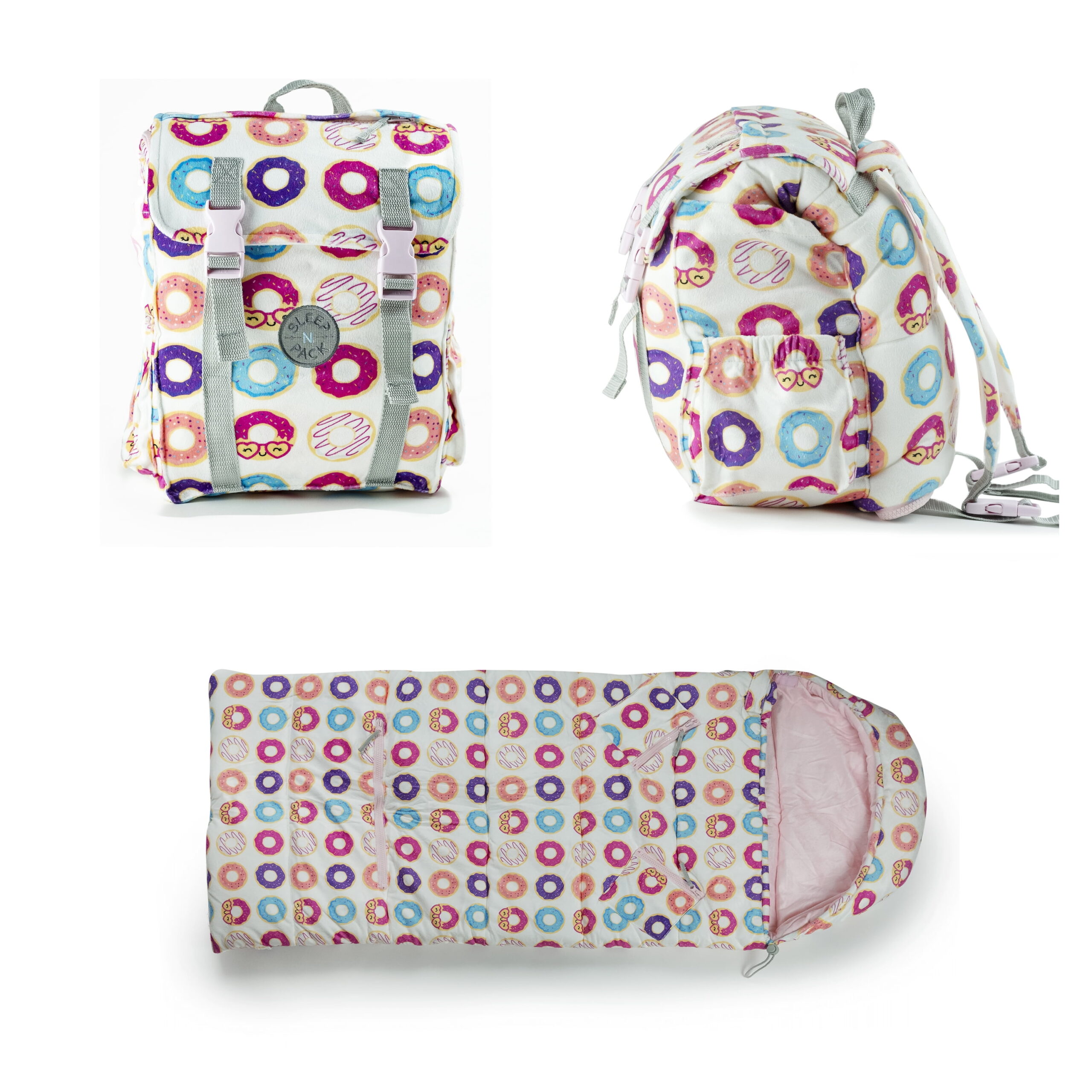 - Backpack and slumber bag have multiple pockets to a carry water bottle, toys, flashlight, books, clothing, and other sleepover or camp essentials