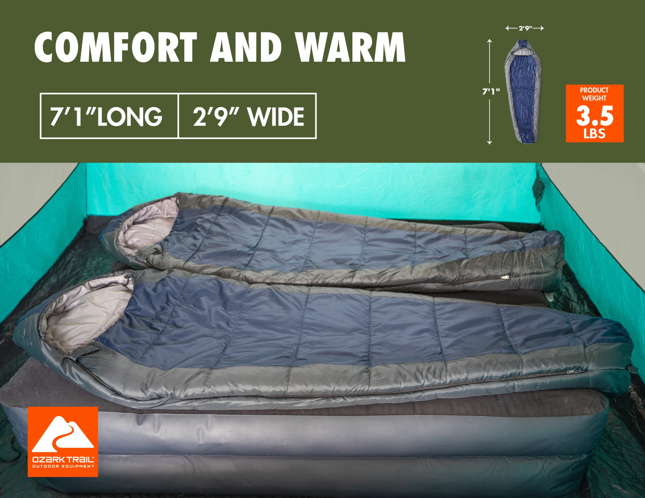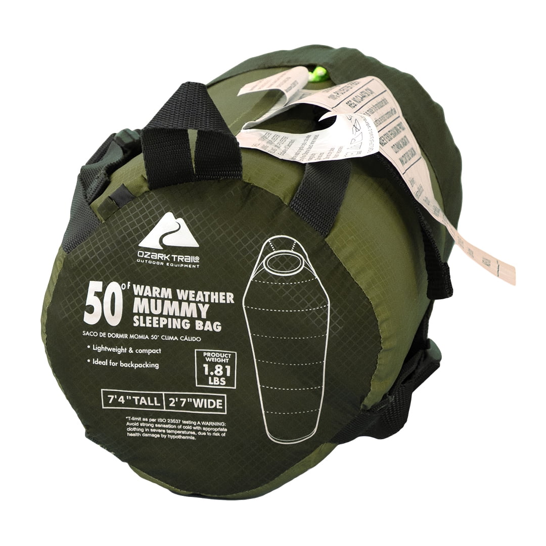 Be the first to review “Ozark Trail 50F Compact Mummy Adult Sleeping Bag – Green (88.6” x 31.5”)” Cancel reply