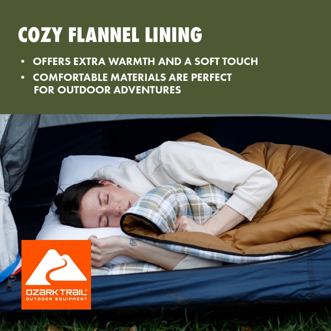 Introducing the Ozark Trail 50F Flannel Lined Sleeping Bag – your go-to choice for a cozy night’s sleep during fair-weather camping trips and outdoor adventures. This roomy and comfortable sleeping bag features a soft flannel lining, ensuring warmth and comfort. With its rectangle design, it provides ample space to stretch out or cuddle up, and it’s perfect for adults seeking a snug and stylish sleeping solution. Stay warm, stay comfy, and embrace the great outdoors with the Ozark Trail 50F Flannel Lined Sleeping Bag. Order yours today and experience the perfect blend of function and comfort!