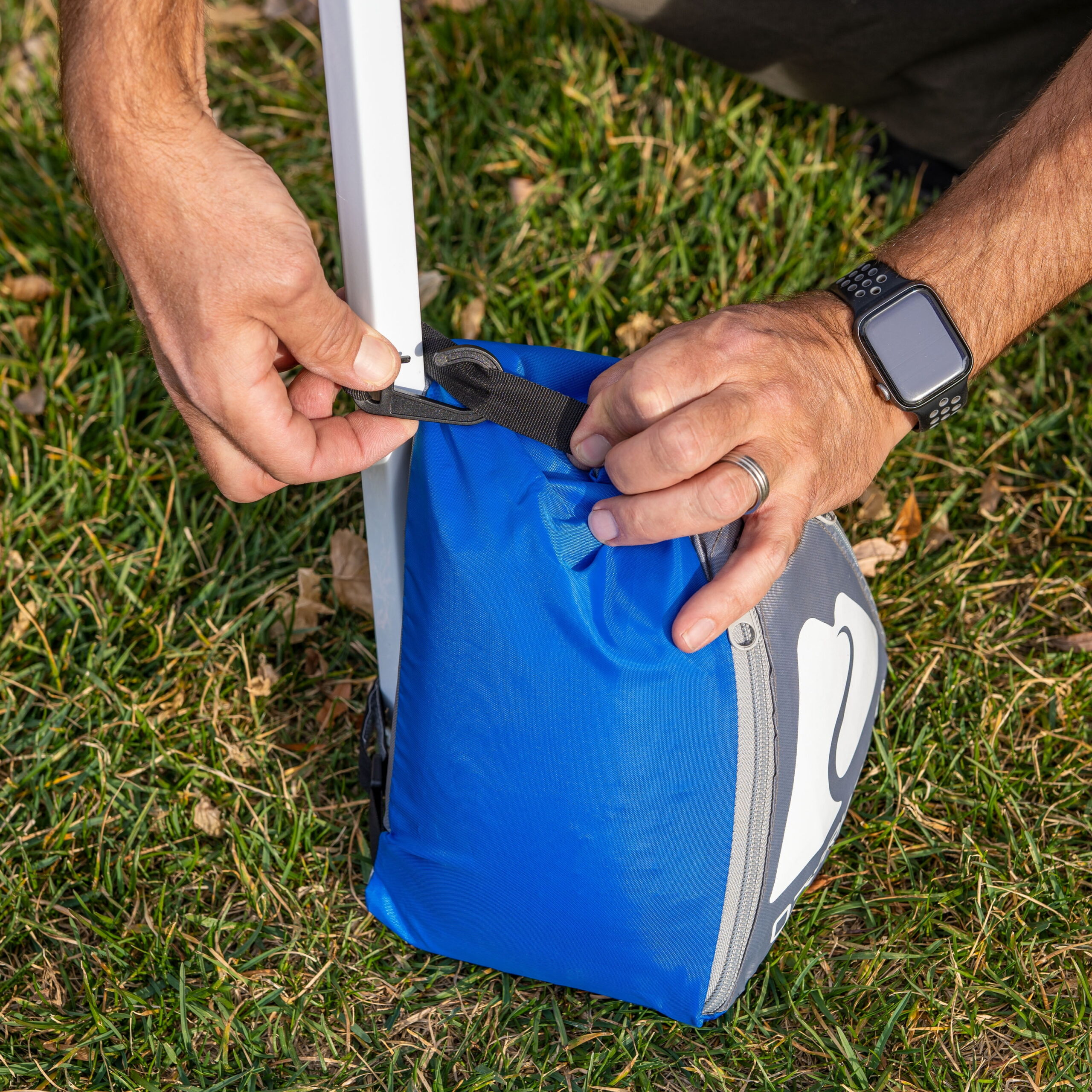 Convenient Design: Triangular shape with two large zippered openings for easy filling and quick attachment to canopy legs with webbing straps.