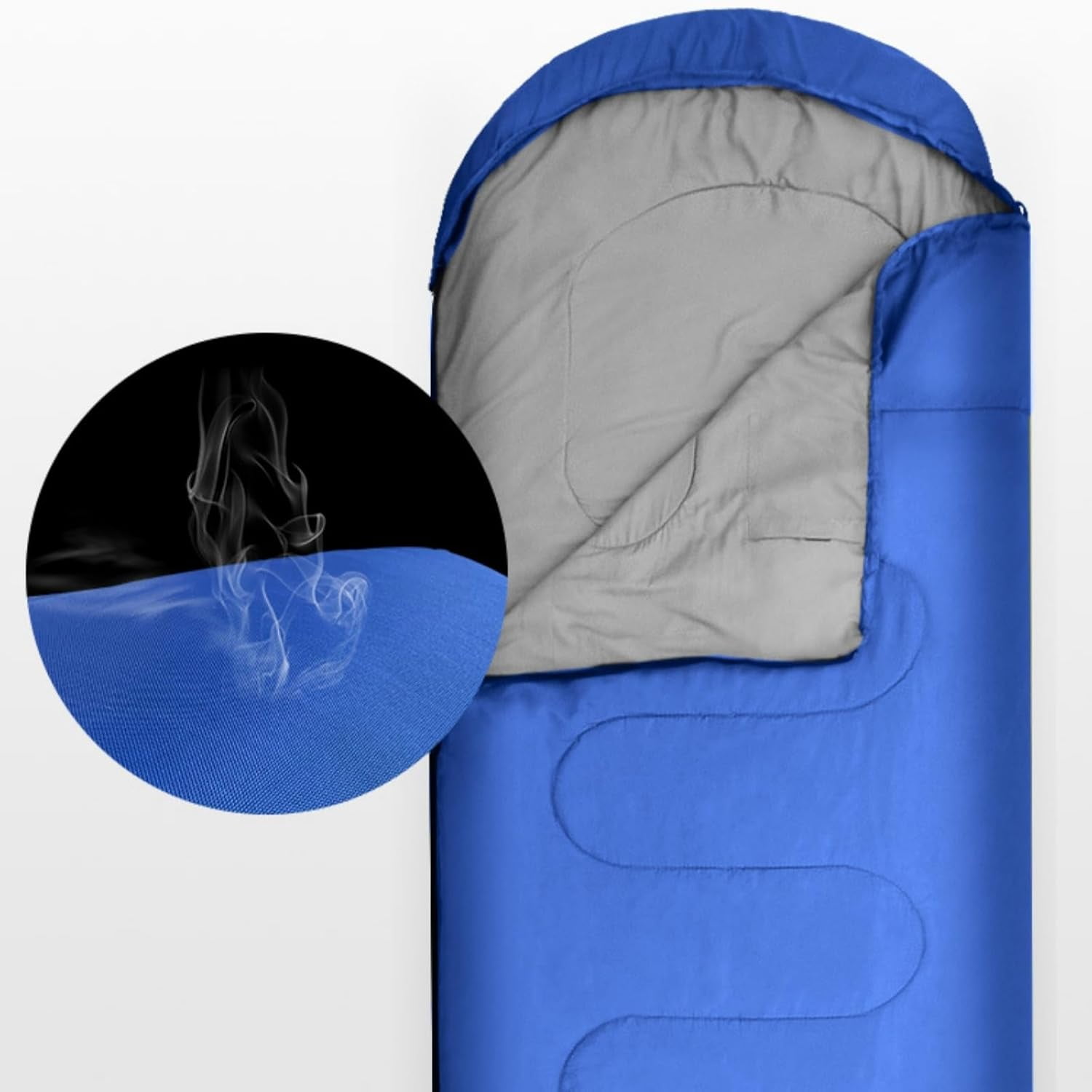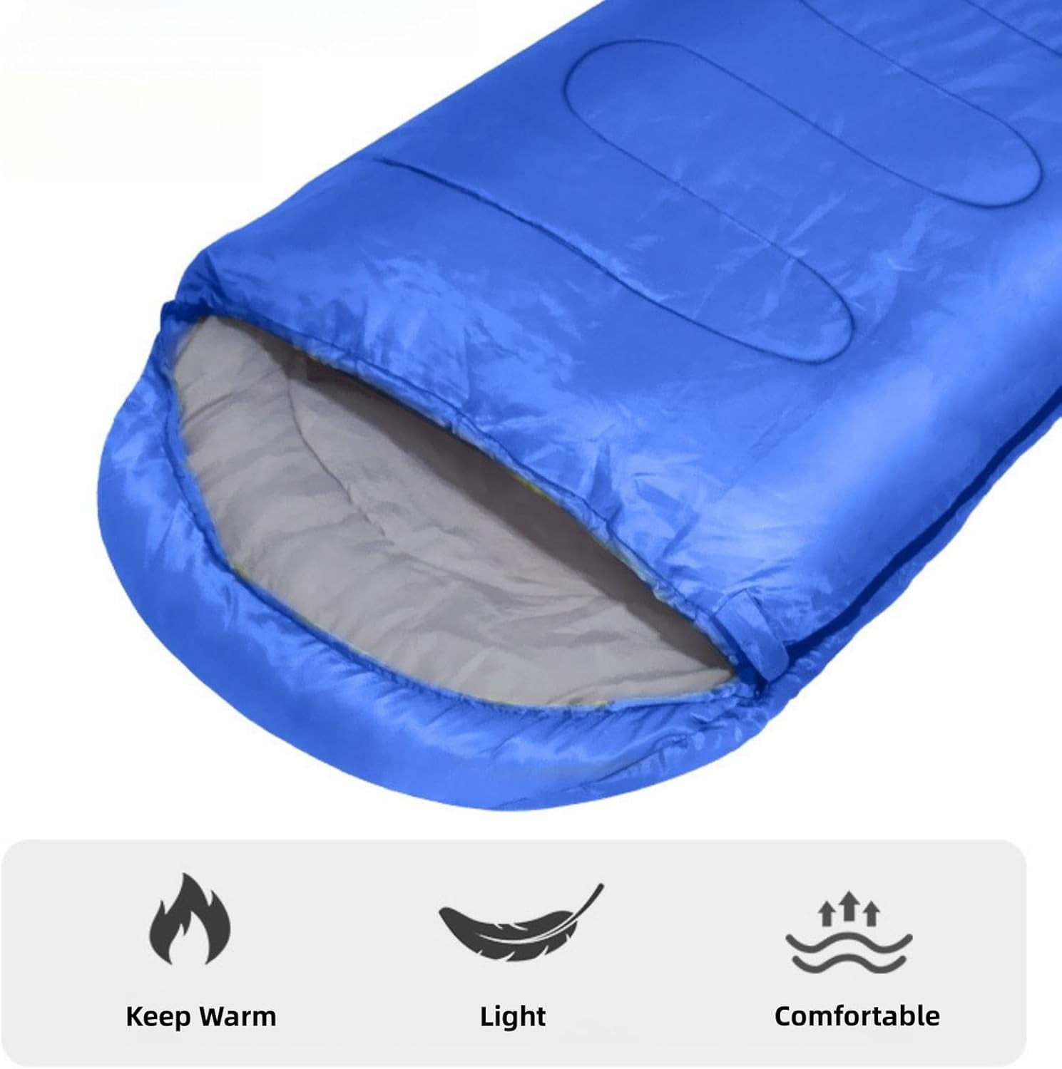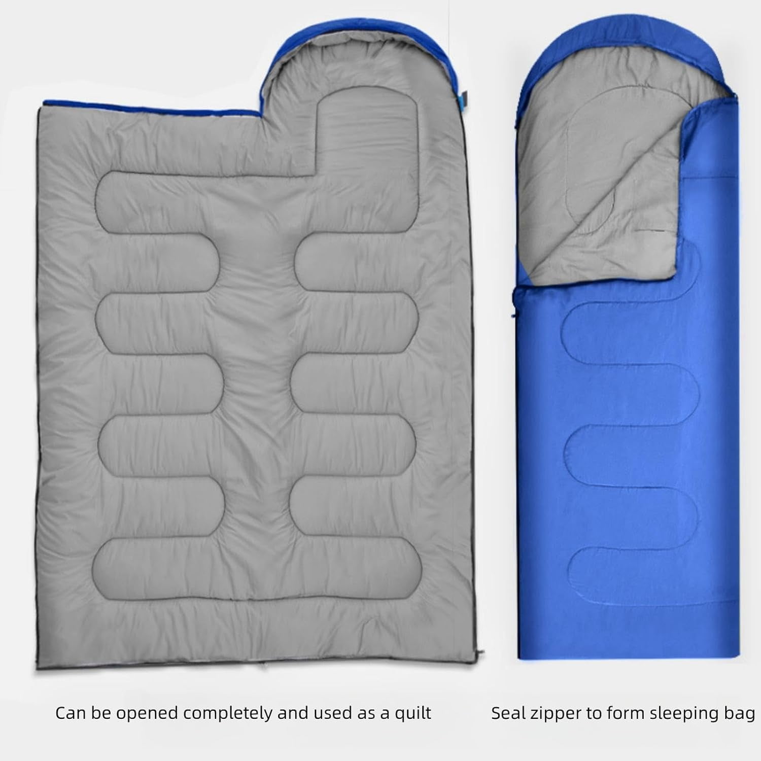- HIGH QUALITY MATERIALS: The inside is filled with high-quality hollow cotton, which is non-toxic has no odor, and is also comfortable and skin-friendly. This envelope sleeping bag is made of 170T water-resistant polyester, portable, foldable, and flexible.