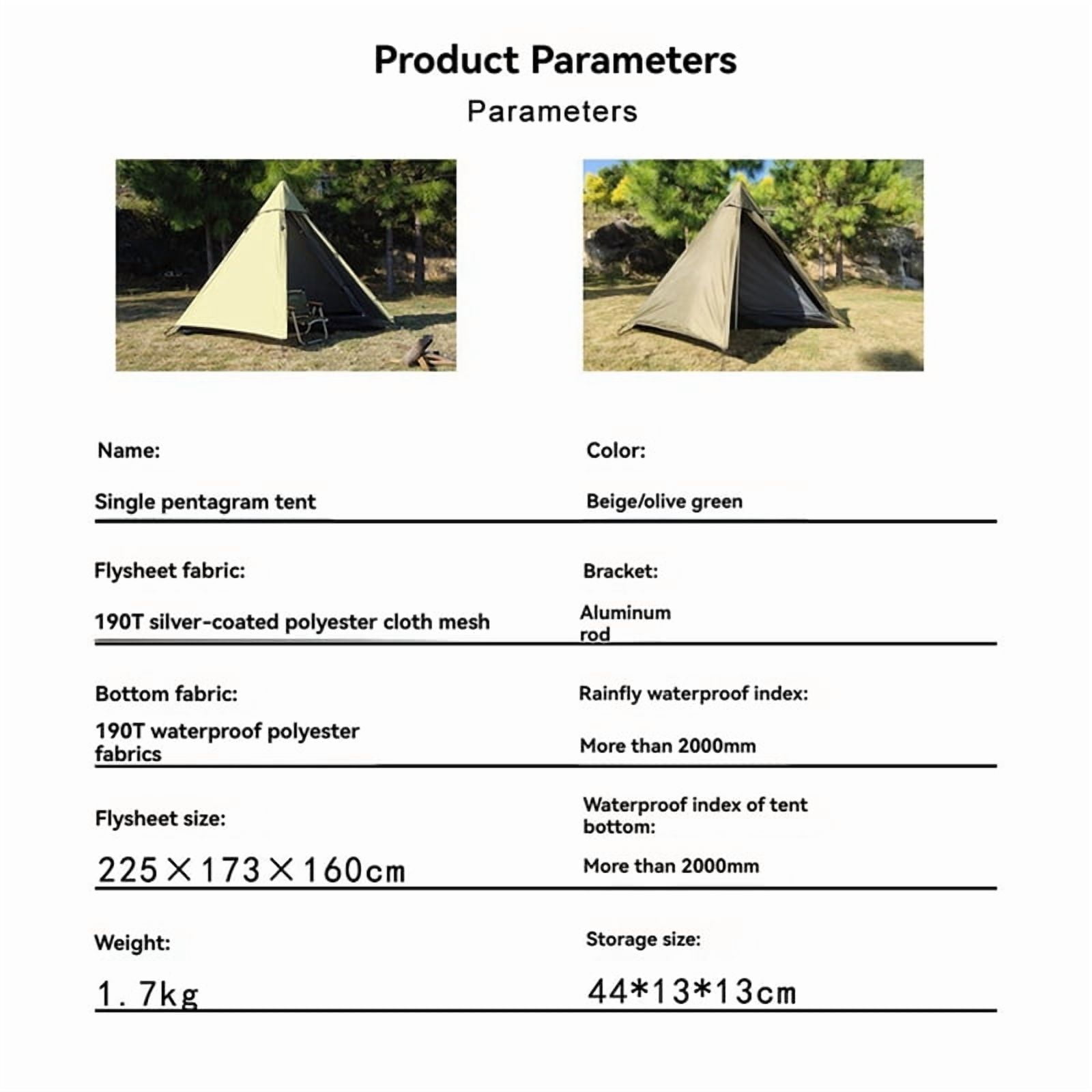 Pyramid Tent Solo Ultralight Tipi Outdoor Camping Portable Single Waterproof Hiking Backpacking A