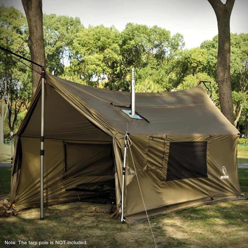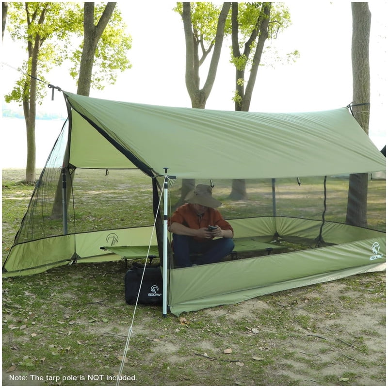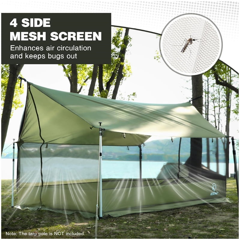 Full Mesh Walls & Ventilation: Four-sided fine mesh provides excellent airflow, keeping the interior cool on hot days. Offers 360° panoramic views while effectively blocking mosquitoes, flies, and other insects. Stay protected and enjoy breezy comfort in bug-prone areas. (Note: Tarp poles are NOT INCLUDED)