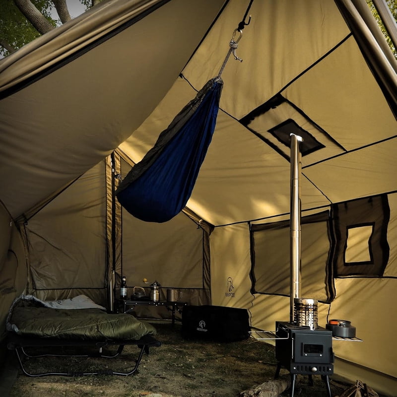 Dual-Way Zipper Doors: Smooth dual-way zippers allow easy hammock webbing passage. Set up your hammock securely inside, or connect to external trees with zippers partially open. Enhances usability for both entry and gear attachment. (Note: Tarp poles are NOT INCLUDED)