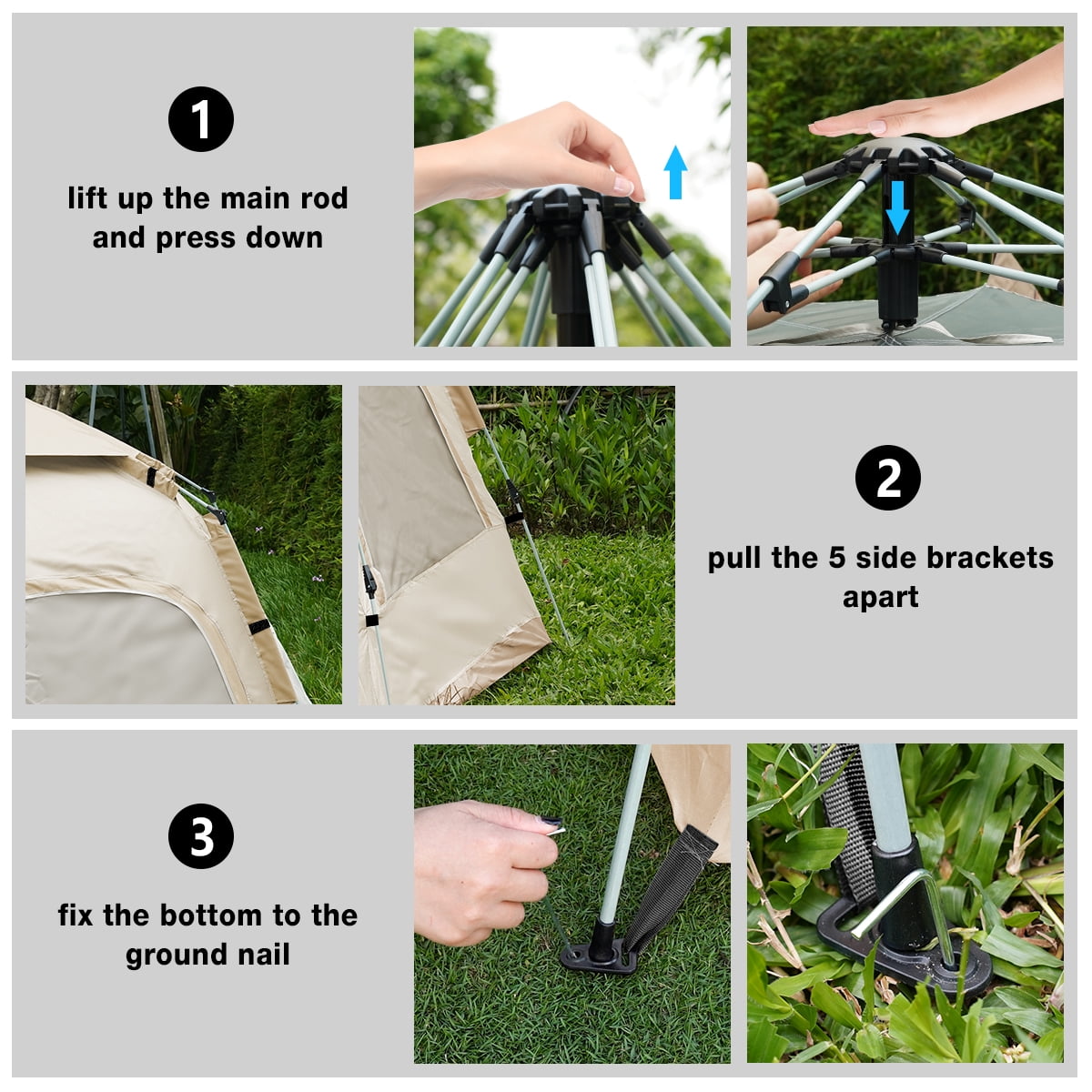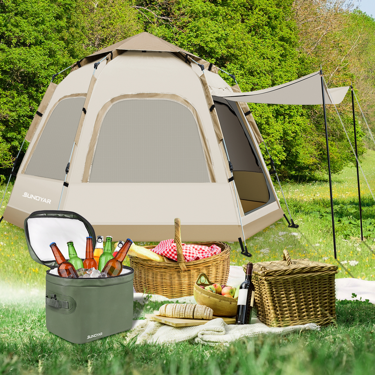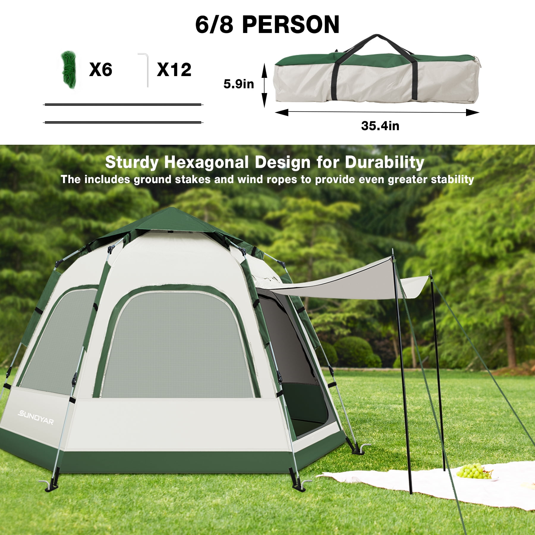 - Wind Resistant: Featuring high-strength supports, reinforced stitching, 12 stakes, 6 guy ropes, and 2 door poles, the tent remains firmly anchored against outdoor gusts.